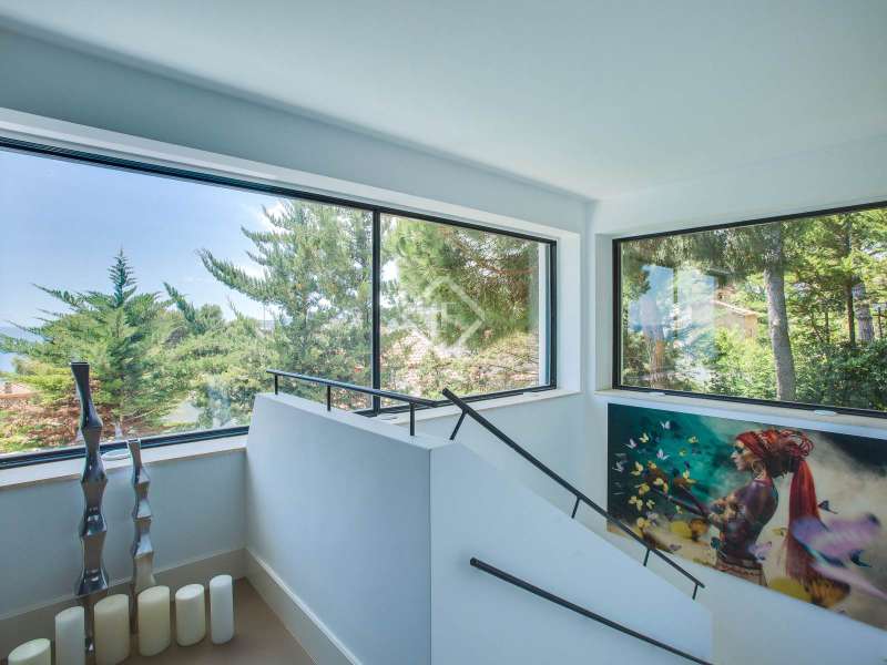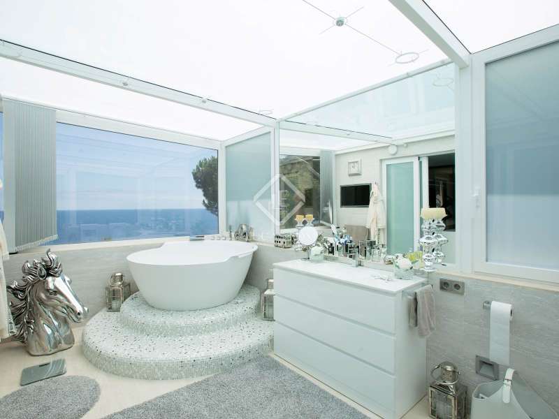 This truly spectacular villa is located in the Torrevalentina development, Sant Antoni de Calonge. Within walking distance of the beach, this exceptionally designed property enjoys impressive sea views. The interior and exterior of the villa are equally impressive. This modern villa has a unique design and comfortable layout. On the ground floor there is a sizeable living room-dining room boasting stunning sea views. On the same level we find a bathroom and a modern kitchen fully equipped with the latest technology. The main suite is located on the first floor of the villa, this bedroom has its own bathroom complete with Jacuzzi; the suite also has access to a terrace with fabulous views. The remaining bedrooms are located on the second floor and share a further bathroom. Head down to the basement, and we find a gym, a spa area with Turkish bath and a fully equipped bathroom; an excellent relaxation and exercise space. Part of the villa's decoration includes sculptures by the famous Spanish sculpture Fernando Suarez, a unique talking point. The extraordinary outdoor area complements the villa perfectly. There is a chill-out zone and a marvellous Japanese style garden as well as a heated swimming pool. The property also comes with a 2-bedroom guest house. Further advantages of this property include security cameras and parking for 2 or 3 cars in the property's private parking area. Please contact us for further information.