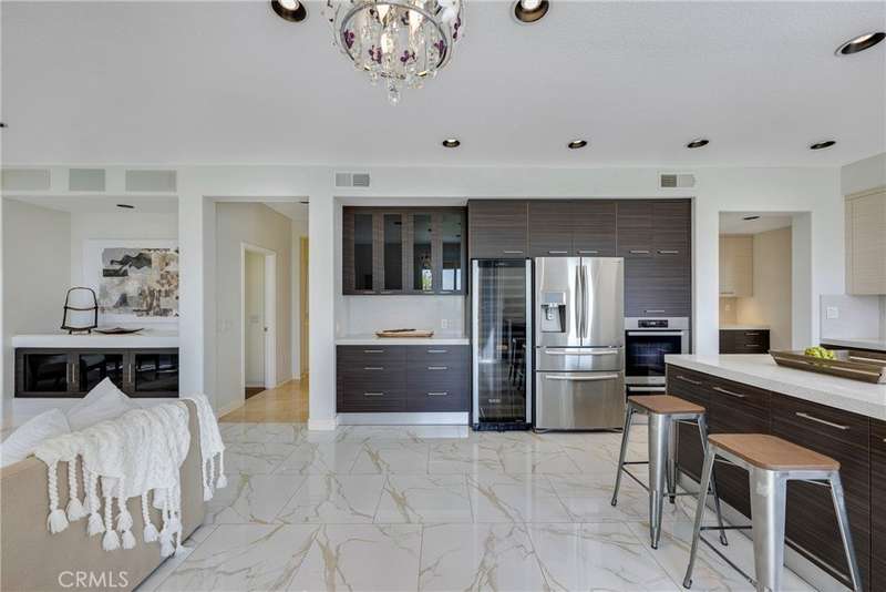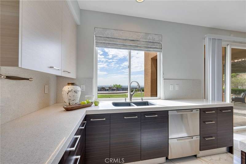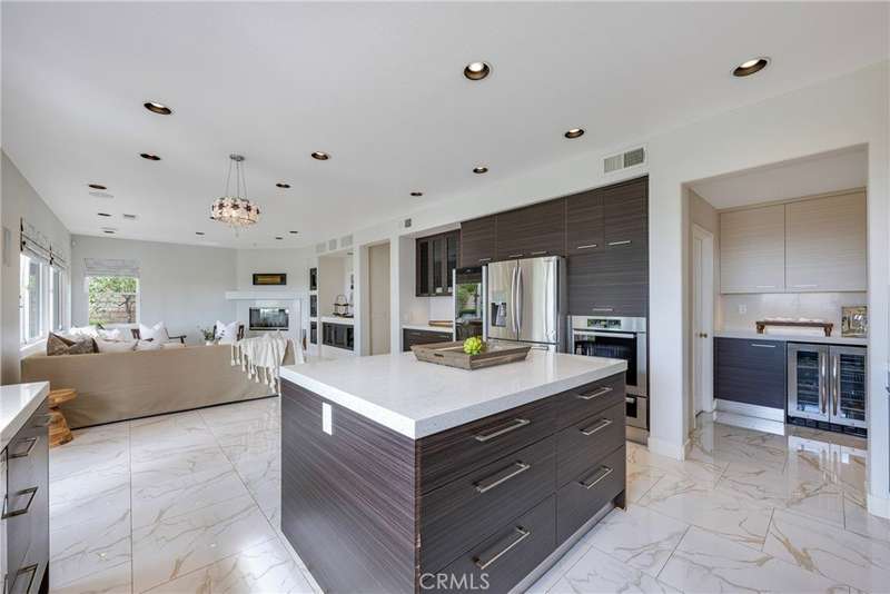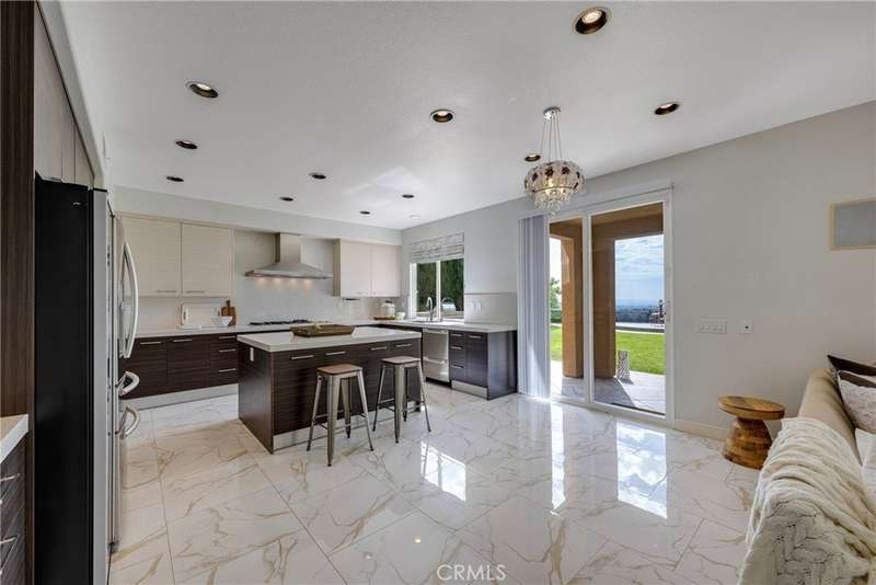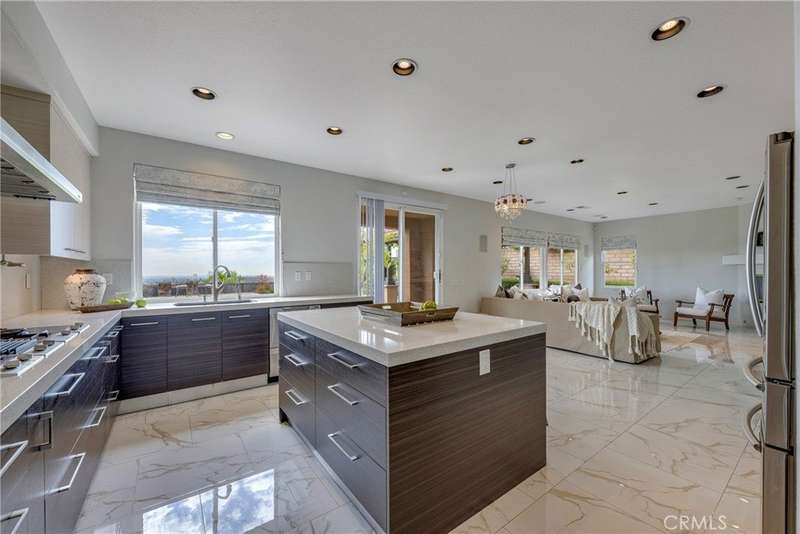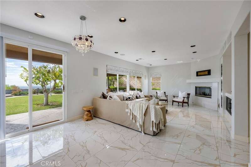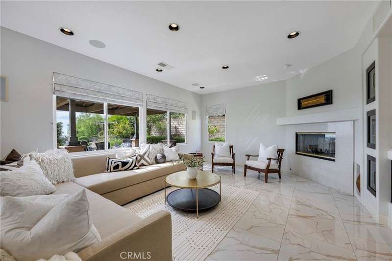 Unobstructed City Lights, Catalina & Ocean VIEWS abound from this exceptional home located in prestigious gate guarded Portofira Estates. The property is Perched on a hill located on a single loaded Street. Enjoy Ocean breezes & spectacular sunsets from your backyard that is suitable for intimate or large-scale entertaining. Enter the property through a private gated Courtyard that leads to the dramatic entry with art niches and marble flooring. Step down to the Living Room with Fireplace & Dining room Adjacent the. large butler's pantry with SS wine/beverage refrigerator. and walk in pantry. The gourmet remodeled kitchen with SS oven, dishwasher, microwave, 6 burner cooktop, refrigerator, center island & Quartz countertops, is open to the expanded family room with fireplace. There is a downstairs bedroom suite with walk in closet, & full bath. Office, and large Laundry Room with sink and extensive storage. The magnificent gallery hallway leads up the stairway to the luxurious master suite with fireplace, walk in closets, tub, & glass enclosed e shower. Dual separated vanity areas. Large Balcony off the master suite offers exceptional VIEWS and Sunsets. There are 2 additional bedrooms upstairs, with a shared bath, and one bedroom with a full bath. Oversize 4 car garage with built ins and epoxy coated floors. The home has been recently painted inside. Meticulously maintained and cared for by the original owners. Close to freeway access. One of the premier VIEW oriented Gate Guarded Communities in North Orange County. Professional photos will be loaded by October 10th.