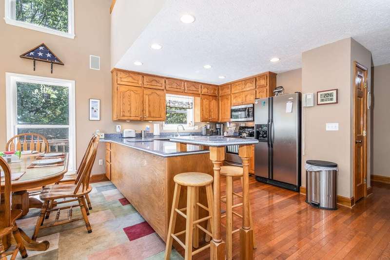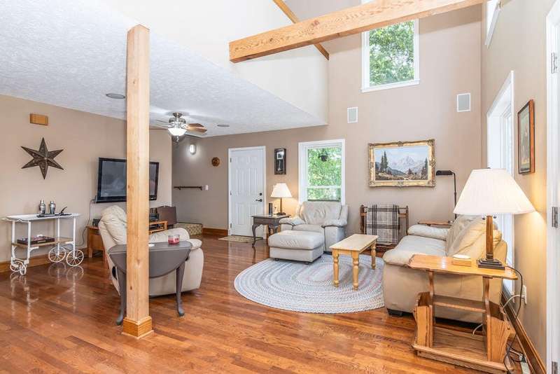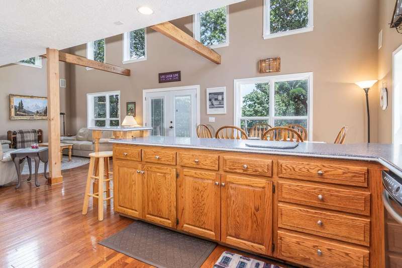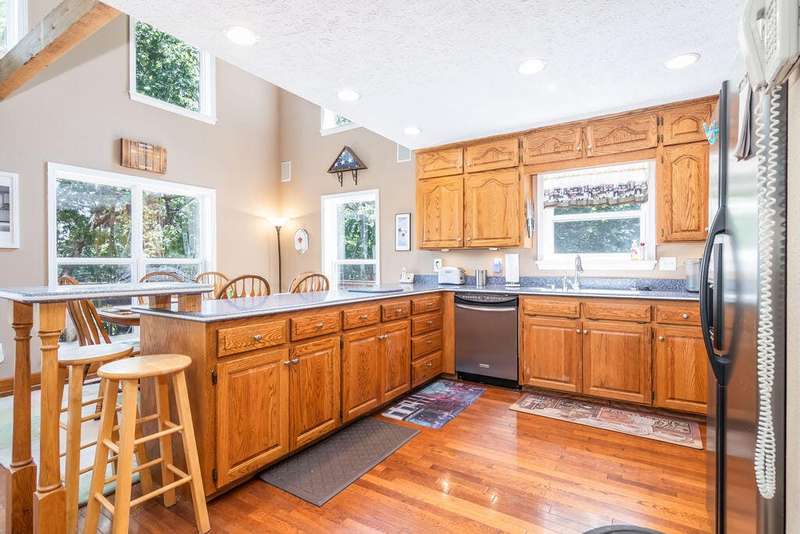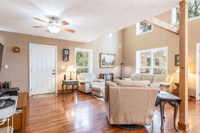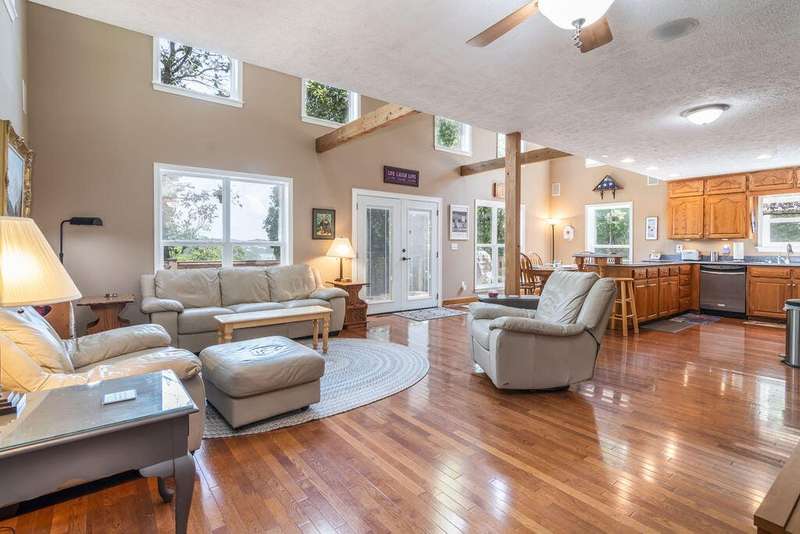 This privately located lakefront home offers over 3 acres of privacy, tucked into the property, bordered by the lake on one side and National Forest on the othera true haven for lake lovers and outdoor enthusiasts. With 3 levels of living space, this home boasts 4 bedrooms, 3.5 bathrooms, plus an office or 5th non-conforming bedroom, giving you plenty of room for family and guests.Step inside and be greeted by soaring ceilings, bright and airy with plenty of windows ,with lake and wilderness views. The open layout includes a spacious kitchen with solid-surface Corian counters, reverse osmosis, instant hot water, and hardwood cabinetry. You'll love the fine finishes throughout, including hardwood and custom tile flooring, solid 6-panel doors, and central vac, so many details impossible to list.The home is equipped with modern comforts like a dual-fuel heat pump, instant water heater, and an EV/RV receptacle in the garage and do not forget the Solar panels for low cost utilities. A cozy loft area provides additional flex space, while the expansive composite decking is perfect for outdoor living and soaking in the scenery.Conveniently, a 10' x 24' boat slip (third party) is available for purchase just a short golf cart ride away.Whether you're entertaining friends and family or enjoying the peace of nature, this home offers the best of lake living with space, privacy, and endless amenities.