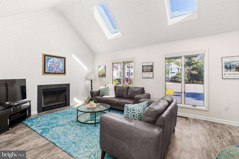 Charming Beach Getaway in Bethany! Discover this updated and well-maintained single family home within the town limits of Bethany Beach, tucked away in the quaint community of Bethany Glen with only 18 homes. Enjoy the perks of just $100/year HOA dues, town parking passes, the convenience of the trolley, and an easy walk to the beach, boardwalk, shops, and restaurants. This 4 bedroom, 2 bath retreat is sold fully furnished and turnkey. The light-filled interior showcases an impressive cathedral wood ceiling with skylights, a shiplap accent wall with wood-burning fireplace, and charming custom built-ins. The coastal kitchen features white cabinetry, Corian counters, and stainless steel appliances, while durable wood-look ceramic tile flows through the main living areas. With a first-floor bedroom, bath, and laundry, plus three additional bedrooms and bath upstairs, there's plenty of room for family and guests. Outdoor living shines with a huge covered porch (easily screened if desired) and a sunny deck...perfect for lounging or dining. An outdoor shower and storage closet keep beach days simple and convenient. Casual, comfortable, and full of coastal charm this Bethany home is ready for you to start living the beach lifestyle.