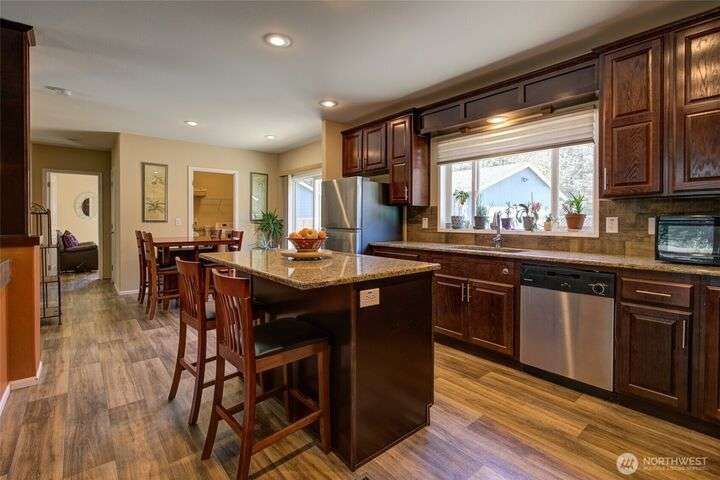 Located in a quiet residential neighborhood, this home has been lightly lived in & features a long list of upgrades! 1,456 SF of open concept living space w/ a functional separation between living & kitchen areas - an abundance of windows let in tons of natural light! Easy-care LVP flooring throughout. Kitchen features SS appliances, upgraded cabinetry, granite countertops, island + dining space. Spacious Primary Suite w/ walk-in closet, step-in shower & double sinks + 2 guest bedrooms & guest bathroom. Designated laundry room w/ side-by-side washer/dryer & whole-house water filtration system. Enjoy the private, fenced backyard w/ large patio for relaxing & outdoor living - 2-car detached garage w/ electric garage door opener. Must see!