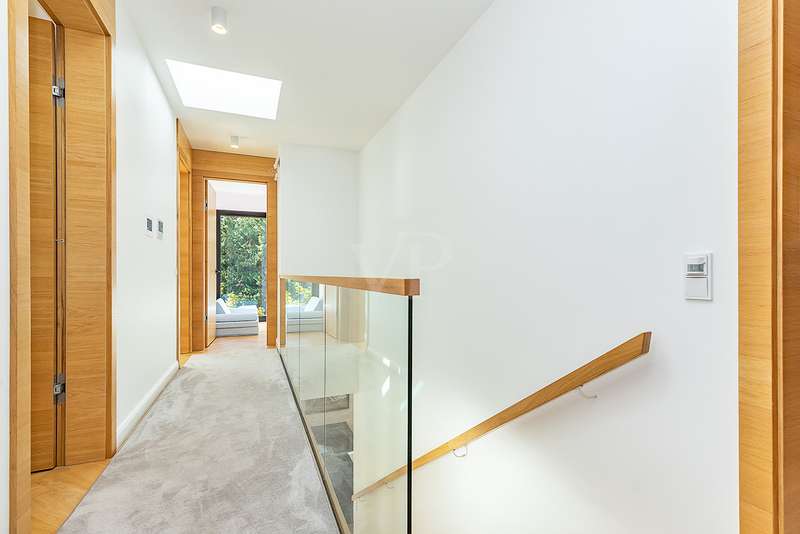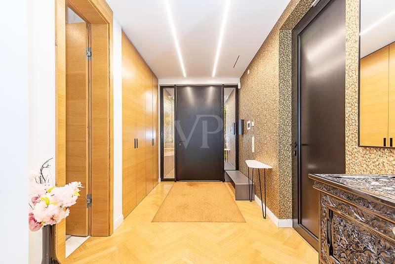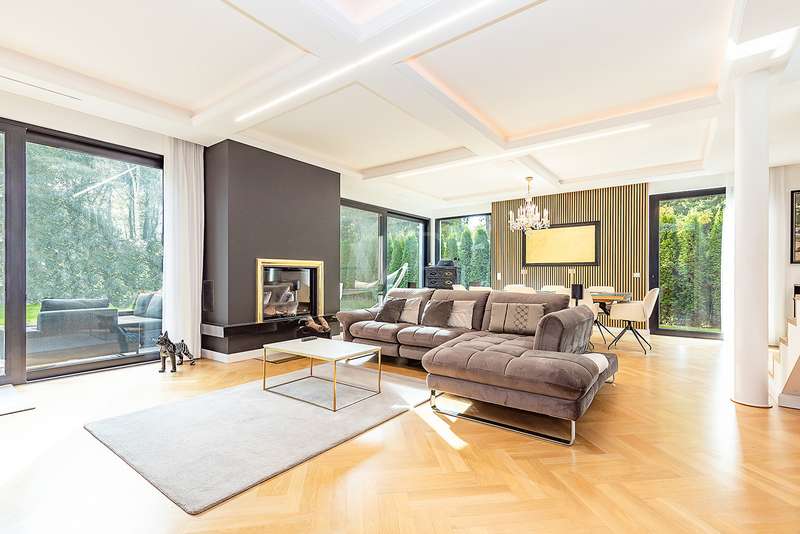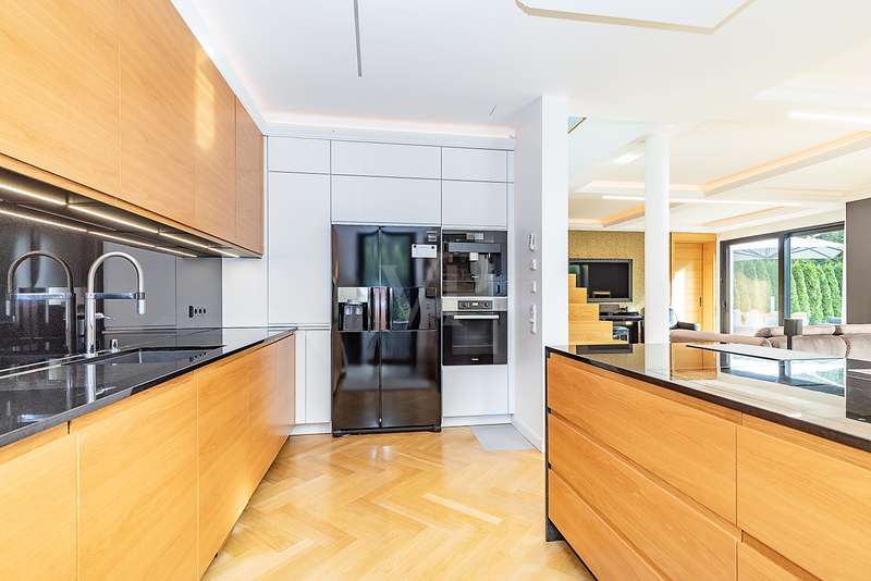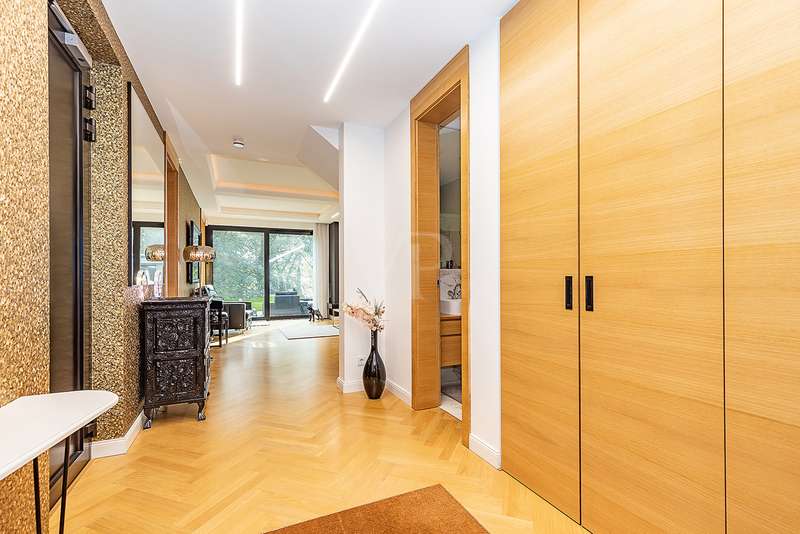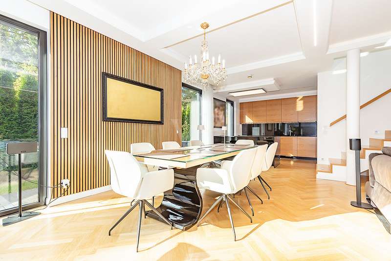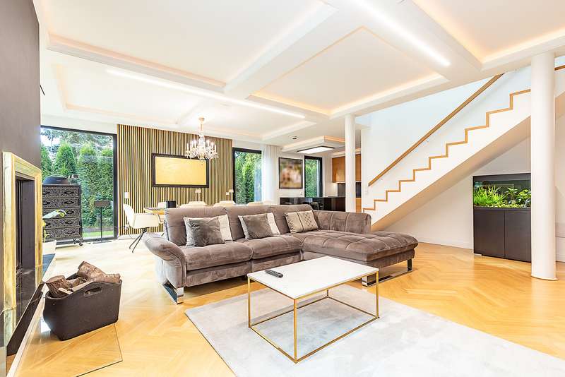 WELCOME to your dream villa, right next to the nature reserve! This special Bauhaus cube, which was built in 2018 in solid construction, impresses with its modern design and high-quality surfaces. The white cube looks imposing yet simple at the same time. As you enter the entrance on the first floor, you are greeted by brightness and an open living atmosphere. To the right of the entrance is a large checkroom with floor-to-ceiling built-in wardrobes. Everything is simple and clearly organized. To the left of the entrance is currently a study and the utility room. The guest WC is located opposite and there is also another office on the first floor. The overall interior design of the Bauhaus villa is underlined by special features, such as the approx. 2.80 meter high ceilings, the special heights of all windows and interior doors and the real wood parquet throughout the house (except bathrooms). Thanks to a controllable lighting concept - with coved lighting in the ceilings - the house can be set off in any mood. Oversized, floor-to-ceiling windows direct the view from all visual axes of the first floor into the green countryside. The property borders a nature reserve, so the view of the garden will always remain unobstructed. In the center of the living and dining area is a high-quality fireplace and another highlight on a reinforced concrete wall. A designer folding staircase covered with real wood (oak) leads to the upper floor. The first floor of the villa forms the focal point of the family's living space, where people gather around the long dining table, eat, work, chill by the fireplace or watch TV. The attractive staircase from the living area leads to the bright upper floor, which has been fitted with skylights in the roof. The air space - with all-round glass railings - emphasizes the transparency of the house. This is where the family's private rooms are located. The master bedroom with dressing room and en-suite bathroom, two children's bedrooms, a master bathroom and several exits to the balcony. The luxurious master bathroom has a large glass shower, a bathtub, two high-quality washbasins with mirror system, a WC and space for the washing machine and dryer. The balcony can also be accessed from here. Another highlight of the property is the view of the greenery. The property has an area of approx. 860 m² and is not visible to neighbors. Ornamental plants, hedges and ornamental shrubs have been planted for low-maintenance use. A lawn robot keeps the lawn short. A massive sauna house is located at the back of the garden, right next to the nature reserve. The sauna with panoramic window, the relaxation area with shower and the well-placed terrace in front complete the attractive living ensemble. The outdoor facilities are rounded off by the generous open spaces at the front of the house. A bicycle shed (aluminum) with storage space and another covered terrace directly below the balcony are located on the west side of the property. Two electric sliding entrance gates seal off the property from view. At least 4 parking spaces are available in front of the house. NOTE: The house will be handed over in consultation with the vendors.