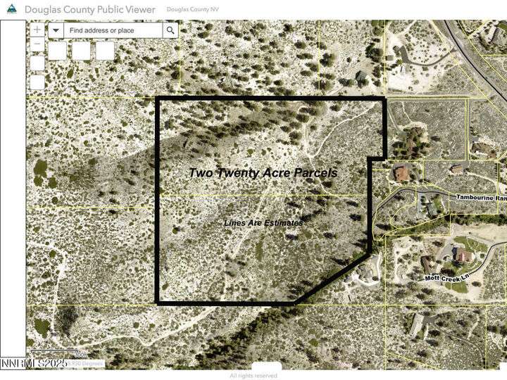 Dramatic 40-acre retreat (two side by side 20 acre parcels) nestled in the Sierra foothills, offering the perfect blend of seclusion, privacy and convenience, just 15 -20 minutes from most anything you need or want; Lake Tahoe boating, ski resorts, golf courses, restaurants, casinos, shopping, swim centers, fitness centers, movies, and medical facilities. Surrounded by towering pine trees, dramatic rock outcroppings and vibrant manzanita bushes, this private, tranquil oasis boasts breathtaking both panoramic valley and majestic mountain views, with incredible vistas of Jobs Peak. It is ideal for those seeking a spectacular location to build an executive estate or rustic cabin, with easy access to town amenities. Adjacent to National Forest for miles of walking or mountain biking trails. Ski home from Heavenly Valley!! Two 20 acre parcels for flexible development plans! No C.C. & R's and in an area of executive homes! A rare opportunity with a well on-site. 25 minutes from Edgewood, Genoa Lakes and Clear Creek Golf Courses! Two separate parcels APN #121904002005 & 121904002004