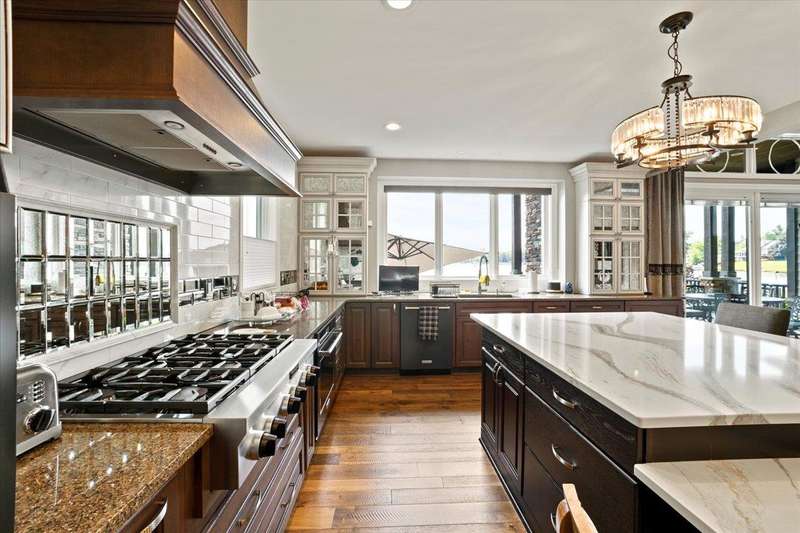 Experience the luxury of lakefront living with this magnificent custom built waterfront home. Perfectly nestled on coveted all sports Woodland Lake in one of the most sought after areas of Brighton, this truly one of a kind residence boasts an unparalleled 76 ft. of water frontage on a picturesque lot. The moment you walk through the front door you'll be mesmerized by the impeccable detail put into this home. Soaring ceilings greet you over striking custom flooring. Strolling through the immense great room, stunning lake views surround you at every turn. Your custom designed chef's kitchen has incredible space. Featuring top of line Kitchen-Aid appliances, custom cabinetry, massive range, an expansive custom island for entertaining, fireplace, lake views from every window, and a walkout that opens to a gorgeous terrace, it's an entertainers dream. The first floor Primary Suite is a sight to behold. Oversized and complete with it’s own incredible lake views, custom walk-in California closet and massive bath tiled floor to ceiling, you’ll never want to leave. The second level in this home is equally as impressive as the first. Featuring an open and flowing layout the second level hosts large bedrooms, lake views, full bath and a bonus room for a variety of accommodations. Not to be outdone, the exterior of this home is impeccable. Trex decking is front and center surrounding by Master Gardner designed landscaping, brilliant professional lighting, Gazebo, custom fireplace, and private lake views, it is the perfect place to host the largest event or most intimate gathering. Everything in this home is newer and with one of the largest and best positioned lots on the lake it won’t last long, come see it now before it’s gone!