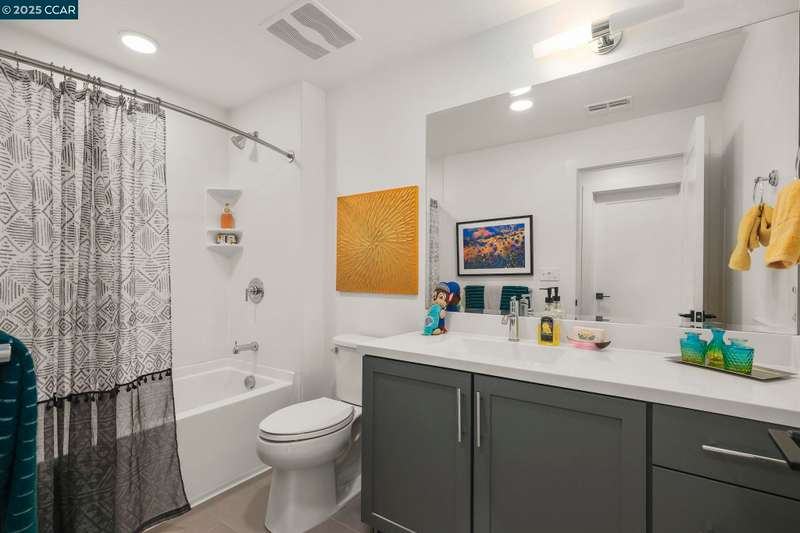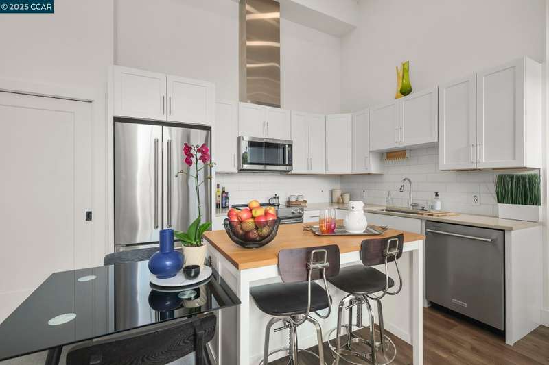 Urban oasis in the heart of El Cerrito! This contemporary 3 bedroom, plus an office, 2.5 bath condominium, built by Branagh, epitomizes modern living with high ceilings,expansive windows and sleek design. The open-concept layout seamlessly blends the living, dining and kitchen areas creating the perfect space for entertainment and daily living. Adjacent to this space is a charming deck area expanding the utilization of this area. This unit also provides a plus room on the 1st level that can be used as an office, playroom or family room. Upstairs features 2 full baths, 3 bedrooms (one is a primary bedroom with attached bath) and an in-unit laundry closet. This condominium is nestled in the heart of El Cerrito, and is perfectly situated for those looking for urban conveniece, quality of life and an easy commute location. Just minutes away are Bart, El Cerrito Plaza, TraderJoes, the coveted Ohlone Greenway to Solano Ave. with a myriad of dining and shopping options. The one car garage. accessed through a security gate. provides secure access into the building. Outside the unit is a storage closet accessed from the building hallway and a separate bike storage room off of the lobby. This exclusive building is secure and the parking lot has a security gate.