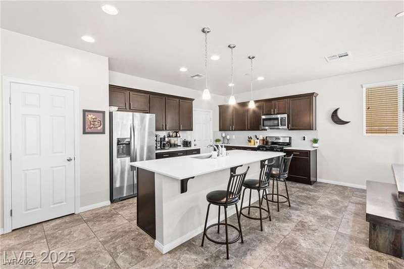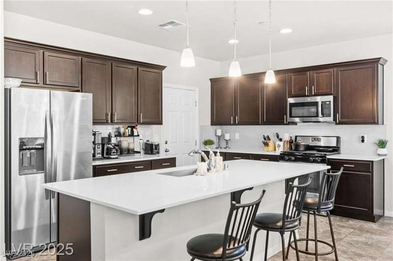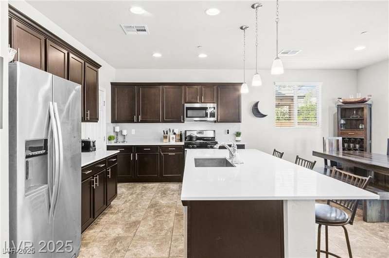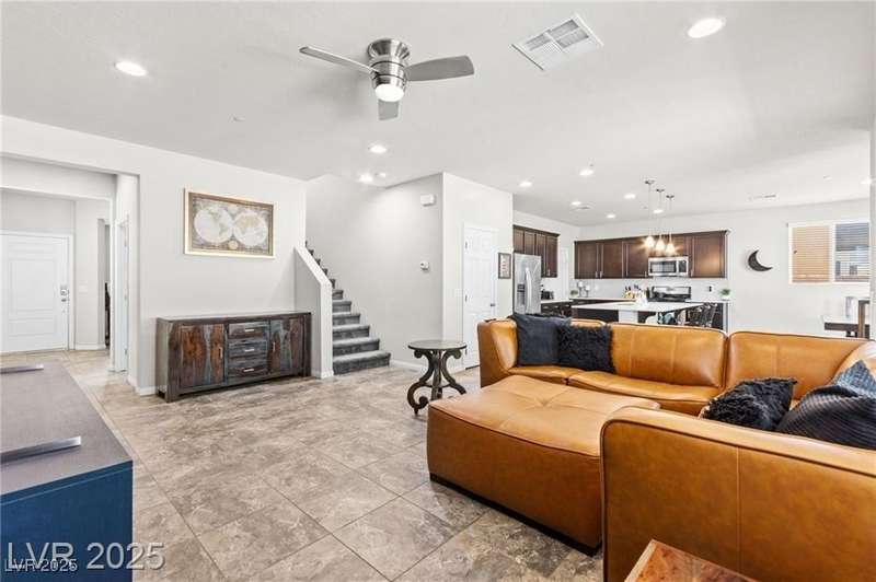 Modern style meets everyday comfort in this 3-bedroom plus den, 2,124 sq ft home situated in the sought-after Inspirada master plan. Stylish and move-in ready, this spacious home features an open-concept layout with a gourmet kitchen, complete with stainless steel appliances and quartz countertops, perfect for both everyday life and entertaining. The private primary suite serves as a tranquil retreat with a spa-inspired ensuite and a generous walk-in closet. Two additional bedrooms and a versatile den provide flexible space for family, guests, or a dedicated home office. Outside, enjoy a low-maintenance backyard and covered patio. Living in Inspirada is more than just a home, it’s a lifestyle. Enjoy access to miles of scenic trails, dog parks, skate plazas, and playgrounds, all designed for walkability and connection. With community pools, sports courts, and year-round events like farmers markets, concerts, and yoga in the park, Inspirada delivers a truly active, connected way of life.