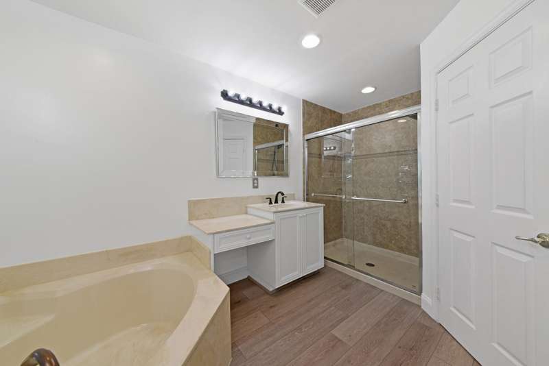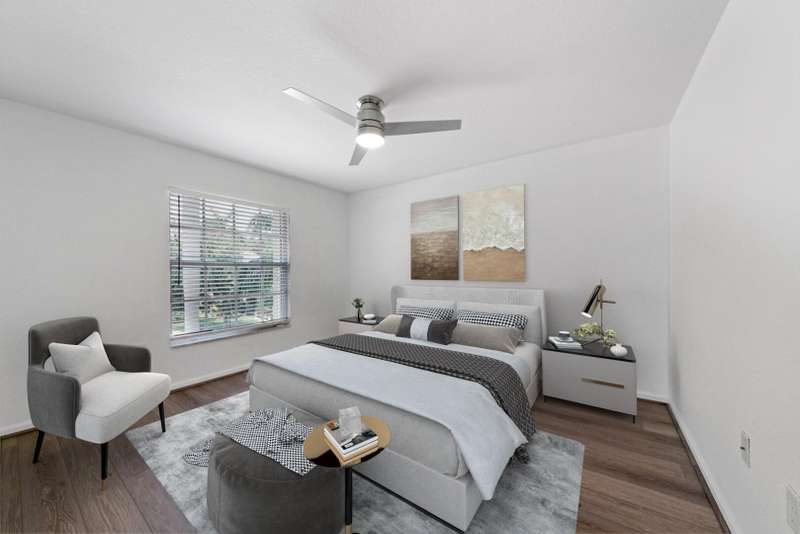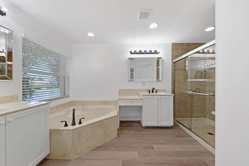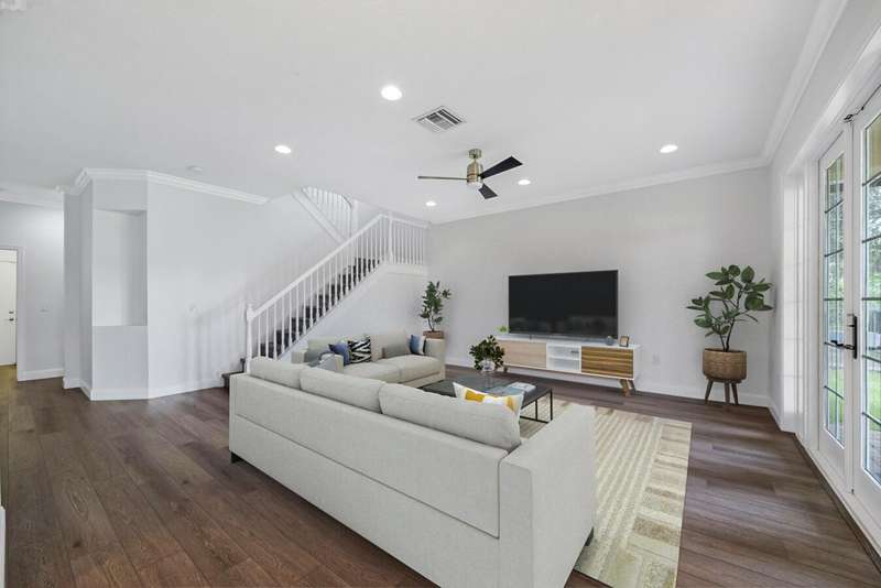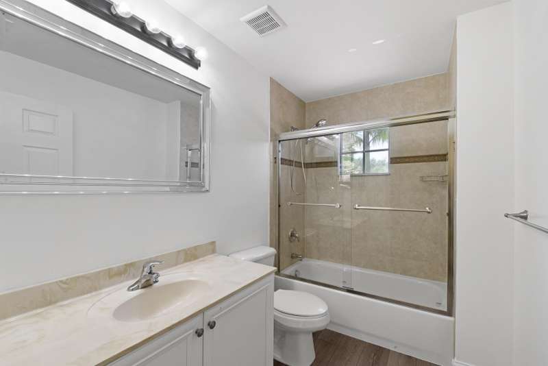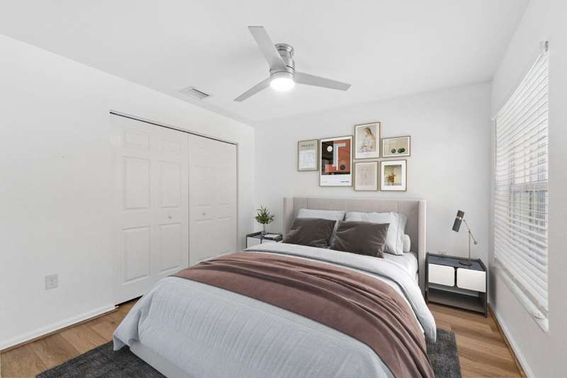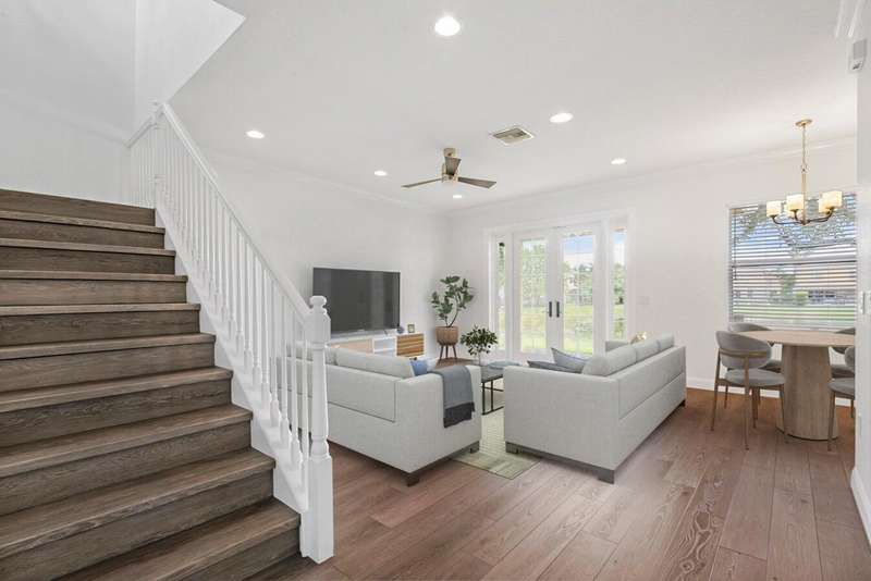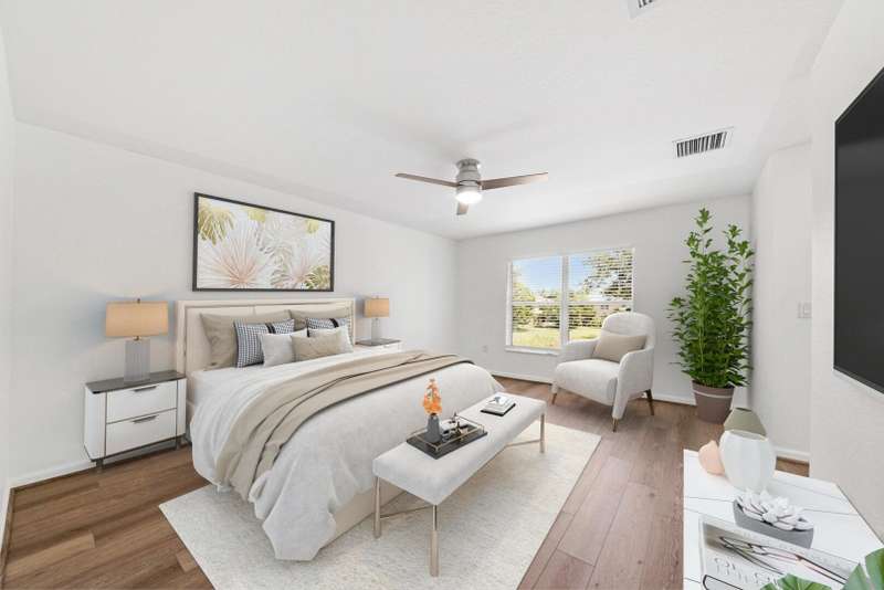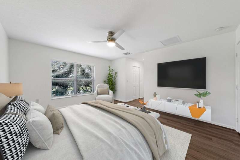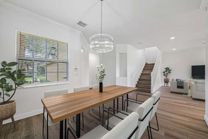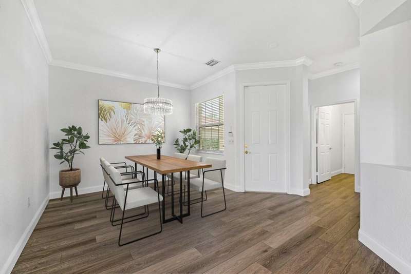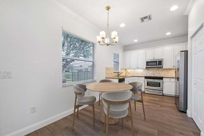 UPDATED FAMILY HOME ON THE LAKE!!!Beautifully updated home on a lakefront lot with a FENCED YARD, featuring 4 bedrooms, 3 full baths, and a 2-car garage with epoxy flooring. The first floor includes a guest bedroom with large walk in closet and full bath, while the primary suite and two additional bedrooms are upstairs.The kitchen offers classic white cabinetry, granite countertops, newer stainless-steel appliances, and a cozy breakfast nook. The spacious great room showcases crown molding and French doors leading to a covered patio with peaceful lake views.Enjoy newer vinyl plank flooring throughout -- plus, LANDSCAPING IS INCLUDED IN THE RENT!