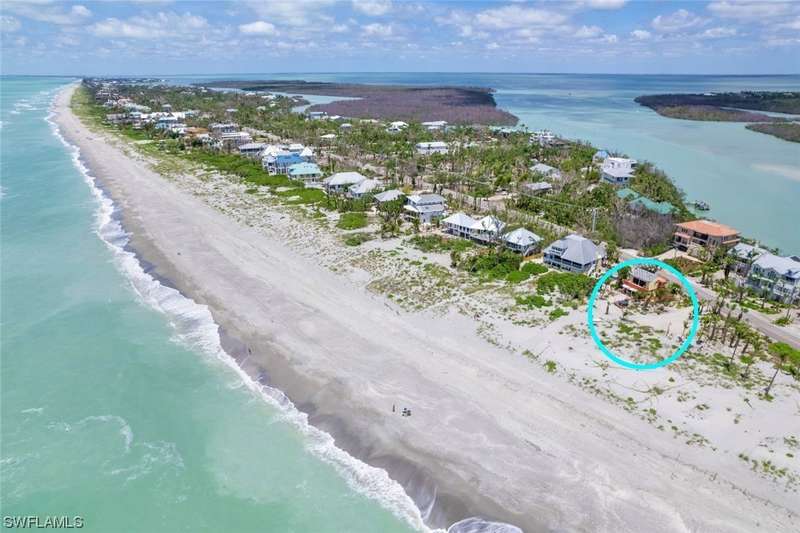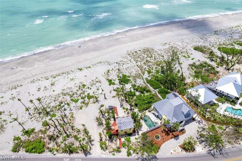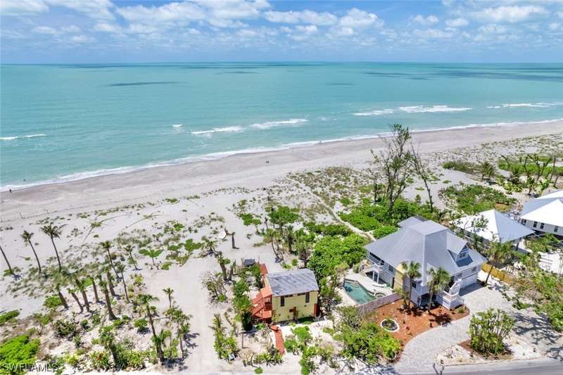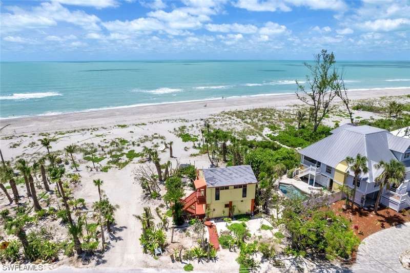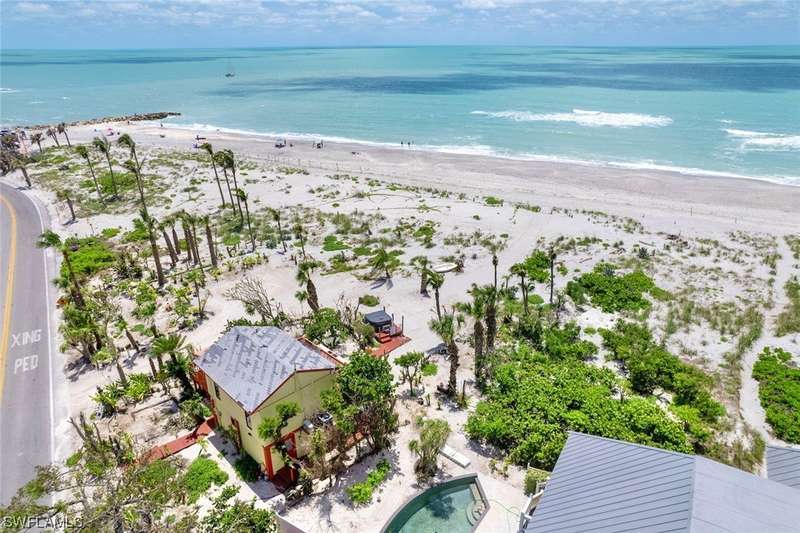 Own this little adorable Captiva beach cottage OR "IMAGINE" and build something incrediably special like the coastal modern masterpiece shown. Displayed are Conceptual renderings of what you could build on this property. You get to decide! Enjoy this adorable beach cottage or build a new coastal modern "Landmark" getaway. Whats offered at this price is this charming seaside retreat showcases a open layout w/expansive glass sliders that open onto a large deck, offering breathtaking views of the Gulf of Mexico. Nestled just steps away from the Blind Pass bridge, where Sanibel/Captiva converge, Coquina Cottage proudly stands as the first residence on Captiva beach, establishing itself as a landmark destination. With its panoramic beach views, this idyllic getaway boasts a compact yet well-equipped kitchen, two cozy sleeping areas, & a soothing spa. Set on a half-acre waterfront property w/a single dwelling along the Gulf, the cottage is enveloped by tropical native vegetation. Enjoy exceptional fishing, observe marine life & wildlife, indulge in world-class shelling, & enjoy enchanting sunsets on the white sand beach of Captiva.