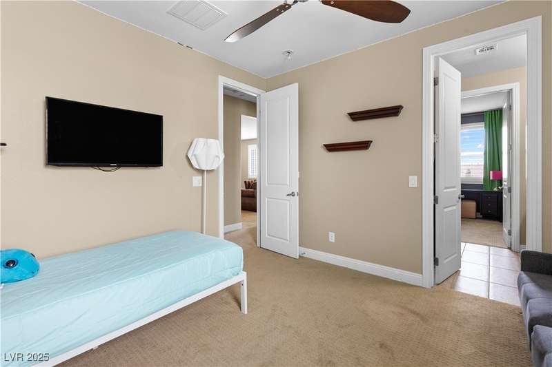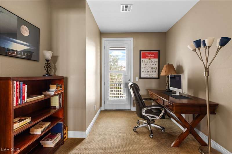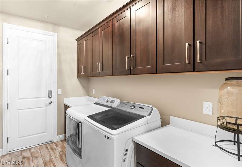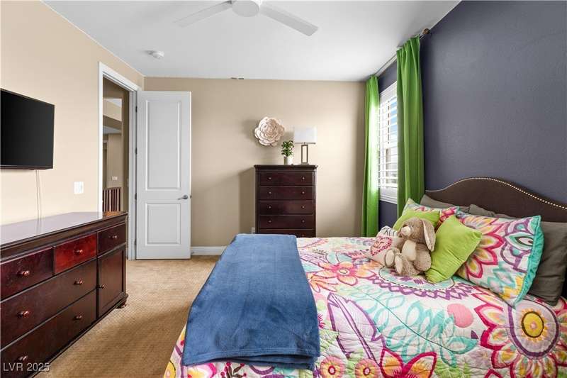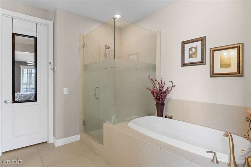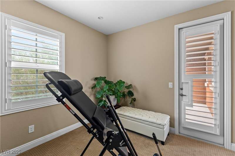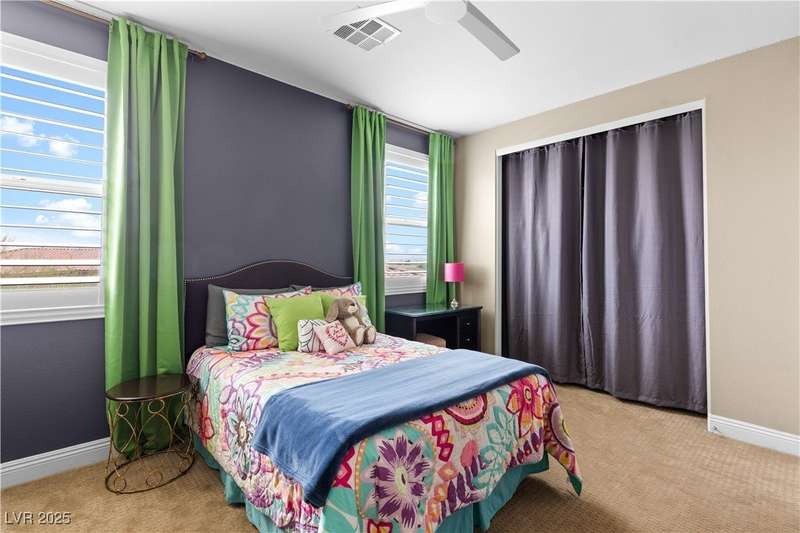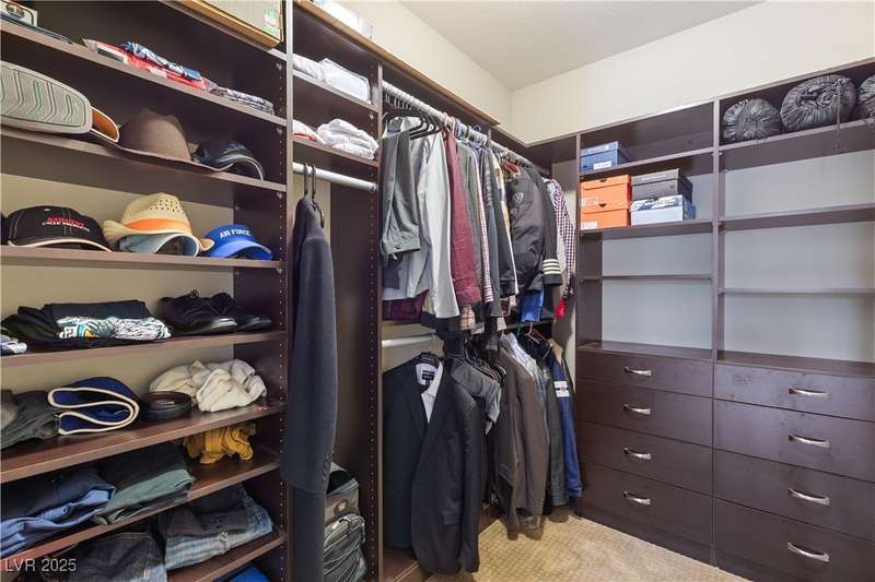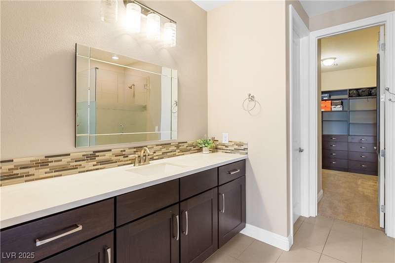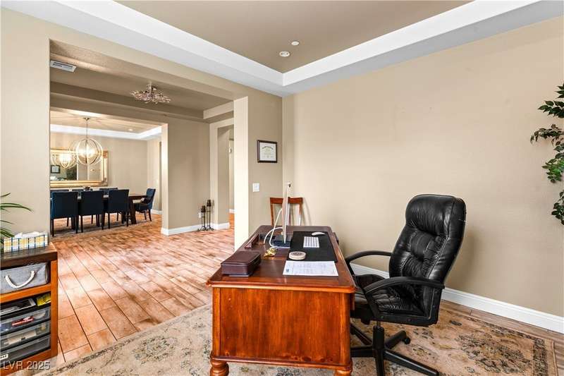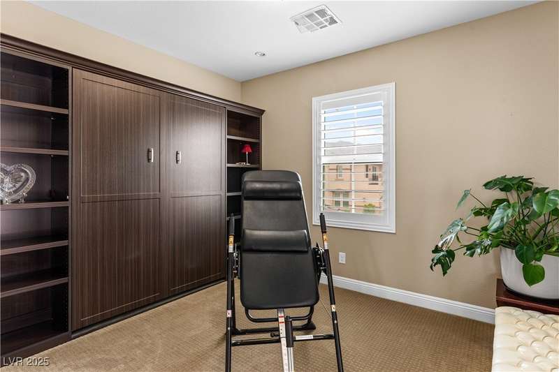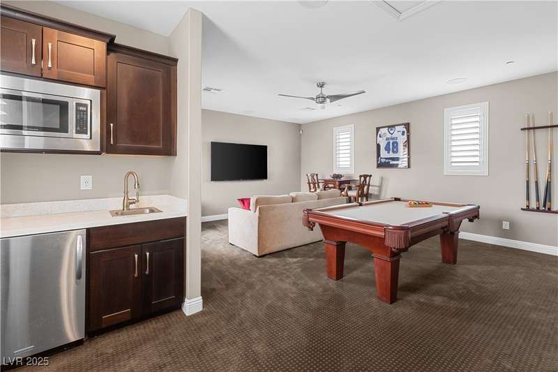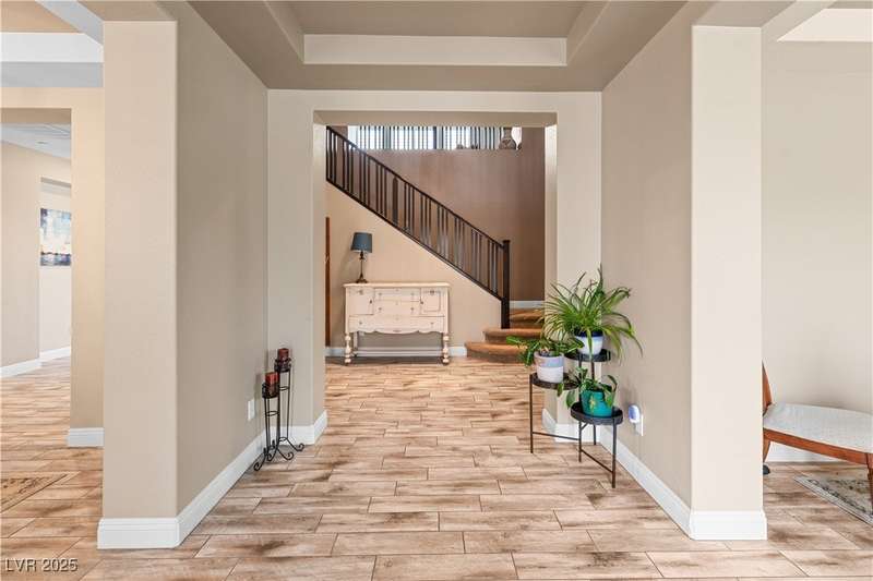 Welcome to a truly extraordinary estate in the heart of Lone Mountain, built for entertaining, comfort & sweeping Strip views. On a half-acre lot, this two-story home features a rare 630-sq ft casita w/double-door entry, Murphy bed, kitchenette, living room & full bath-ideal for guest or multi-generational living. The main home boasts plantation shutters, custom lighting & refined finishes. A gourmet kitchen shines w/dual quartz island, Sub-Zero fridge, Wolf appliances, two dishwashers, double oven & dual pantries. Flexible dual-primary layout: downtains suite w/spa bath & backyard access; upstairs suite w/retreat, loft, reading nook & balconies. Additional spaces: media room w/wet bar, office, formal living/dining, & family room w/tray ceilings. The backyard offers a saltwater pool w/solar heat, pull-thru garage, outdoor kitchen, travertine, fireplace lounge, sports & basketball courts, putting green, plus RV gate & 4-car epoxy garage. Owned solar panels enhance efficiency.