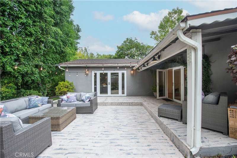 Nestled down a secluded, gated private driveway in the highly desirable Fashion Square district, this exceptional single level residence is highlighted with elegant wood and tile floors, loads of natural light and its timeless designer details. Upon entering the main living area, you are immediately captivated by the dramatic space, enhanced with its soaring ceilings, central fireplace, generous picture windows and French doors that pour in natural light. Opening from the living room is the expansive dining room that flows naturally into the perfectly updated kitchen, equipped with stainless steel appliances, custom cabinetry, and beautiful quartz countertops. Both the primary and secondary bedroom feature updated en-suite bathrooms, both enhanced by their luxurious wood beamed ceilings, with the oversized third bedroom offering direct access to the private rear yard patio. Step outside and decompress in the ultra-private rear yard with expansive entertaining areas surrounded by mature landscape, enhanced by the tranquil sound of its custom water feature, enjoy a round at your private putting green or explore the rear garden set under a canopy of lush trees. This home offers a rare combination of privacy and convenience tucked away from it all, yet moments from premier shopping and dining venues. Don’t miss this opportunity to enjoy a timeless home with distinctive character and beautiful updates in a premier Sherman Oaks location!