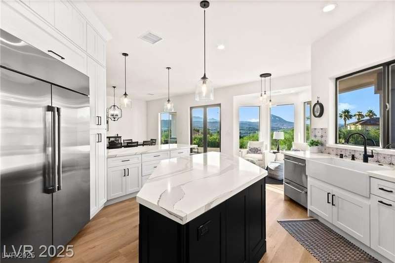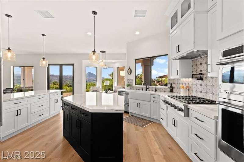 Nestled within the exclusive guard-gated South Shore community at Lake Las Vegas, this stunning custom home blends luxury, privacy, and spectacular lake and mountain views. Recently transformed with a high-end renovation, the home features 4 bedrooms, 5 baths, and a 3-car garage, including dual primary suites on both levels. Rich Luxury Vinyl Flooring and designer finishes create a warm, modern feel, while the gourmet kitchen impresses with premium stainless appliances, sleek quartz counters, and custom cabinetry. The backyard is an entertainer’s dream with a sparkling pool, spa, and multiple outdoor lounges surrounded by scenic vistas. Additional upgrades include newer roof, windows, doors, HVAC system, and much more! Lake Las Vegas Sports Club membership, a $25,000 value is transferable to the buyer offering premier fitness, tennis, pickleball, and social amenities.Move-in ready and moments from dining, golf, and lakeside recreation! Don't wait, schedule your private tour today!
