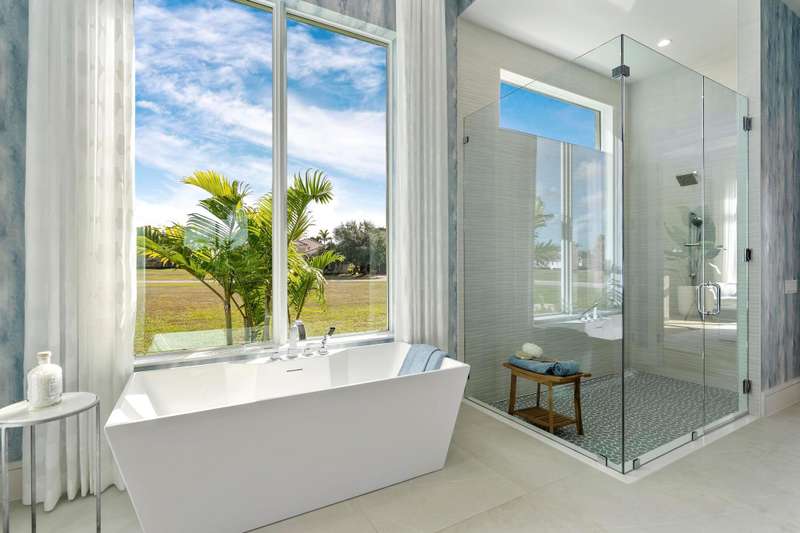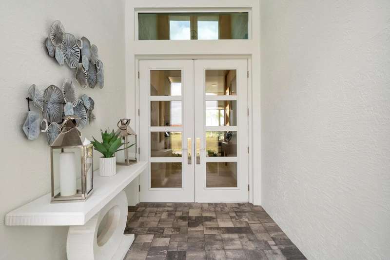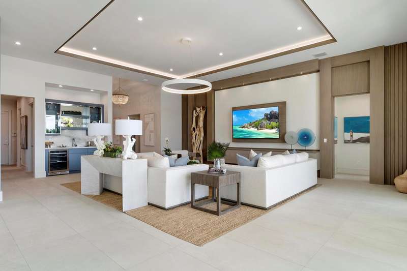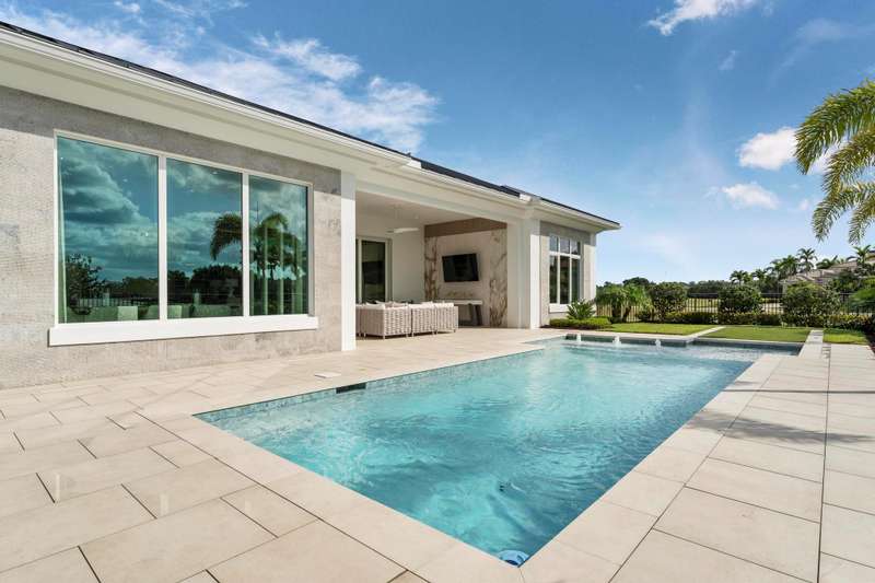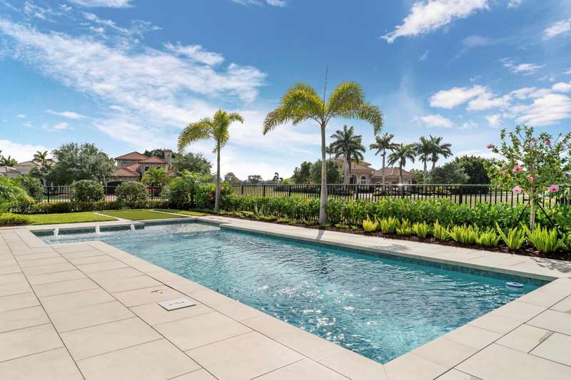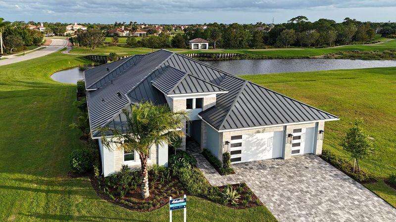 As you enter the gates of Tesoro, you are welcomed into a realm of luxury living. Elevate your lifestyle with a beautifully appointed model home from Ecclestone Signature Homes, featuring breathtaking views of the golf course and serene water. This residence offers three bedrooms, along with a den or flexible space, and is adorned with high-quality upgrades and finishes. The Coastal Modern Design promotes an open-concept layout with soaring ceilings, creating an ideal environment for entertaining. A spacious patio, complete with a custom-built TV wall, enhances outdoor living. With impact windows and doors throughout, homeownership is effortless. This residence has been meticulously decorated by one of South Florida's most esteemed designers, making it a true turnkey opportunity.