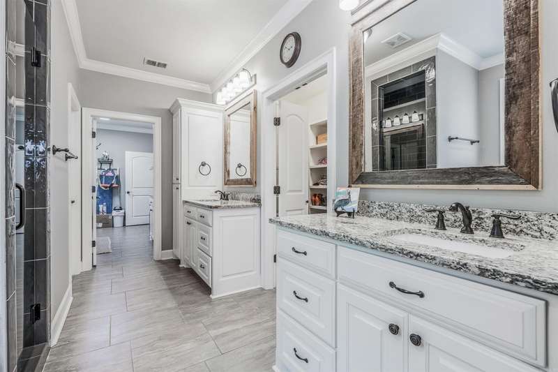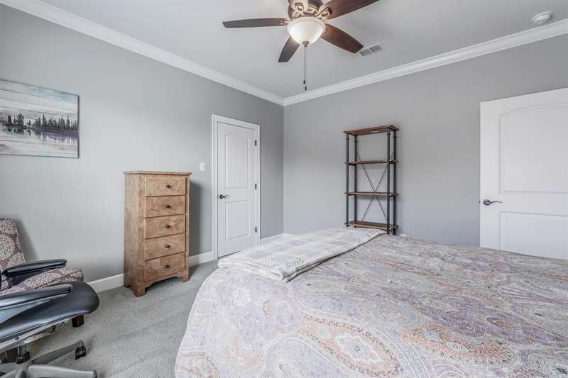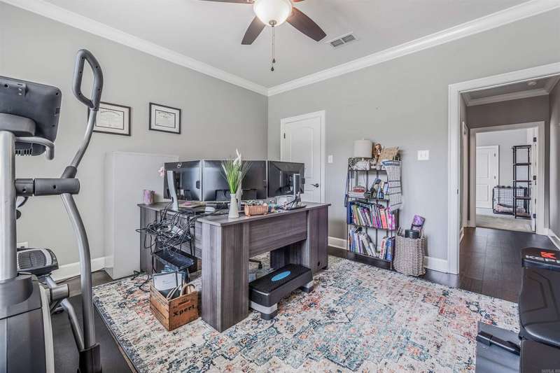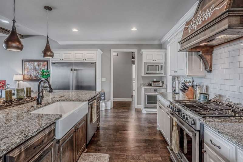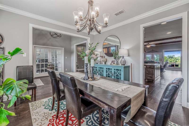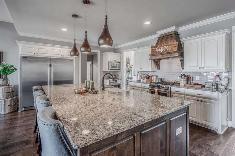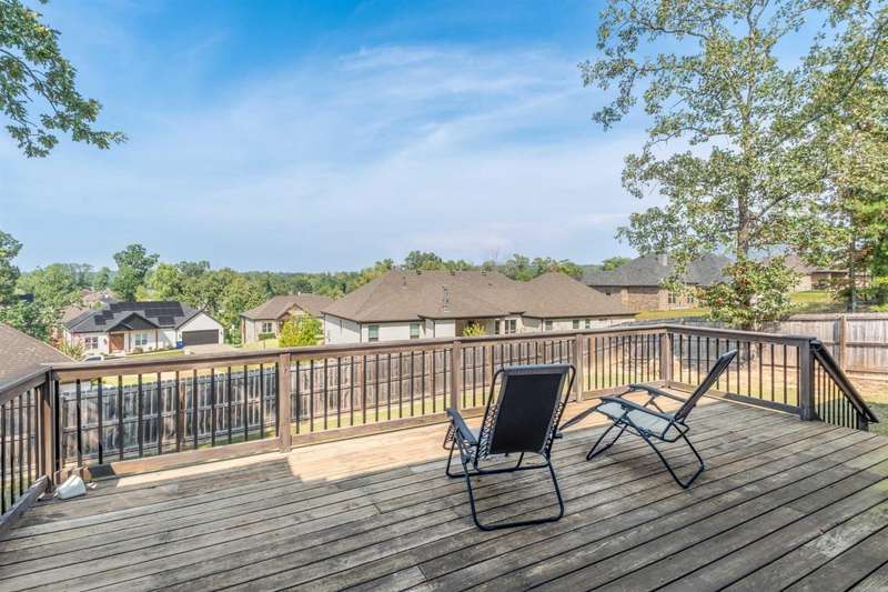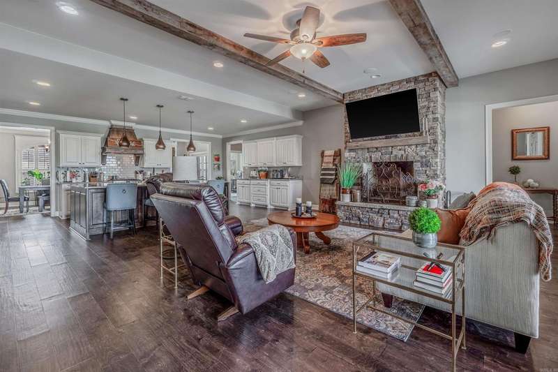 Welcome to this stunning custom built home with an open floor plan. Featuring 3 spacious bedrooms, dedicated office, and a formal dining room, this home offers both comfort and functionality. The kitchen is a chef's dream, boasting abundant cabinet storage, a breakfast bar, wall over, granite countertops, farmhouse sink, and stainless appliances. In the living room, wood beam accents and a stone fireplace hearth create a warm, inviting atmosphere that opens to a covered patio and deck-perfect for entertaining. The Primary Suite s a true retreat, completer with a luxurious bathroom featuring a walk-in shower, soaking tube, dual sinks with ample storage, and an impressive walk in closet. Conveniently connected, the laundry room includes a sink, generous counter space, and additional cabinetry. This home is the perfect blend of thoughtful design, comfort and style.
