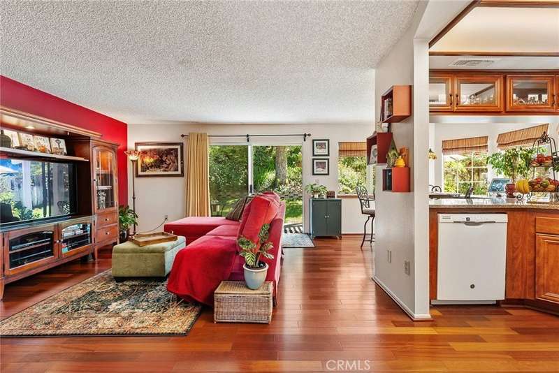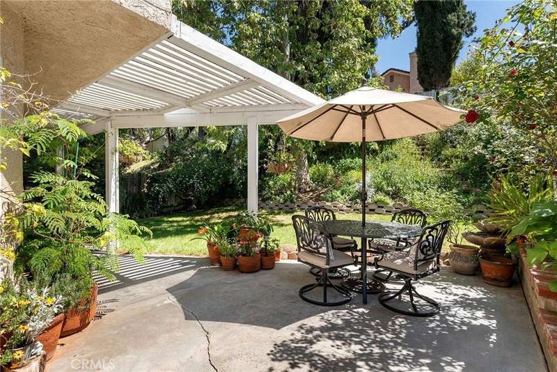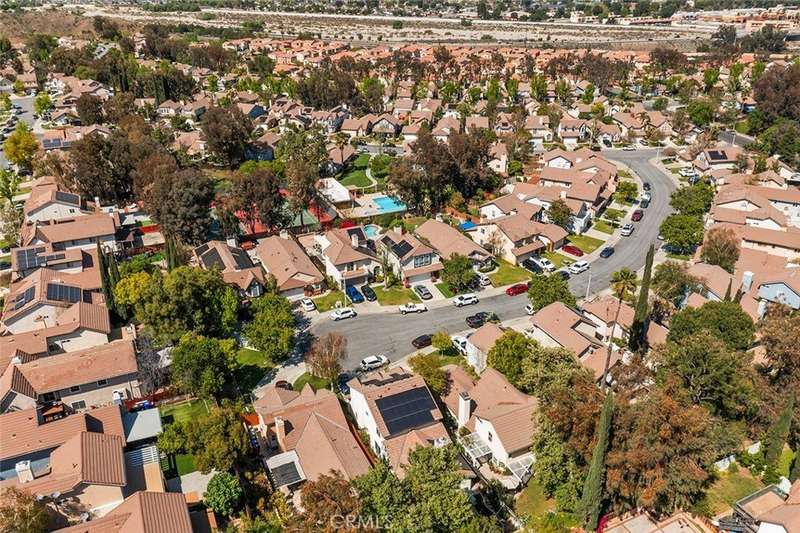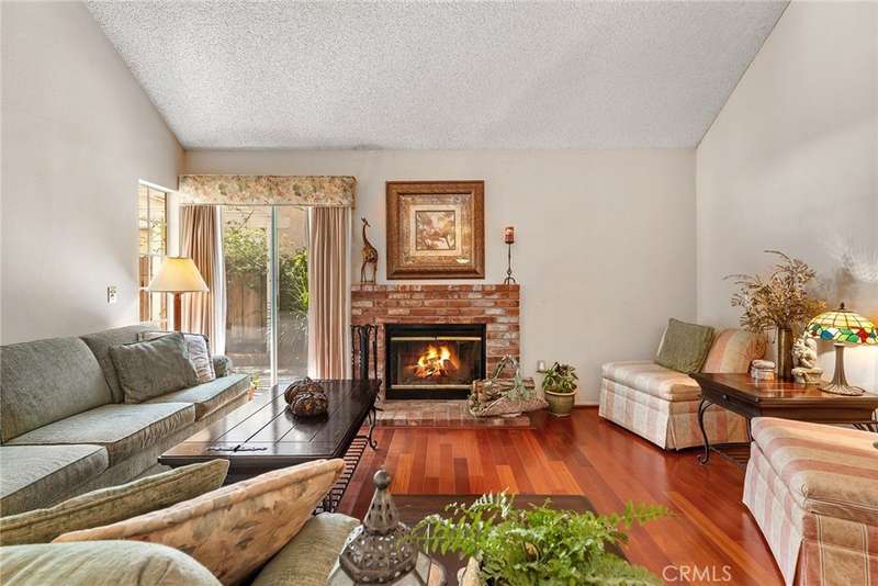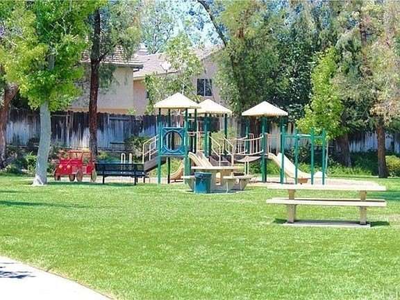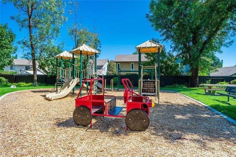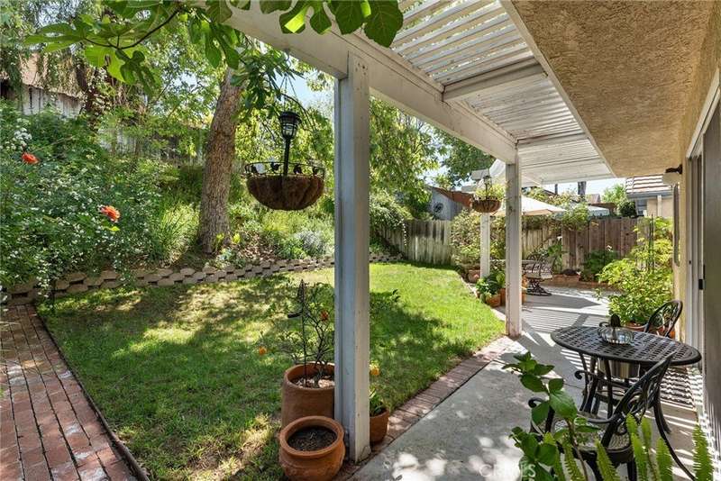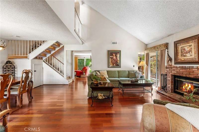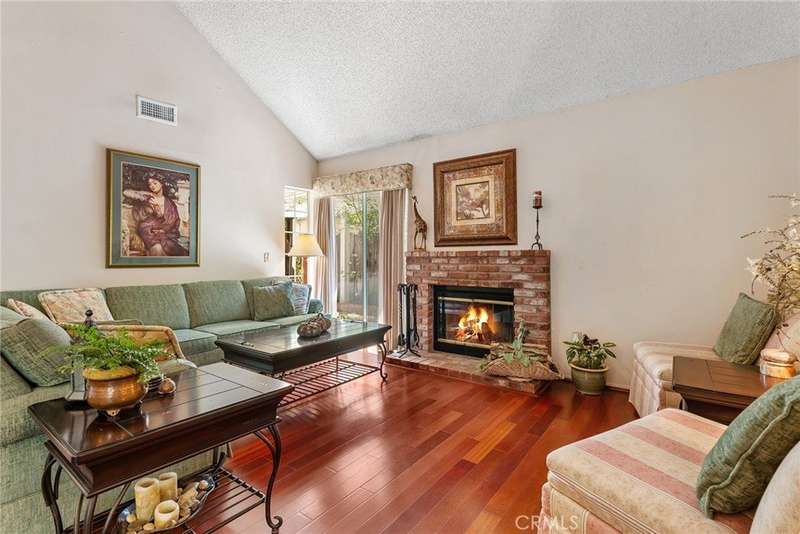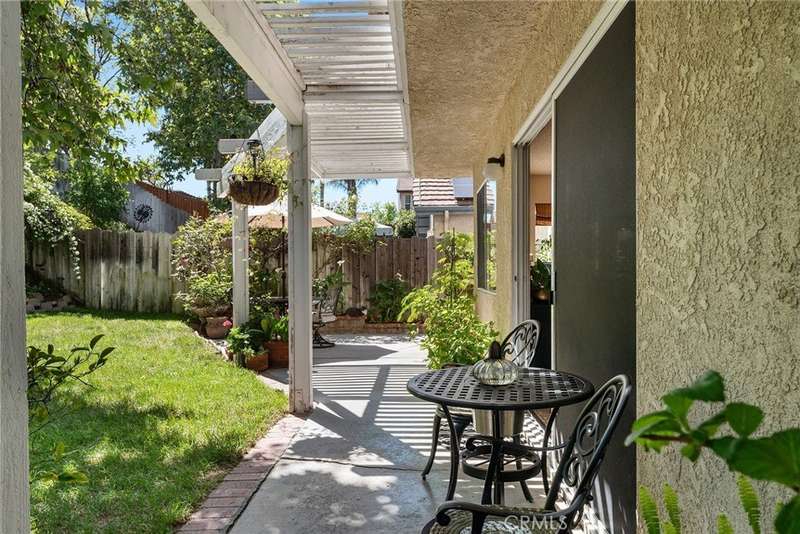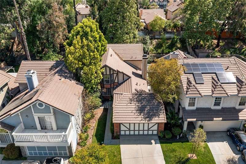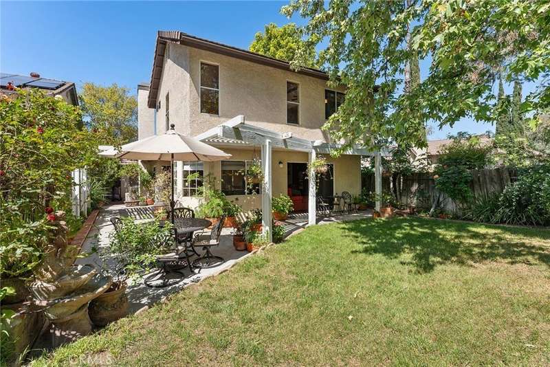 Located on a quiet cul-de-sac in the American Beauty Classics community, this charming 3-bedroom, 2.5-bath home features an open layout with upgraded wood flooring, a large living room with gas wood-burning fireplace, formal dining area, and spacious family room. The remodeled kitchen includes cherry finish cabinetry with soft-close drawers, quartz countertops, and a matching built-in buffet in the breakfast nook offering additional counter space and storage. Sliding glass doors from both the living and family rooms open to a lush, private backyard with mature trees, and an expansive wrap-around patio. Upstairs, the primary suite offers dual closets and a slate-tiled bath with shower/over-sized soaking tub. Two additional bedroom each with built-in shelving and share a full bath in the hallway. The front bedroom also features a bay window. The attached 2-car garage includes an EV-ready outlet, compressed air lines, and overhead storage racks. The heating and air conditioner was just replaced in 2023. HOA amenities include four pools, tennis, basketball, and volleyball courts, a park with play area, and front yard landscaping. Conveniently located near Costco, Trader Joe’s, and a wide range of shopping, dining, and entertainment options—with easy access to the 14 freeway—this home offers comfort, convenience, and an ideal setting for your next chapter. Did I mention NO MELLOROOS!