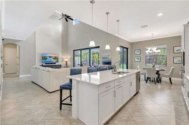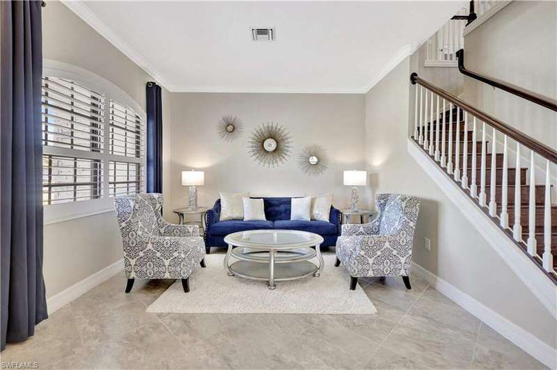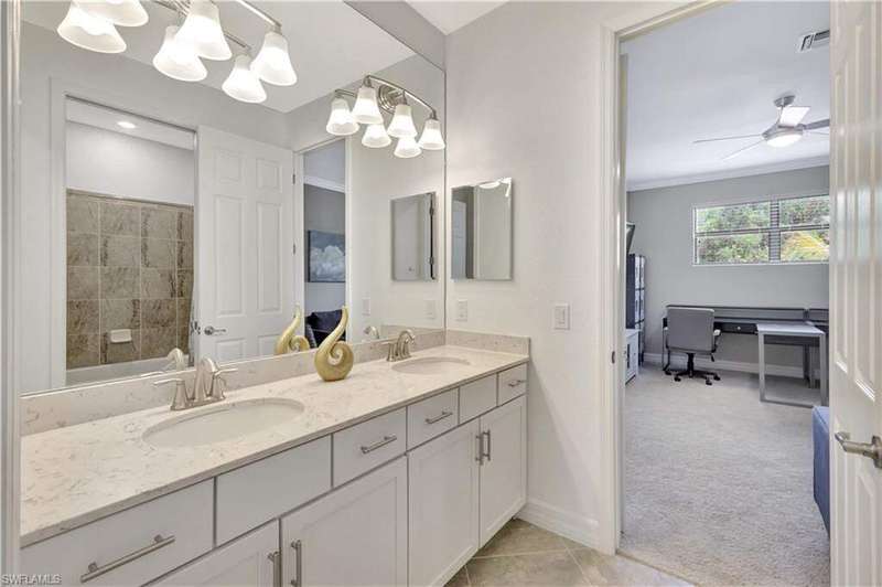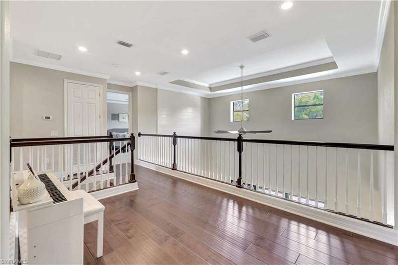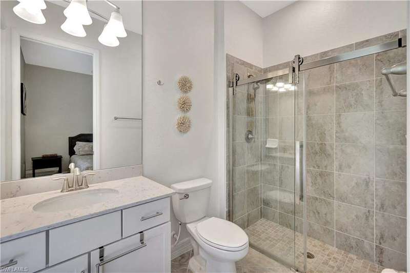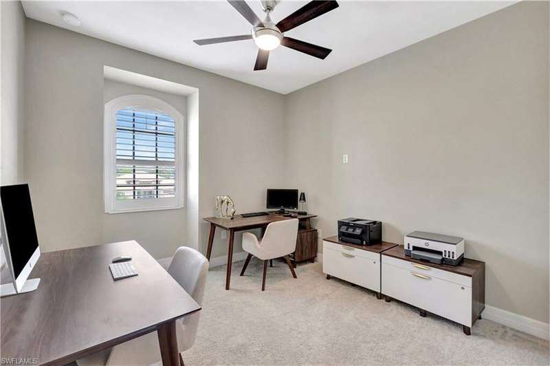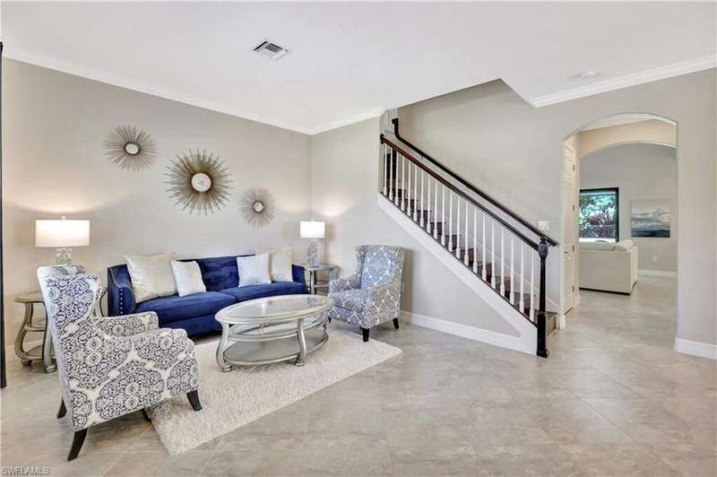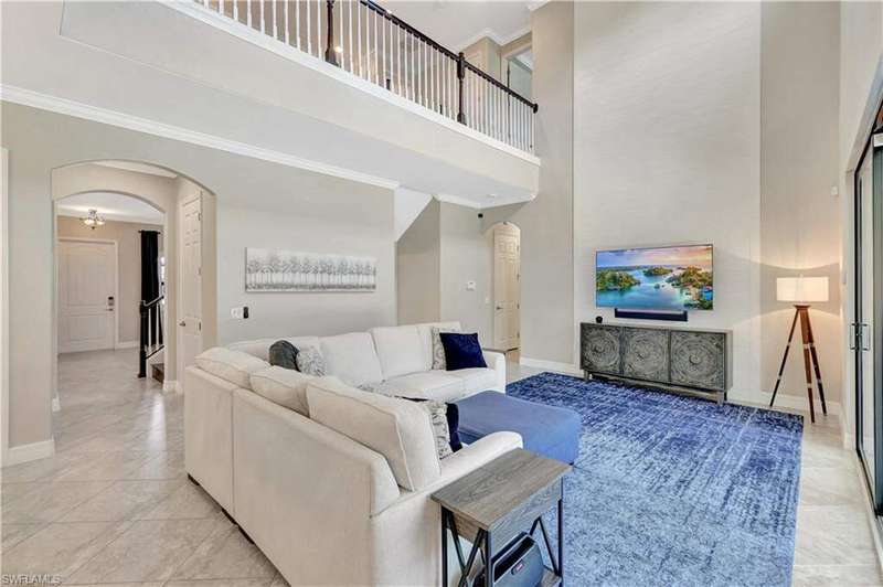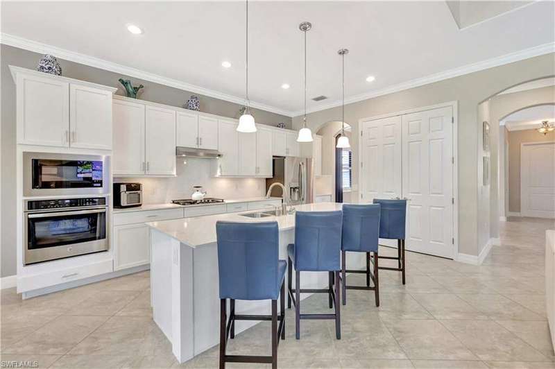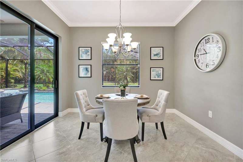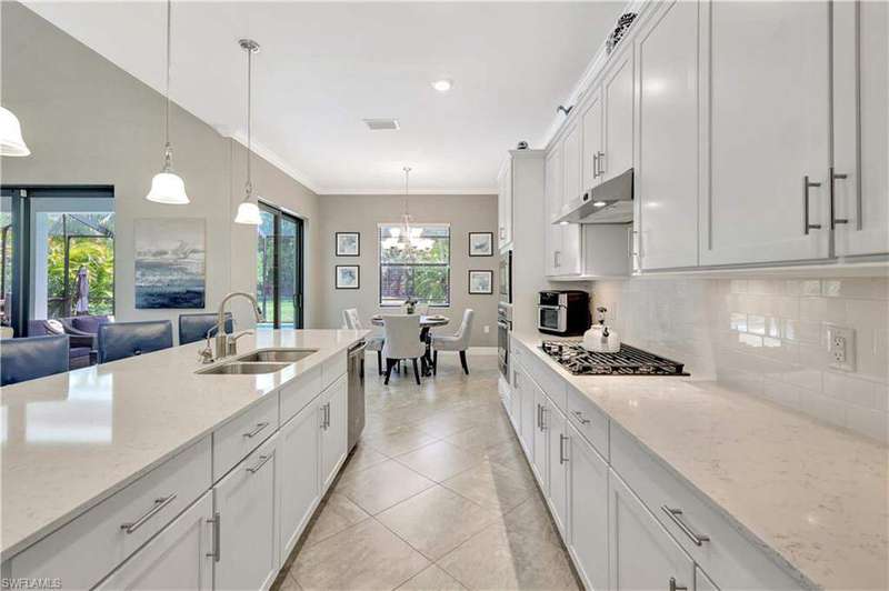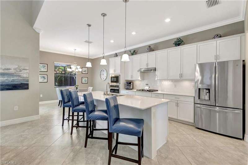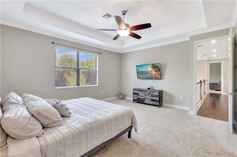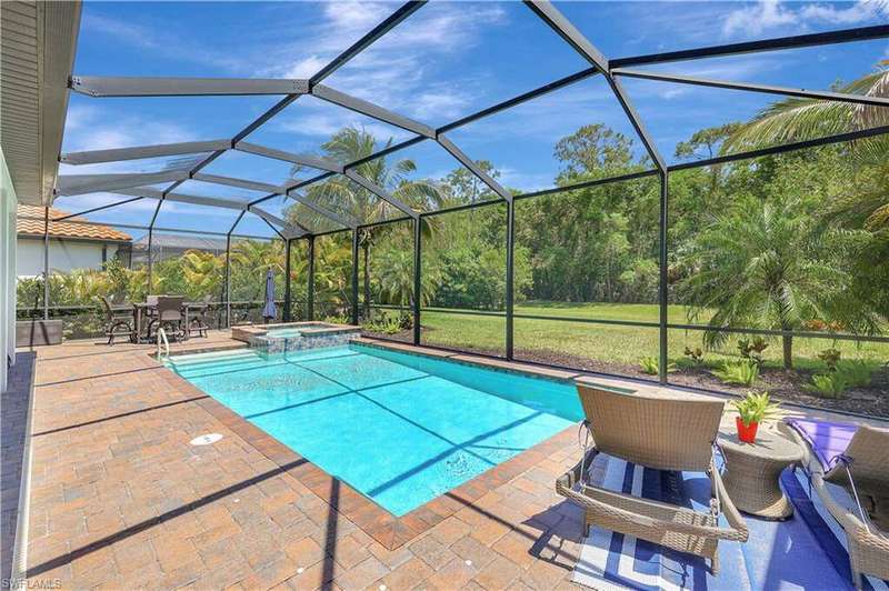 Sophisticated Living on a Grand Scale in LaMorada. Touch every moment and create lifelong memories in this pinnacle of luxury 5-bedroom, 4.5-bath home with a private den and loft, ideally positioned on an oversized lot in the highly sought-after LaMorada community of North Naples. With commanding curb appeal and refined craftsmanship throughout, this home exudes timeless elegance and comfort. Showcasing the popular Cornell floor plan, the property offers over 4,000 square feet of thoughtfully designed living space that seamlessly blends sophistication, functionality, and warmth. At the heart of the home, a gourmet kitchen awaits, complete with quartz countertops, high-end stainless-steel appliances, a natural gas cooktop, and a generous island ideal for both entertaining and everyday living. Multiple gathering spaces, including a formal dining area, spacious great room, and inviting living spaces, overlook the resort-style pool and lush backyard, creating a perfect setting for connection and relaxation. The main level includes a full en suite bedroom with private pool access-ideal for multigenerational living or overnight guests. Upstairs, three additional en suite bedrooms, a generous loft, and a flexible bonus room (perfect as a sixth bedroom, media room, or playroom) provide versatile options for every lifestyle. Design details such as rich hardwood flooring, custom wood accents, and elegant plantation shutters add a layer of warmth and sophistication to every space. Step outside to your private outdoor sanctuary-complete with an extended lanai, summer kitchen, and ample room for dining, lounging, or soaking in the Florida sunshine. LaMorada offers an unmatched lifestyle with exclusive amenities, including a luxurious clubhouse with culinary facilities, a state-of-the-art fitness center, private movie theater, tennis and pickleball courts, massage suites, and a full-service poolside restaurant-all within a vibrant, active community. This is your invitation to live beautifully in a home that perfectly embodies grace, comfort, and grandeur.