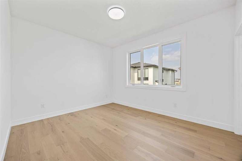 **For a limited time the builder is offering $20,000 in buyer upgrades throughout home (excluding appliances)** Welcome to the brand new development of Knightsbridge in Cambridge Park. Minutes away from access to Stoney Trail and East Hills shopping centre. The EDEN is a stunning estate home designed to blend luxury and practicality. Set on a generous 6027 sq ft lot, this home provides an expansive backyard and a side-drive triple car garage. These are not your typical cookie cutter homes. With 3,502 sq ft of living space, this custom-built masterpiece features 5 spacious bedrooms and 4.5 beautifully designed bathrooms, offering ample room for family and guests. This home is loaded with upgrades including: Main floor full ensuite bath as well as an added powder room, Jack and Jill ensuites for added convenience, High ceilings & a Spice kitchen to enhance your culinary experiences. Inside, the main floor exudes elegance with rich hardwood flooring and 9 ft ceilings with 8 ft doors, and striking black-framed windows that invite natural light. The gourmet kitchen is a chef’s dream, complete with an oversized island, a secondary spice kitchen, sleek stainless steel appliances. An open concept formal dining and living area set the stage for gatherings. The main floor also includes a flex room as well as a 4 pc ensuite bathroom. The primary suite on the upper floors is a true sanctuary with a freestanding tub and a custom-built closet. The home’s thoughtful design continues with 3 more generous sized bedrooms on the second floor, a bonus room for entertaining, a Jack & Jill ensuite bathroom for convenience, as well as a second floor laundry room. . Step outside to enjoy a completed rear deck with steps leading to a private outdoor oasis. This home also offers a triple attached garage allowing plenty of space for extra parking. This community is within minutes to Calgary, Chestermere, and East Hills, 18 minutes to Downtown Calgary, and provides quick access to Stoney Trail, Highway 1, and McKnight Blvd making it easy to get anywhere in and around the city. Located near shopping centres, public and private schools, Khalsa school's, parks, and many other amenities, while still offering quiet country-living with wide open green spaces, walking paths, and playgrounds.