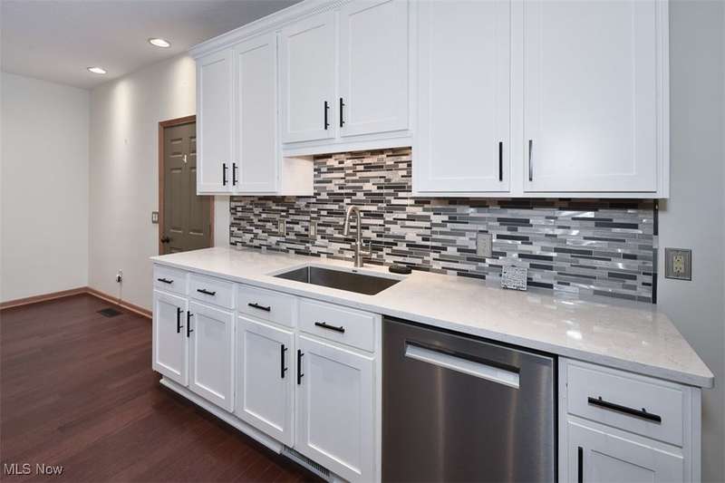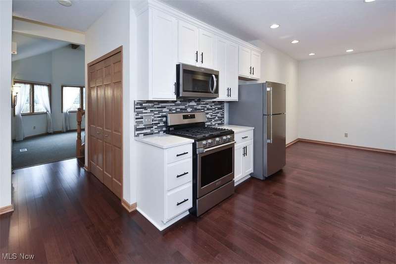 Experience comfortable living and ease of maintenance with this end unit location! Modest size with plenty of room - 3 BR & office! Kitchen updated recently with white shaker cabinets, quartz counters, and tile backsplash! Refrigerator, range, and microwave new in 2024! Dishwasher 2023. Besides eat-in kitchen you have area for entertaining/dining, plus traditional living room. Three bedrooms with ample closet space, master bedroom is vaulted and has newer vinyl casement window. The main bath was completely remodeled in 2018, adding storage and shower space! Other updates include: A/C condenser and H2O Tank 2024, Garage Doors 2019, Washer & Dryer 2023! Low maintenance casement windows with vinyl cladding on exterior. Garage has two bays and plenty of cabinet storage. This self managed association of four condos has a reserve fund that last replaced the roofs in 2012. Close to Westlake Rec, Crocker Park, and University Hospital campus.