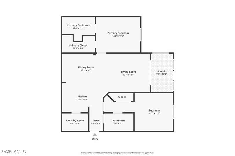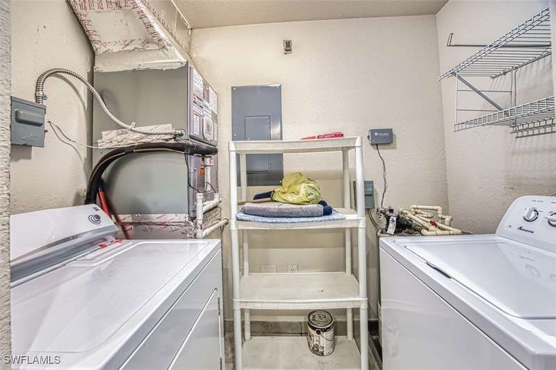 Bella Casa is in the heart of it all in South Fort Myers, walking distance to Whole Foods, the Sports Complex, numerous restaurants and public transportation. This 2/2 first floor unit features impact windows and doors, tile and granite in the kitchen and baths and large tile in the living and dining area. Both bedrooms have a private bath and the owner's bath has a shower. The lanai has an extended patio and a southeast exposure. Private side entry and exterior storage for your gear. Community clubhouse, pool, spa, workout room and outdoor fireplace. Pet friendly community with lovely landscaping and maintenance.