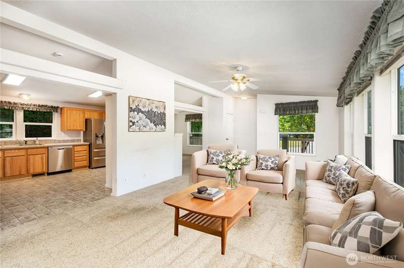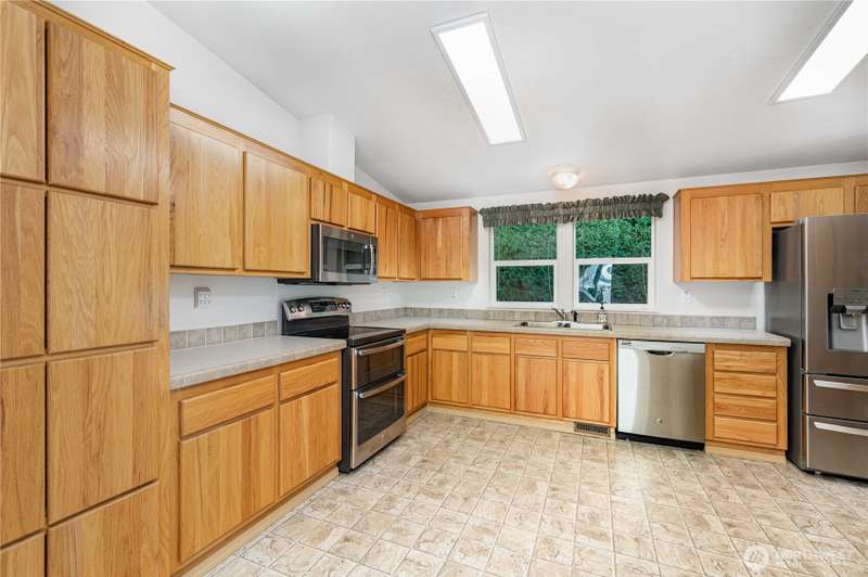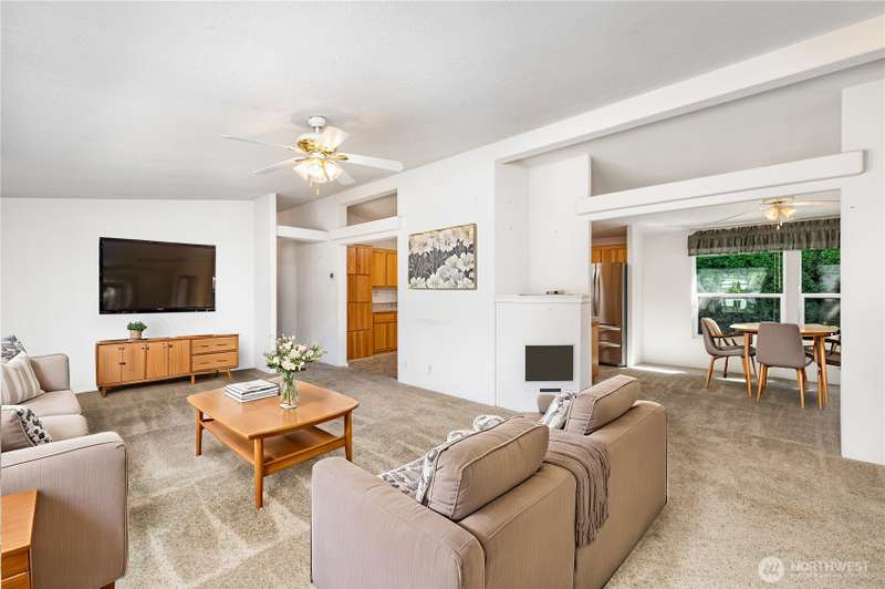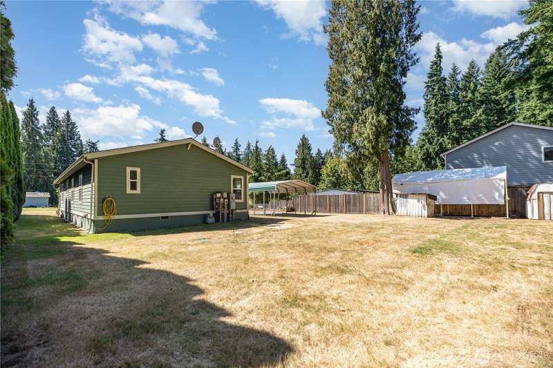 Charming 3-bedroom, 2-bathroom home in Bothell with a sizable front porch to warmly welcome you in. The living room boasts vaulted ceilings and large windows, creating a bright and airy feel. The kitchen features stainless steel appliances, warm-toned cabinetry, ample counter space, abundant storage, a walk-in pantry, and a large window above the sink. Three spacious bedrooms provide comfort and flexibility, while the large utility room offers extra storage and direct outdoor access. Enjoy a 2-car covered carport and a generous backyard with three storage sheds. Ideally located near Mill Creek, nature trails, shopping, and amenities, with easy access to Bellevue, Seattle, and Everett for convenient daily commuting.