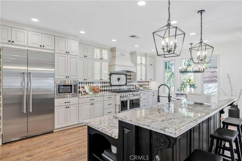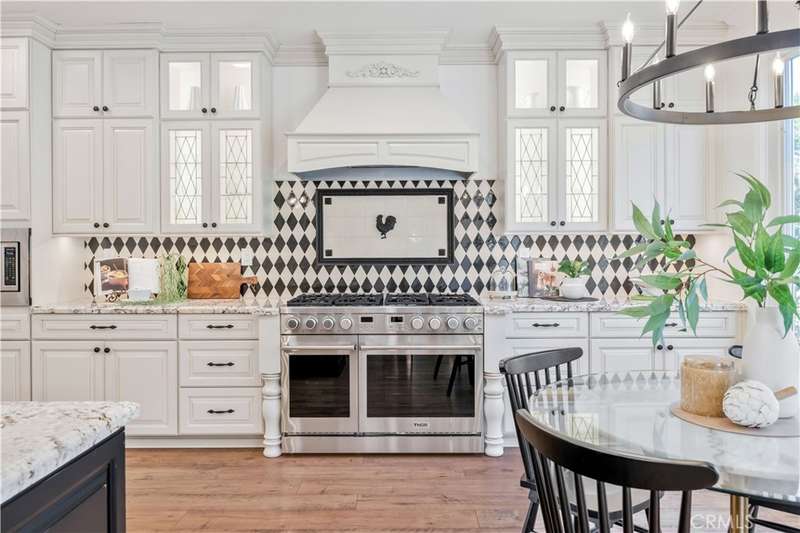 The gourmet chef's kitchen is a true showpiece, featuring an 8-burner Thor built-in range with dual ovens, a large built-in refrigerator/freezer, instant hot water tap, high-end stainless steel appliances, and a large walk-in pantry. The breakfast nook opens seamlessly to the inviting family room with a beautiful stone fireplace--perfect for everyday living and entertaining.