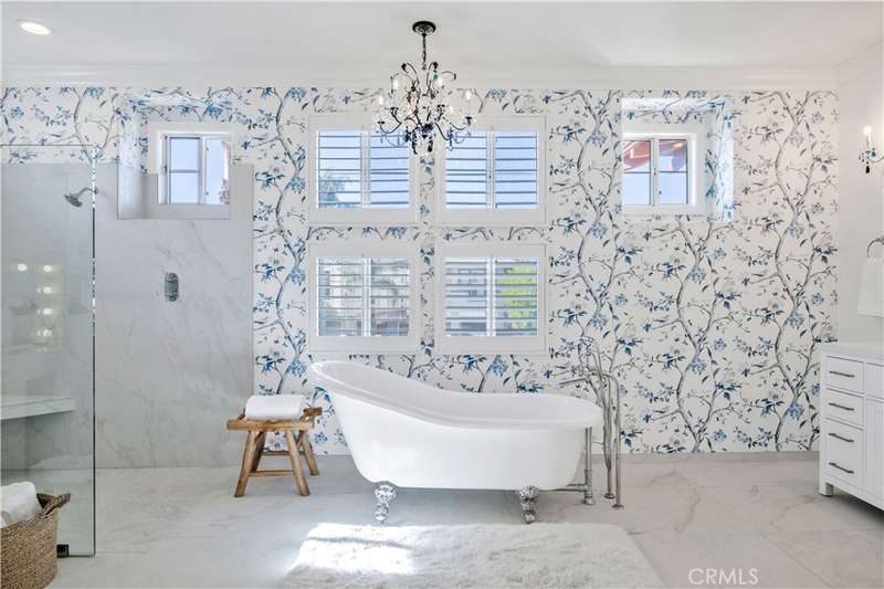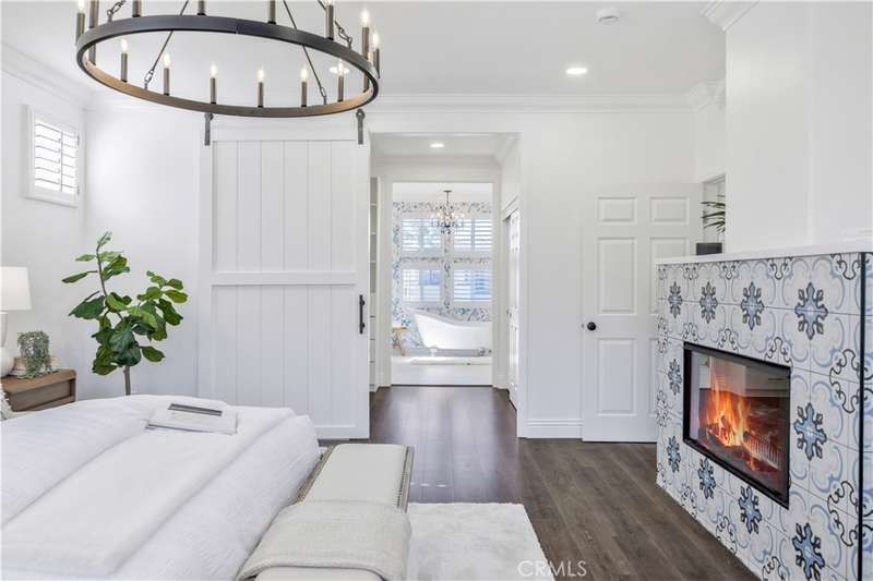 Upstairs, the luxurious primary suite offers a private retreat with its own fireplace, a spacious sitting area, and a massive walk-in closet. The oversized spa-inspired primary bathroom features a freestanding soaking tub, a large walk-in shower, a separate makeup vanity and stunning designer finishes. Three additional bedrooms complete the upper level, including one currently used as an office with built-ins that can easily be converted into a bedroom.