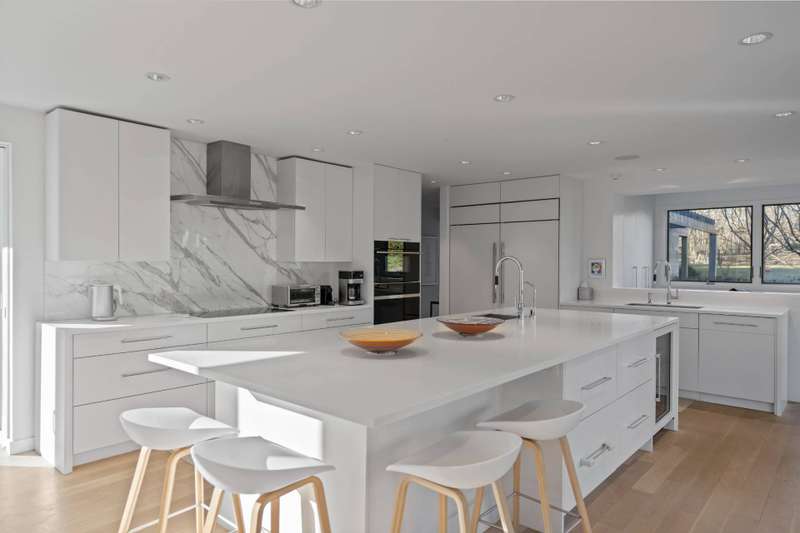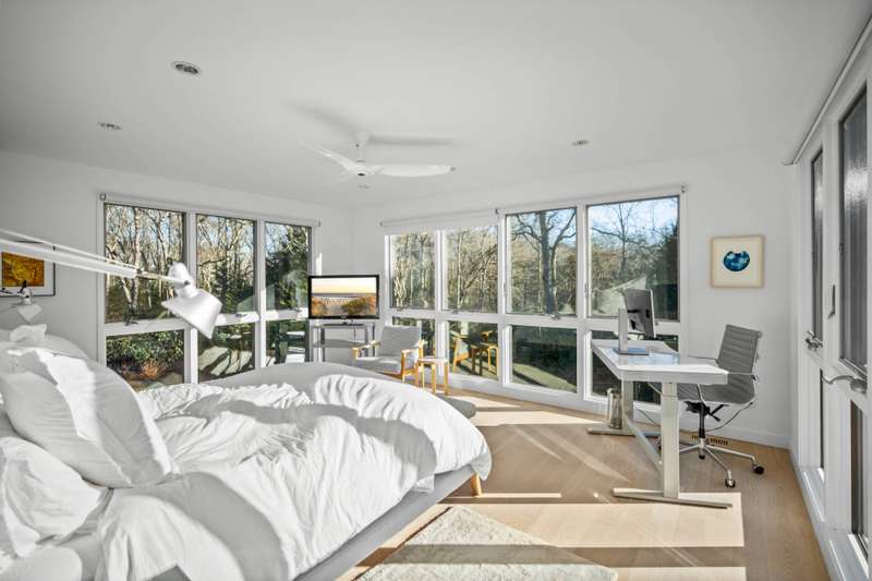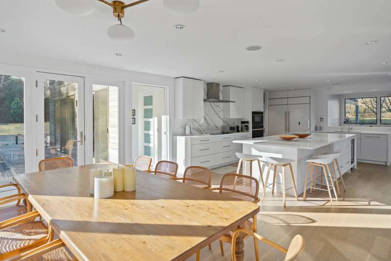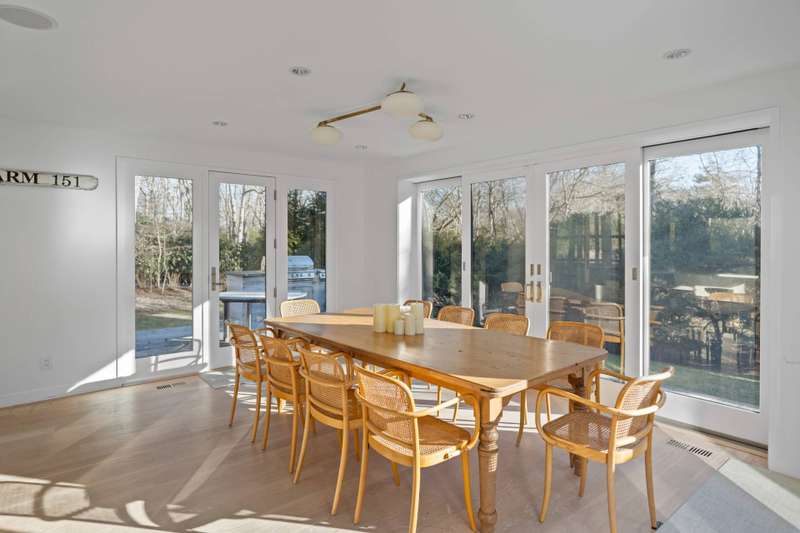 Discover the epitome of luxury living in East Hampton South, right off Further Lane. This exceptional residence, designed by the renowned Robert A. M. Stern Architects and Bates Masi Architects, is set on a stunning 1.24+/- acre lot meticulously landscaped with specimen plantings throughout. The expansive, gated grounds create a serene setting complemented by a pool and spa, while the iconic modern home stands as a testament to architectural brilliance. The main residence offers 5,300+/- square feet of meticulously crafted living space, featuring 5 bedrooms, a bonus room, and 6.5 bathrooms. Each bedroom is a sanctuary of comfort, with the primary suite offering a private office, a walk-in closet, an en-suite bath with a soaking tub and dual sinks, and a large balcony deck, overlooking the backyard. The additional bedrooms are equally luxurious, all featuring access to a second-level deck. The interior spaces are designed for both relaxation and entertainment. The family room, office, and media room provide ample space for work and leisure, while the finished lower level adds an extra layer of versatility. The home is adorned with top-of-the-line finishes throughout, ensuring every corner exudes elegance and sophistication. High ceilings, large windows, and an open floor plan create a bright and airy atmosphere, enhancing the sense of space and luxury. The exterior of the property is equally impressive. The estate includes a heated gunite pool, perfect for a refreshing dip on a warm summer day, set amidst beautifully landscaped grounds with plenty of space for outdoor activities and entertaining. Expansive patios and outdoor living areas provide the perfect backdrop for al fresco dining and gatherings. Nestled in the heart of East Hampton, the property is just a mile from beautiful beaches and luxury transportation options, making it an ideal location for those seeking both privacy and convenience. This is the only modern Robert A.M. Stern design in the Hamptons, making it a true architectural gem. Whether you seek privacy, versatility, or the ultimate in luxury, 151 Skimhampton Road is your perfect sanctuary in the East Hampton South. ADJACENT PARCEL IS BEING OFFERED FOR SALE AS A PACKAGE DEAL.