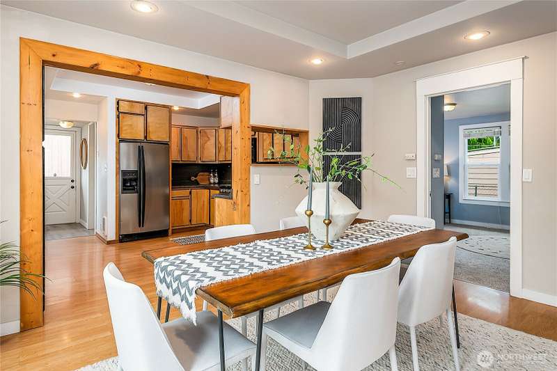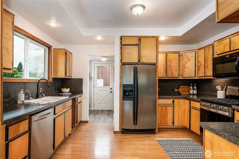 This charming bungalow on a sunny corner lot is a fantastic opportunity offering the ease of single-level living. The open floorplan flows effortlessly from the living room to the dining area - ideal for daily living and entertaining. The well-planned kitchen provides abundant cabinet space, and a spacious primary bedroom complete with an en-suite bath and space for a desk! Outside, you'll find a fully fenced front yard, a back deck and a detached heated shop complete with oversized garage doors, an electric opener and a loft - offer endless possibilities. Recent upgrades include a NEW roof and energy-efficient windows throughout the home in 2025. All just a short stroll from downtown Monroe’s shops and restaurants. Pre-inspected for you!