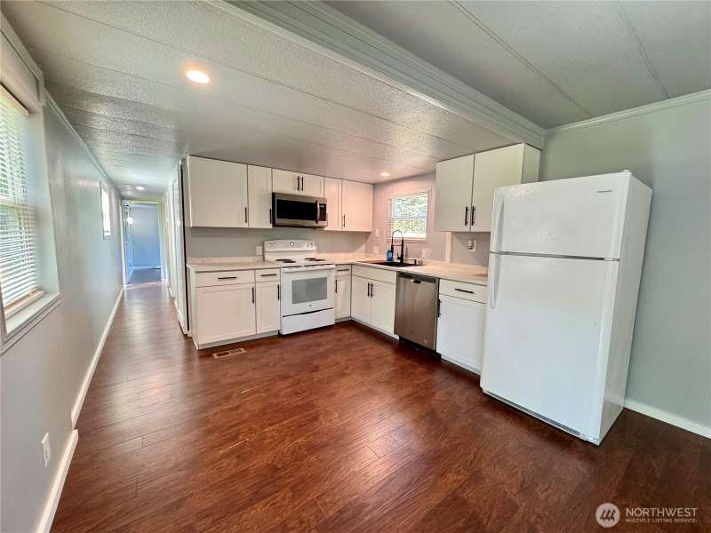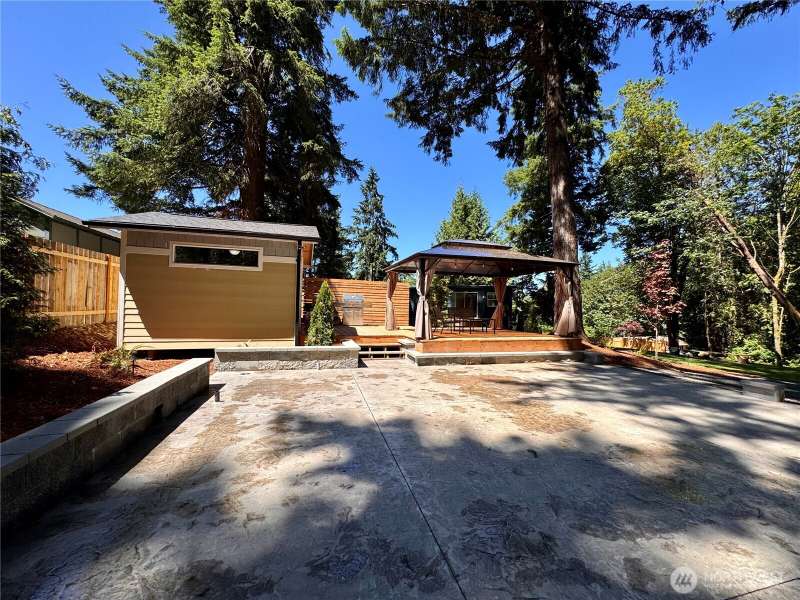 Financing now available! Nearly .40 acre lot. Currently home to an updated single-wide manufactured 2-bedroom residence, it’s the perfect canvas to live in now or to build your custom dream home later. This private oasis, partially fenced lot shines at the end of a short country road, surrounded by old growth forests, brimming with wildlife. Enjoy established landscape and a stamped concrete sport court, RV parking, a fire-pit, carport and a versatile detached home office. A generous deck for summer lounging. New septic tank installed. Whether you're looking for a place to live in while you build or seeking a serene property with room to grow, this is ideally located between Bremerton & Silverdale. Imagine the possibilities!