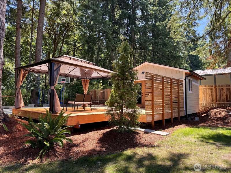 Opportunity knocks on this beautiful nearly .40 acre lot. Currently home to an updated single-wide manufactured 2-bedroom residence, it’s the perfect canvas to live in now or to build your custom dream home later. This private oasis, partially fenced lot shines at the end of a short country road, surrounded by old growth forests, brimming with wildlife. Enjoy established landscape and a stamped concrete sport court, RV parking, a fire-pit, carport and a versatile shed/tiny home. A generous deck is ready for summer lounging. With some peek-a-boo mountain view’s, options are endless. Whether you're looking for a place to live while you build or seeking a serene property with room to grow. Imagine the possibilities! Seeking only cash buyers.