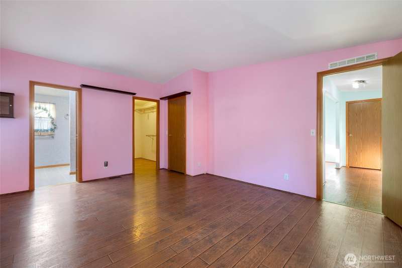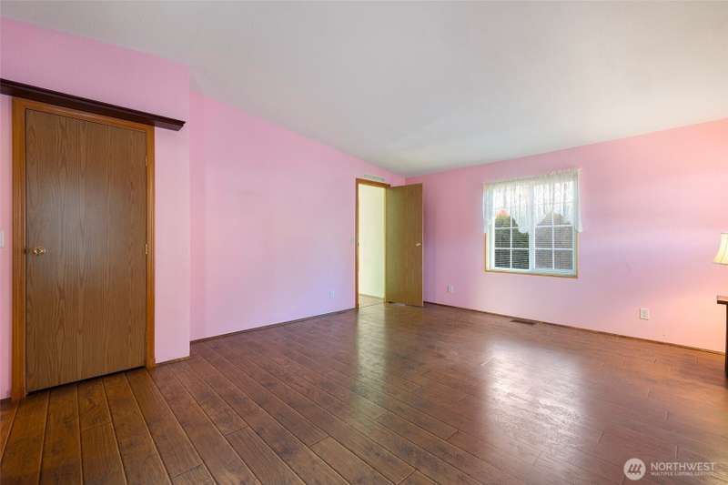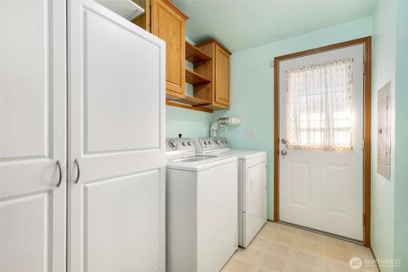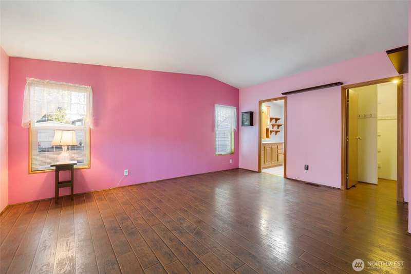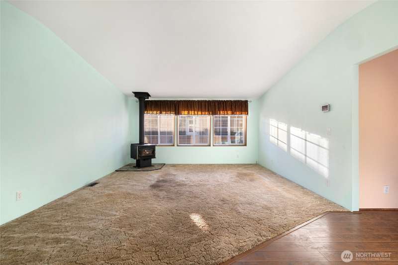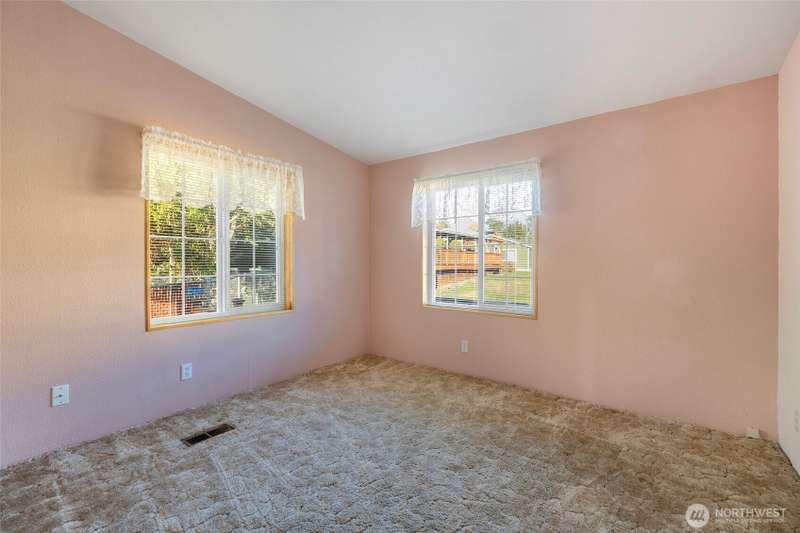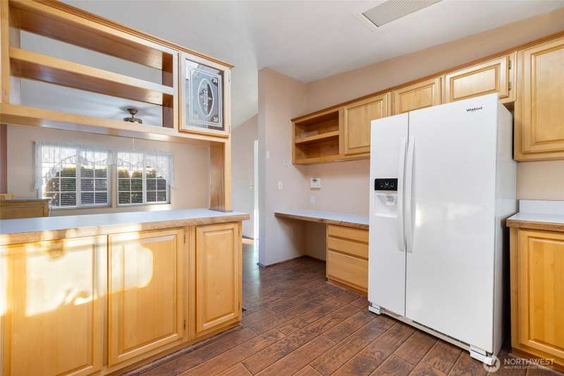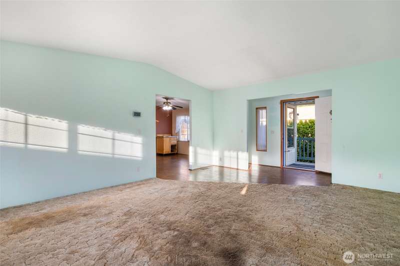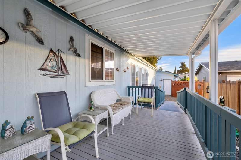Welcome home to this cute and cozy house! Step into a vaulted ceiling living room with fireplace and lots of natural light. The gorgeous kitchen is complete with breakfast bar and eating nook. Lots of cabinet and counter top space for your cooking needs The primary bedroom is separated away from the other 2 guest bedrooms. Spacious primary bedroom with vaulted ceiling, walk in closet, and shower only bathroom. This property also features a detached garage with auto door opener, 2 decks, and fenced in yard space. The home features skylights for natural light and a heat pump system for heating and cooling. The lot is not leased land!