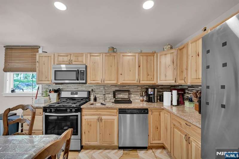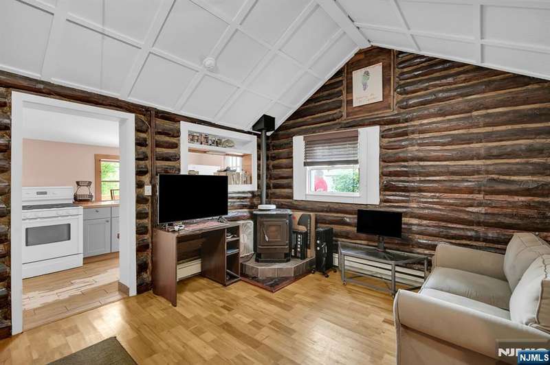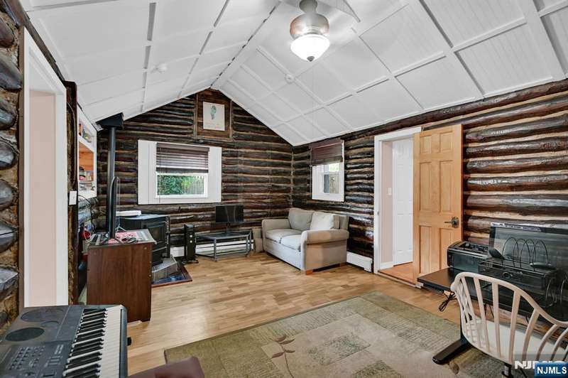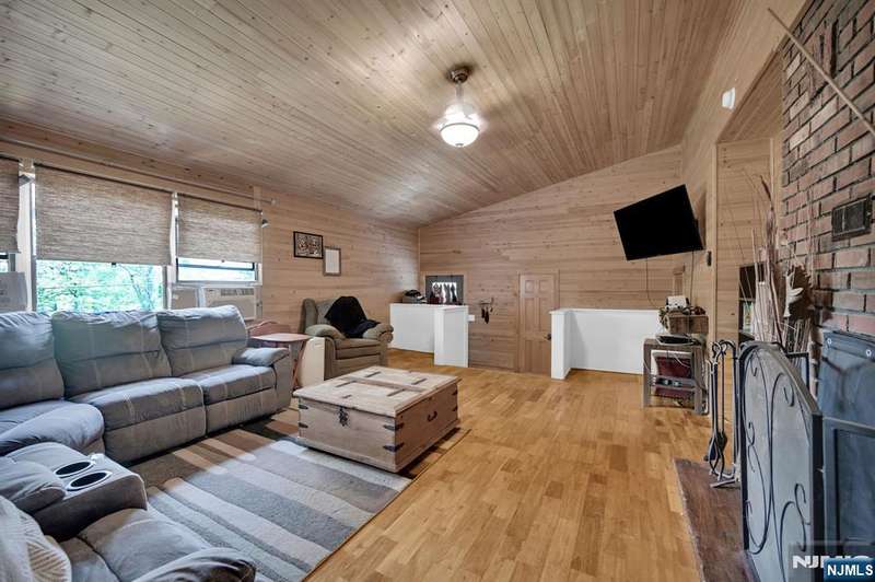Welcome to this awesome lake house in the beautiful Shady Lake community in lower west Milford! This home has lots to offer, including a potential in-law/guest suit! The main living room is true lake house living with pine covered walls, vaulted ceiling and gorgeous brick wood burning fireplace! Wood floors throughout that will be refinished prior to move in..what a bonus!! Kitchen cabinets are just incredible and the kitchen has space enough for a large dining table and sliding glass doors leading to the backyard deck! 3 nice size bedrooms and 1 full bath in the main house. The other side of the house is a quaint log cabin interior with 1 bedroom, 1 bathroom, living room, pellet stove and mini kitchen with a private side door that takes you to a wrap around deck. Full basement with laundry room, wood stove and has potential to be finished. Very long garage. Lots of potential to create your own oasis with this big yard...Almost 1/3 acre! Many newer items include siding, roof and oil tank in 2025 and new septic system from 2022! Heated floors in the guest suit kitchen and bathroom! Use all the lake amenities including the pool! Close to highways/shopping. House is just under 2000 sqft! Come make this home yours and enjoy all the beautiful scenery Shady Lake offers! (Home being used as a 4 bedroom but has a 3 bedroom septic) Home is much larger than it appears!