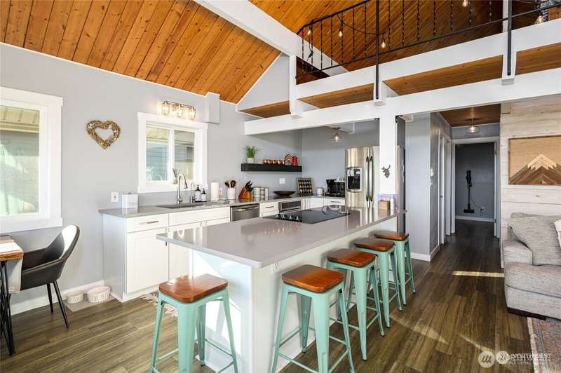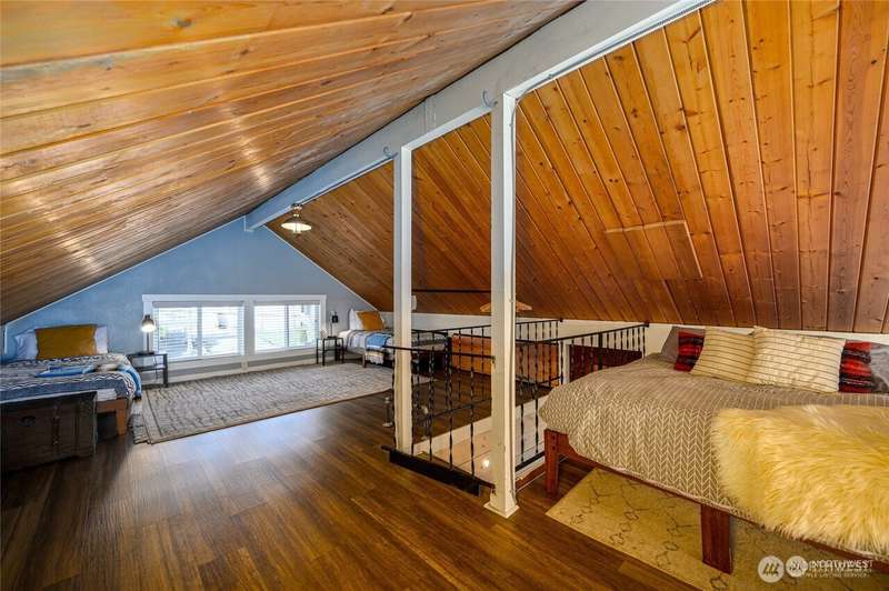 Welcome to this beautifully maintained 2 bed + open loft, 1 bath waterfront home in the desirable Sandy Point community! Enjoy fiery sunrises from the freshly stained deck overlooking 62' of waterfront with low bank access for easy kayak & SUP launch. East-facing with gorgeous backdrop of Mt. Baker & Twin Sisters, this charming, updated beach house features soaring tongue & groove ceilings, an updated kitchen w/ new refrigerator, an updated bath, and a spacious loft that accommodates 4–6. Other features include new W/D, new roof in May, newer siding & windows. Community amenities include private golf course, marina, pickle ball & tennis courts, clubhouse & pool. Operating as an active Airbnb/short-term rental with all furnishings included.