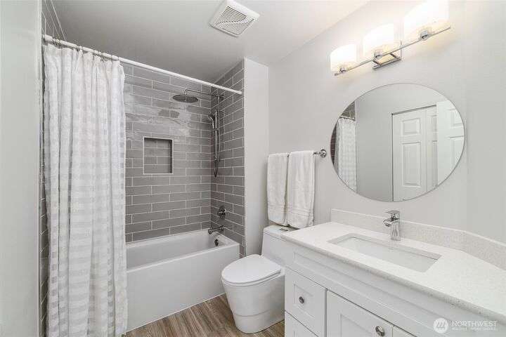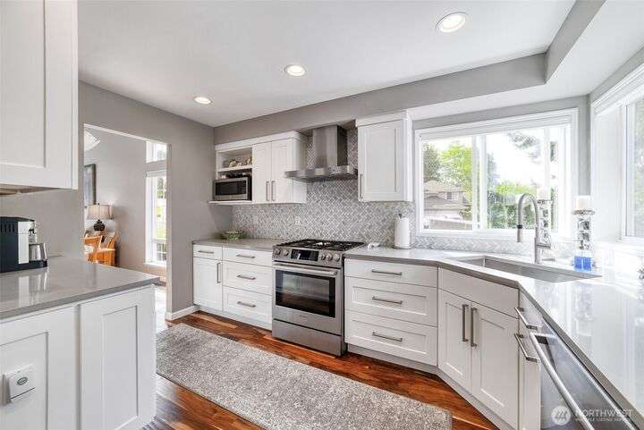Tucked on a quiet Cul-de-Sac in the coveted Summerwind community, this elegant, fully updated home offers 2,420 sq ft of versatile living across two stories and a daylight basement. Featuring 4 bedrooms—including a one-of-a-kind primary suite—and 3.5 stylishly updated baths. A Gourmet kitchen boasts quartz counters, stainless appliances & custom cabinetry, flowing into an open dining and living area ideal for entertaining. Enjoy EV charging, 3-car garage, huge fully fenced backyard, patio, and a covered deck with integrated drainage. A lower-level 1 bed/1 bath suite offers income potential. With a forced-air heat pump, HEPA filtration, and scenic territorial views, this Eastside Gem blends comfort, style, and functionality.