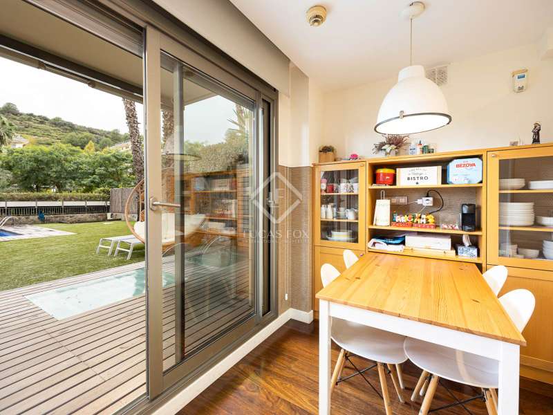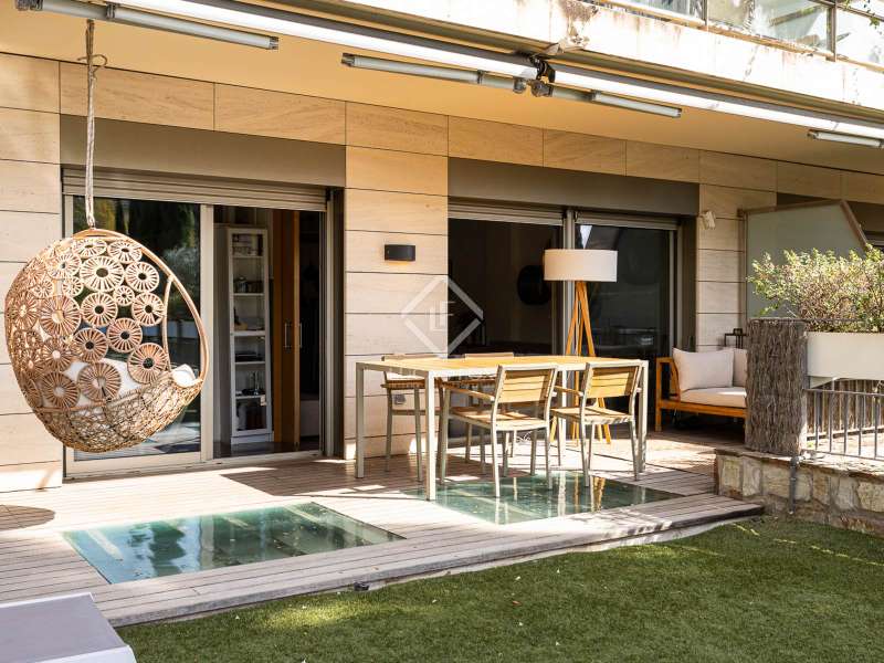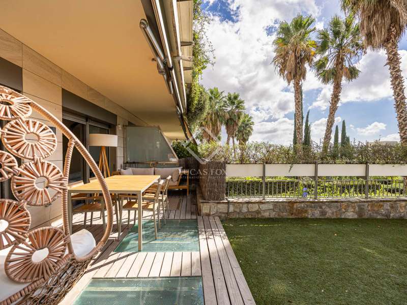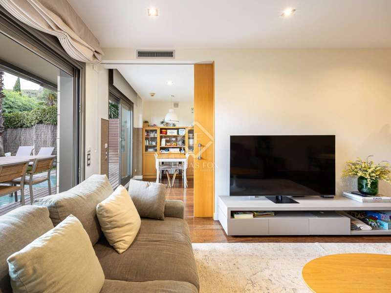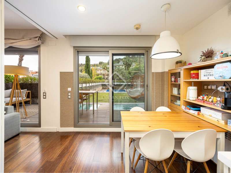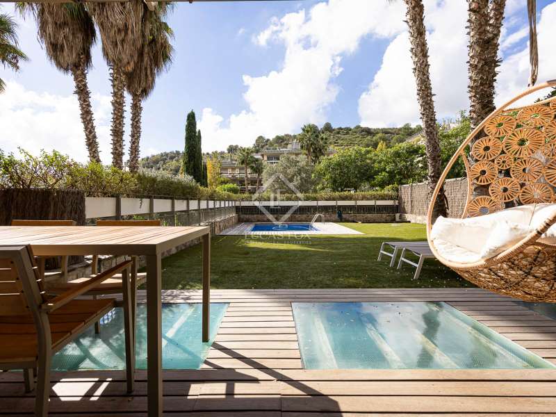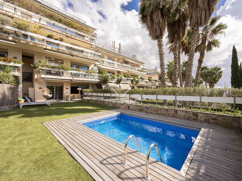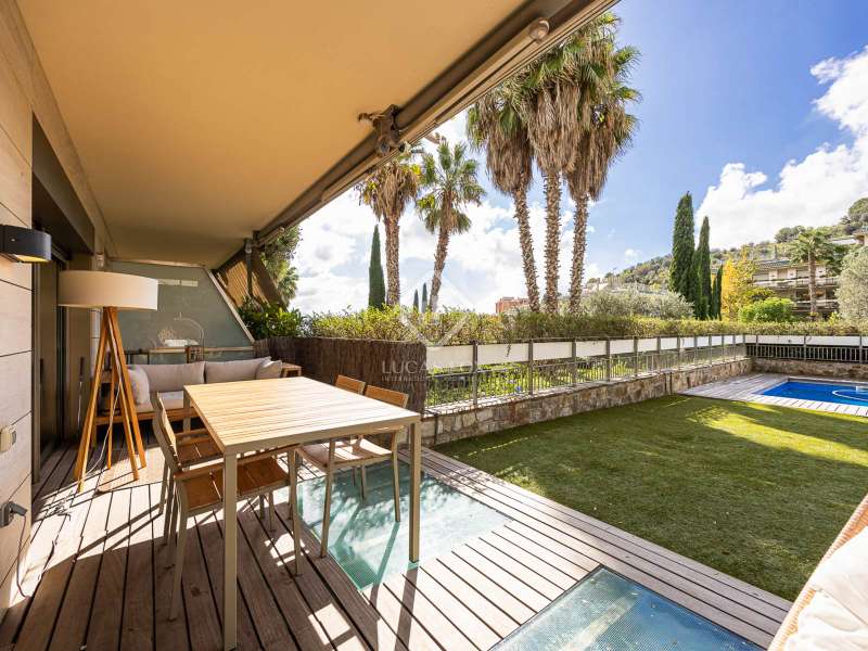 A unique opportunity to live in one of the most prestigious residential areas in Barcelona! This magnificent ground floor of 232 m² built, distributed on two levels, offers you an unrivalled lifestyle. On the upper floor , there are three bedrooms with direct access to the garden, including a suite with its own bathroom . In total, this floor has two complete bathrooms and a guest toilet. The day area includes a spacious living dining room living room , intelligently connected to the kitchen through a sliding door, allowing you to create an open space or two separate environments as you prefer. Both from the living room and the kitchen you can access the main garden , where a chill-out area, a wooden deck with an exterior dining room table and a private pool await you. The panoramic views of both the sea and the city of Barcelona are simply spectacular. On the lower floor , you will find a service room, a full bathroom , a utility room area and a large multipurpose room ideal for adapting to your needs. The price includes three covered parking spaces in a private garage. In addition, the development offers unbeatable amenities : a large communal swimming pool, tennis court, football pitch and garden areas full of flowers and colours that create an environment of tranquillity and well-being. Located in Torre Vilana, renowned for its exclusivity and high level of security, this property is perfect for those seeking a sophisticated lifestyle in Barcelona. Don't miss this unique opportunity to live in a privileged environment.