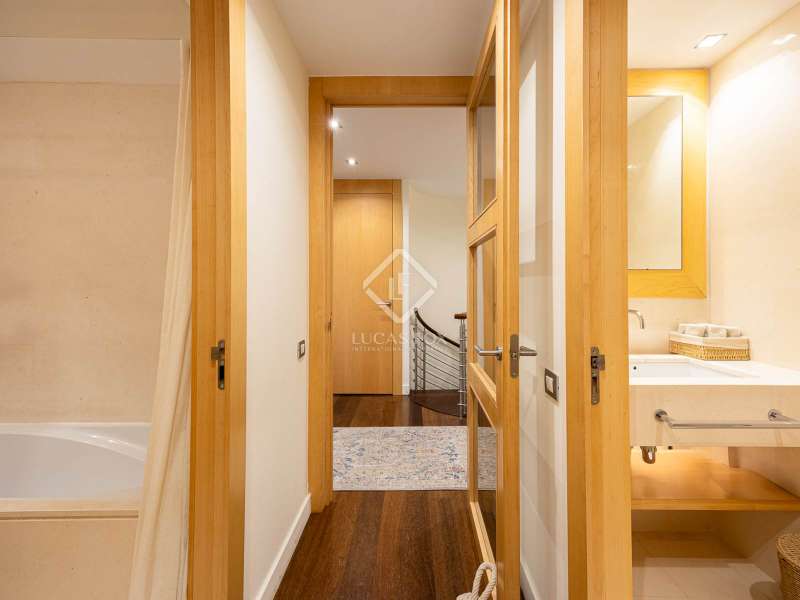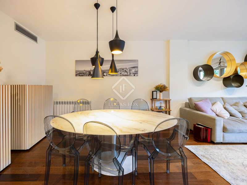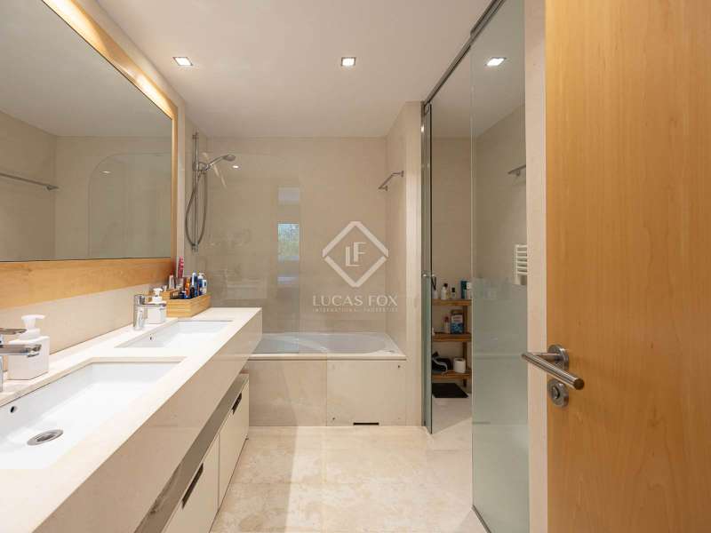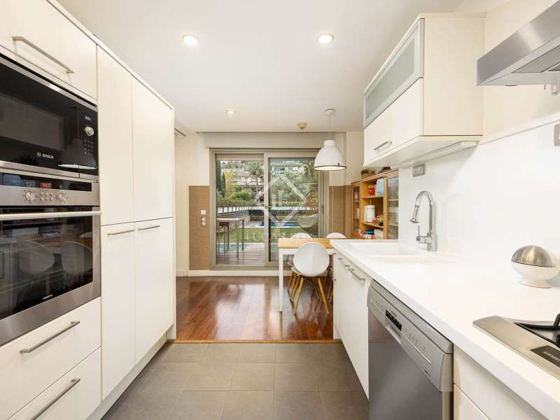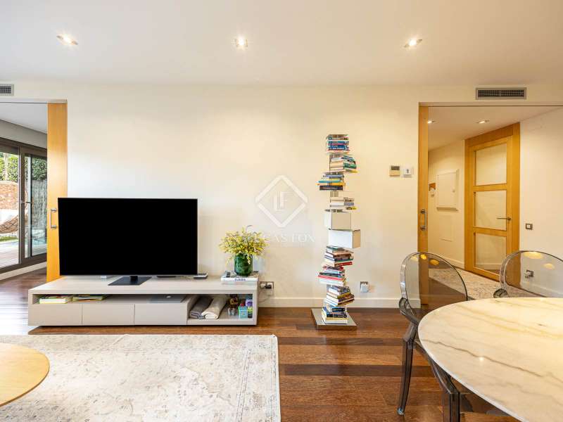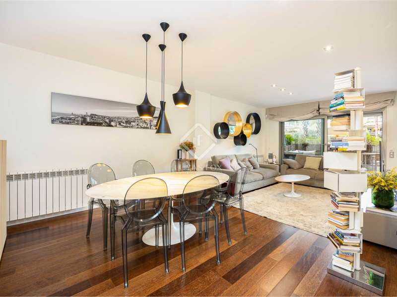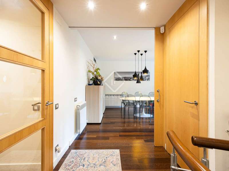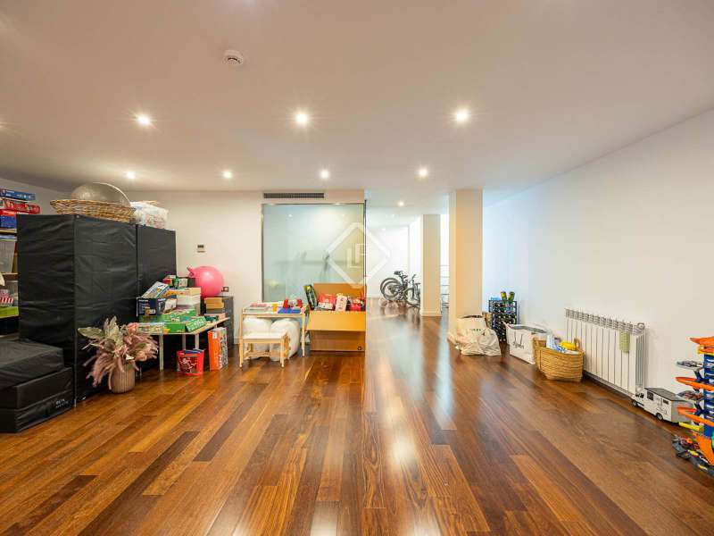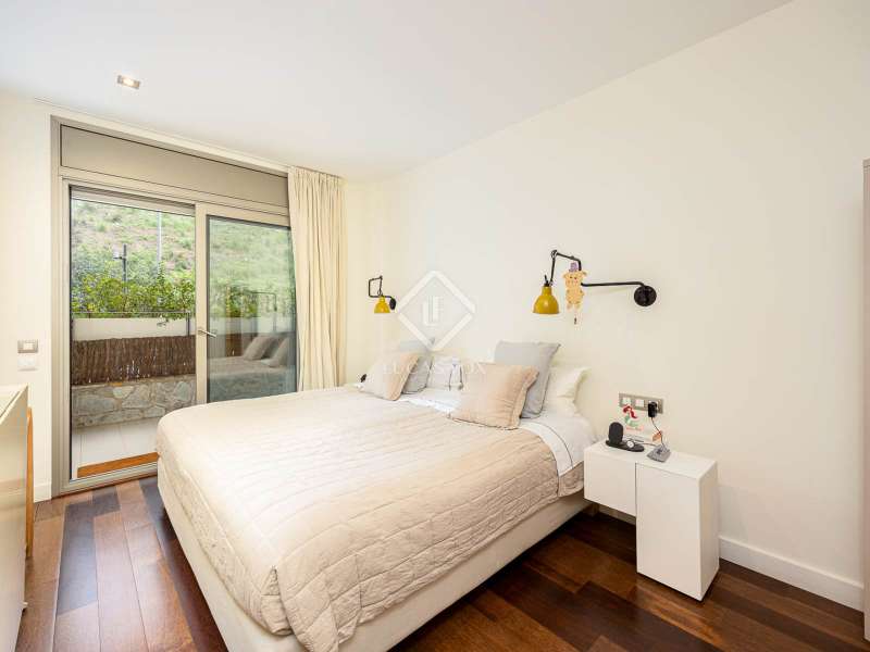 A unique opportunity to live in one of the most prestigious residential areas in Barcelona! This magnificent ground floor of 232 m² built, distributed on two levels, offers you an unrivalled lifestyle. On the upper floor , there are three bedrooms with direct access to the garden, including a suite with its own bathroom . In total, this floor has two complete bathrooms and a guest toilet. The day area includes a spacious living dining room living room , intelligently connected to the kitchen through a sliding door, allowing you to create an open space or two separate environments as you prefer. Both from the living room and the kitchen you can access the main garden , where a chill-out area, a wooden deck with an exterior dining room table and a private pool await you. The panoramic views of both the sea and the city of Barcelona are simply spectacular. On the lower floor , you will find a service room, a full bathroom , a utility room area and a large multipurpose room ideal for adapting to your needs. The price includes three covered parking spaces in a private garage. In addition, the development offers unbeatable amenities : a large communal swimming pool, tennis court, football pitch and garden areas full of flowers and colours that create an environment of tranquillity and well-being. Located in Torre Vilana, renowned for its exclusivity and high level of security, this property is perfect for those seeking a sophisticated lifestyle in Barcelona. Don't miss this unique opportunity to live in a privileged environment.
