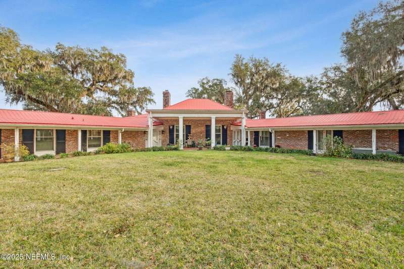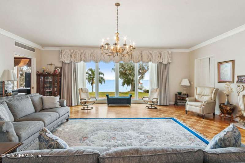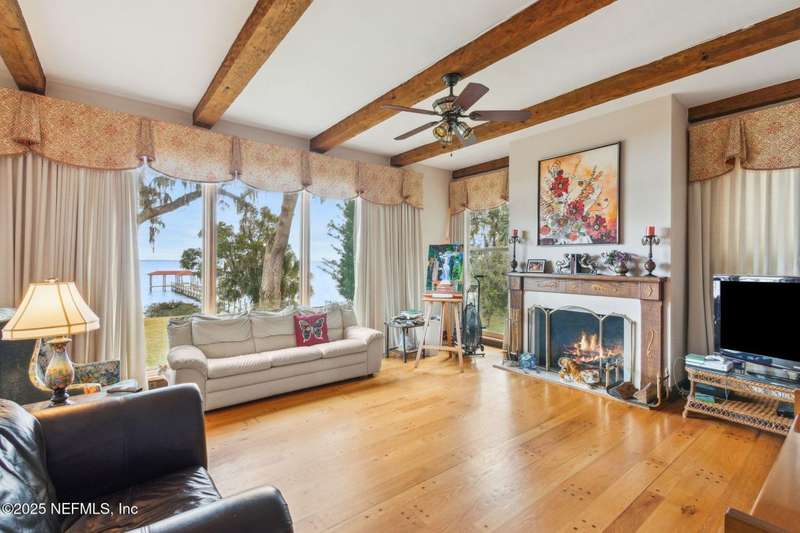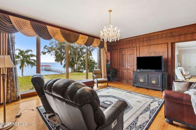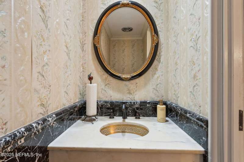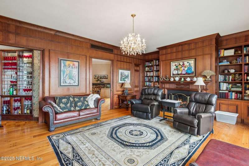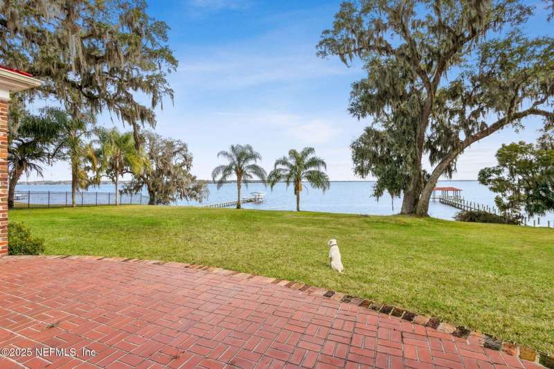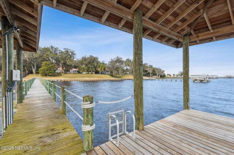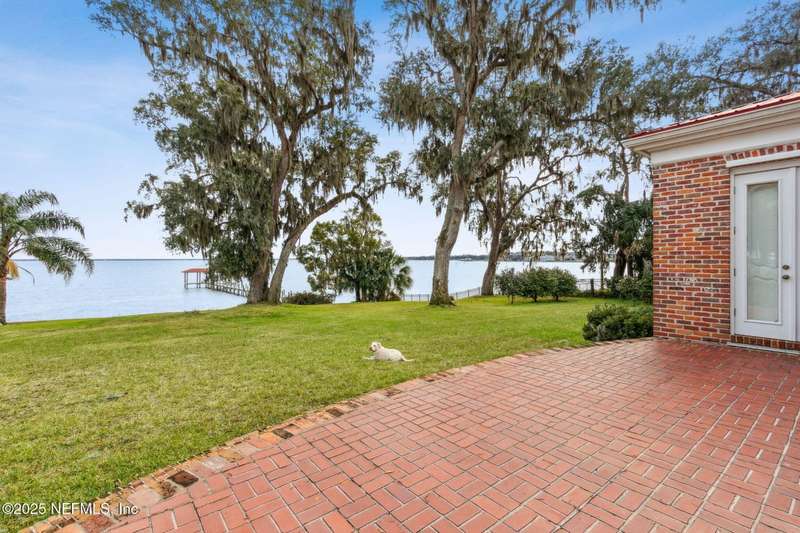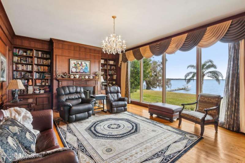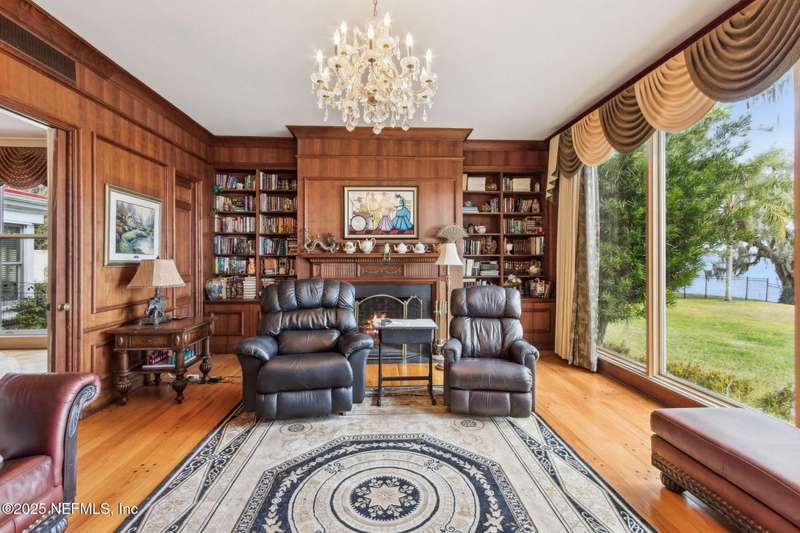Come cool off this Summer and experience refined riverfront living in this stately all-brick estate perched on a natural bluff along the St. Johns River. Set on 2.4 acres with approximately 219 feet of frontage this home offers breathtaking sunrises and deep water access suitable for most sailboats. The private dock includes a covered boat slip with a 10,000 lb lift, bulkhead, and electric service. Inside the main home is 4 bedrooms 4.5 baths and boasts five fireplaces, a grand living room with sweeping river views, and a richly appointed library with wet bar. The luxurious primary suite features a sitting room with FP and expansive river views ,a marble FP in the bedroom, dressing room, and a spa-like bath with sauna. A separate apartment includes its own living room, kitchenette, full bath, and bedroom. Additional highlights include an artesian well, RV parking with electric, whole-house water filtration, gardener's half bath, and mostly Pella windows throughout. Don't miss out ! Exterior Gardner's half bath.