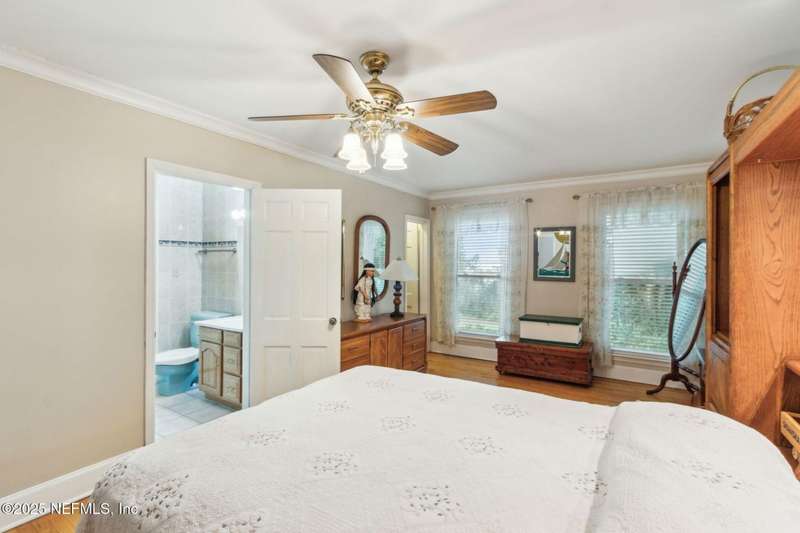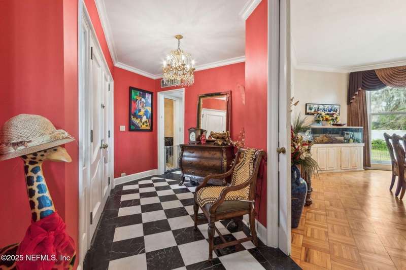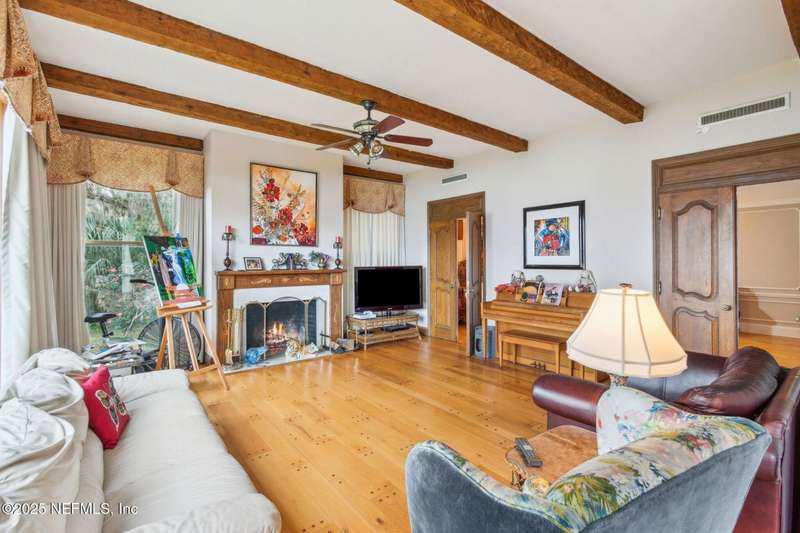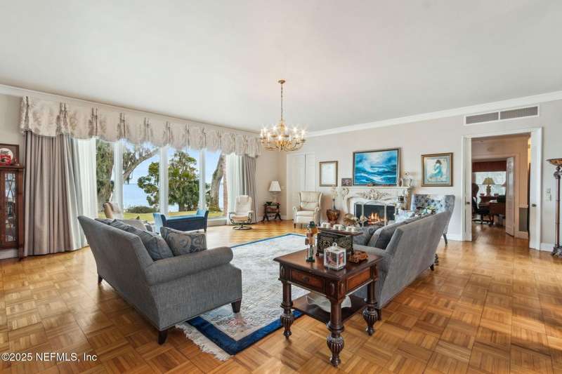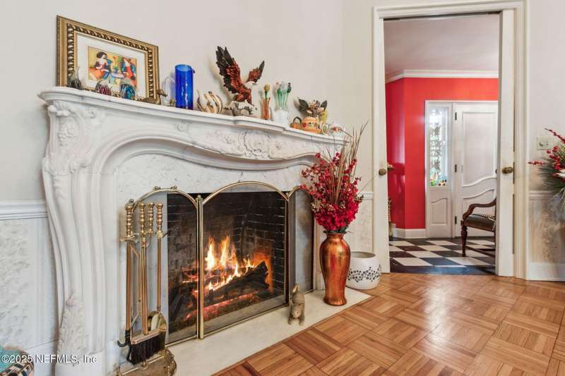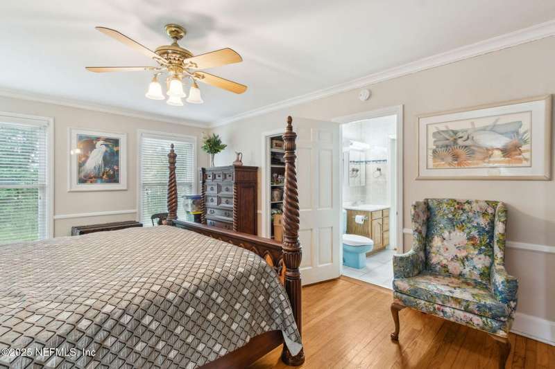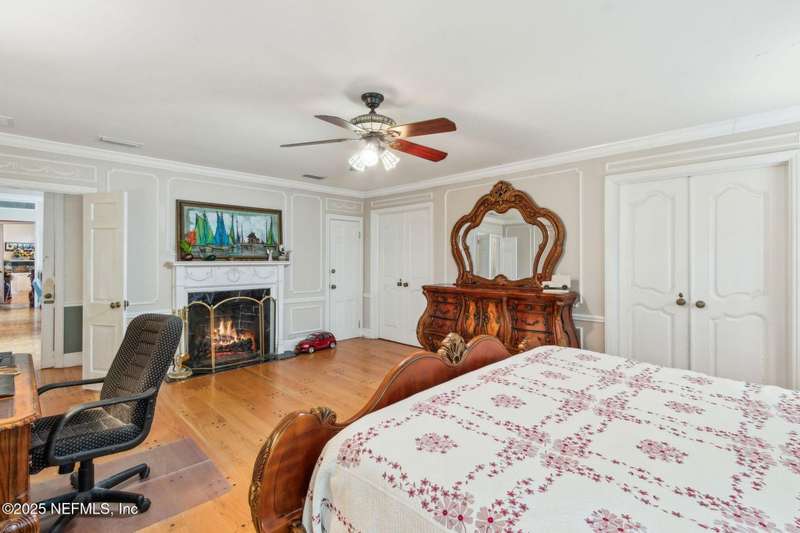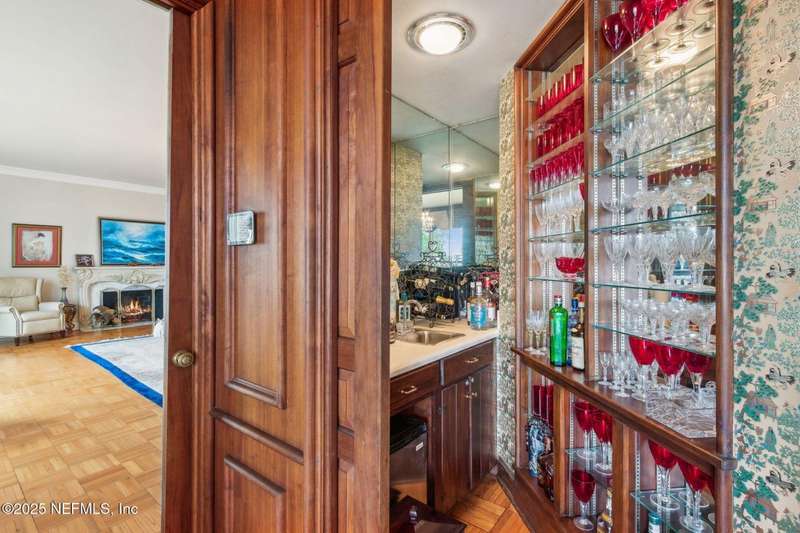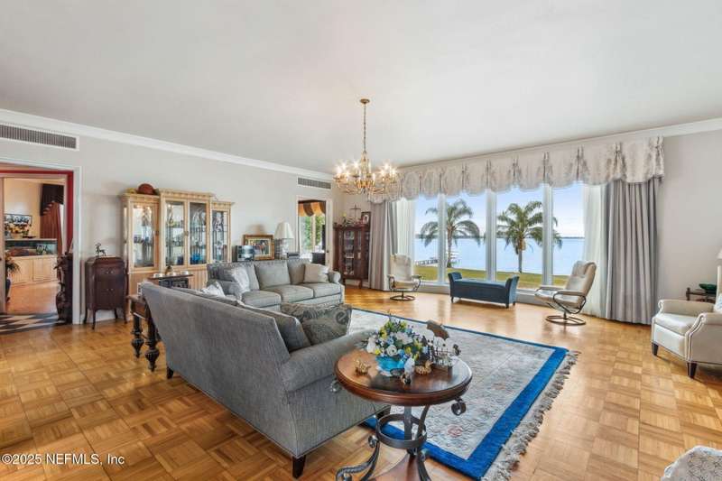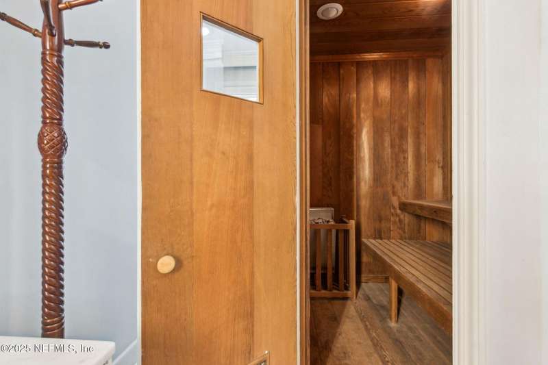 Come cool off this Summer and experience refined riverfront living in this stately all-brick estate perched on a natural bluff along the St. Johns River. Set on 2.4 acres with approximately 219 feet of frontage this home offers breathtaking sunrises and deep water access suitable for most sailboats. The private dock includes a covered boat slip with a 10,000 lb lift, bulkhead, and electric service. Inside the main home is 4 bedrooms 4.5 baths and boasts five fireplaces, a grand living room with sweeping river views, and a richly appointed library with wet bar. The luxurious primary suite features a sitting room with FP and expansive river views ,a marble FP in the bedroom, dressing room, and a spa-like bath with sauna. A separate apartment includes its own living room, kitchenette, full bath, and bedroom. Additional highlights include an artesian well, RV parking with electric, whole-house water filtration, gardener's half bath, and mostly Pella windows throughout. Don't miss out ! Exterior Gardner's half bath.