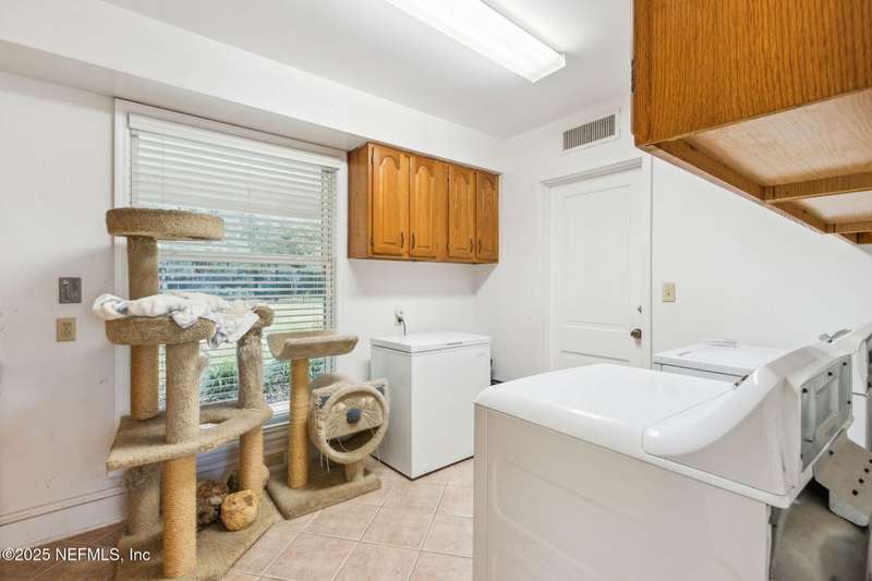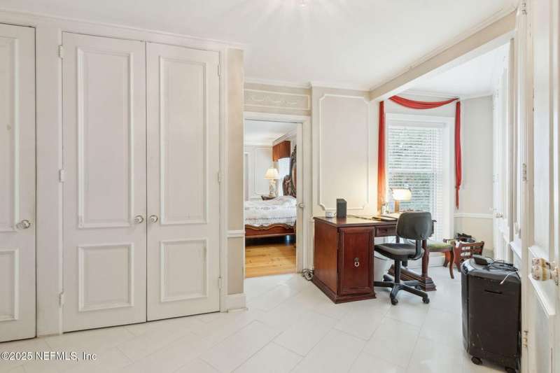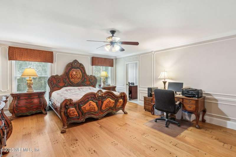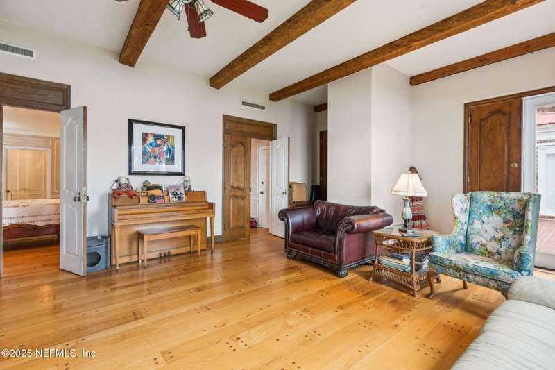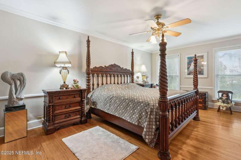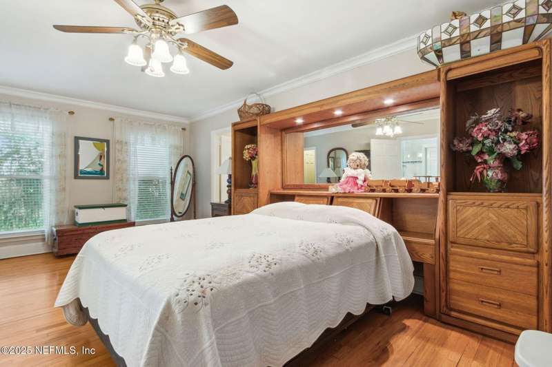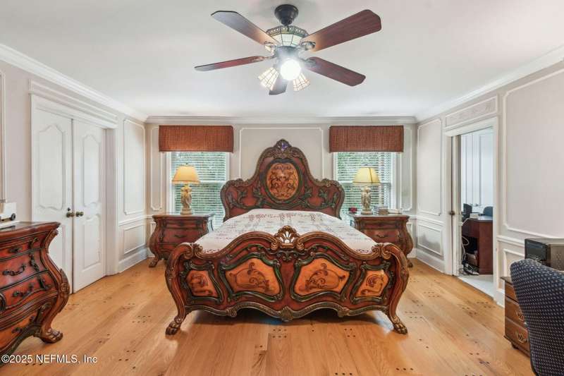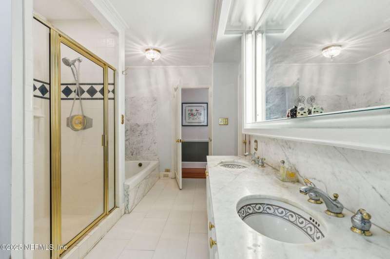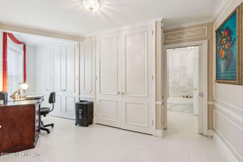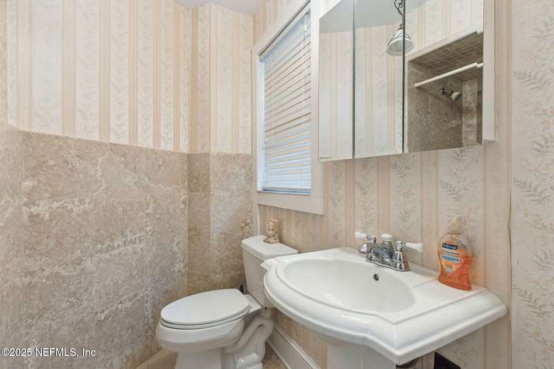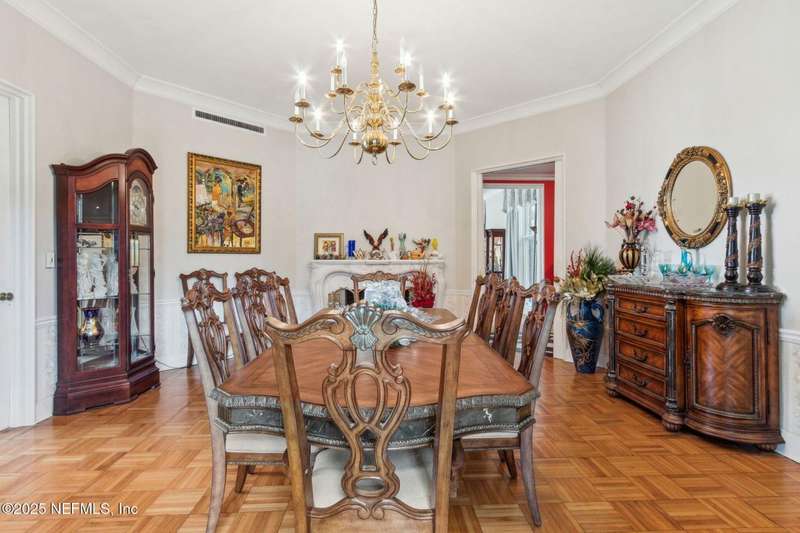 Come cool off this Summer and experience refined riverfront living in this stately all-brick estate perched on a natural bluff along the St. Johns River. Set on 2.4 acres with approximately 219 feet of frontage this home offers breathtaking sunrises and deep water access suitable for most sailboats. The private dock includes a covered boat slip with a 10,000 lb lift, bulkhead, and electric service. Inside the main home is 4 bedrooms 4.5 baths and boasts five fireplaces, a grand living room with sweeping river views, and a richly appointed library with wet bar. The luxurious primary suite features a sitting room with FP and expansive river views ,a marble FP in the bedroom, dressing room, and a spa-like bath with sauna. A separate apartment includes its own living room, kitchenette, full bath, and bedroom. Additional highlights include an artesian well, RV parking with electric, whole-house water filtration, gardener's half bath, and mostly Pella windows throughout. Don't miss out ! Exterior Gardner's half bath.