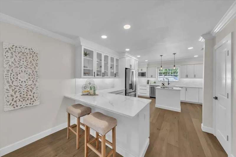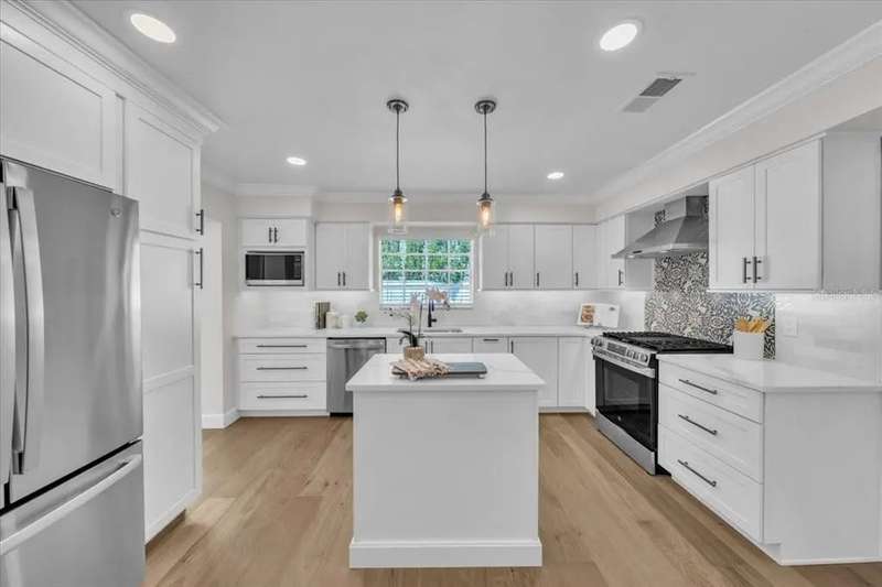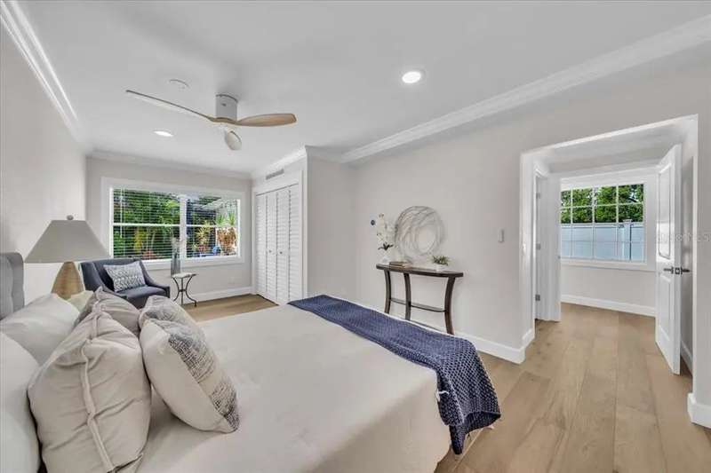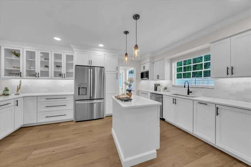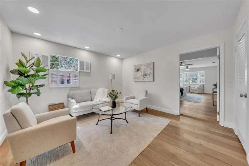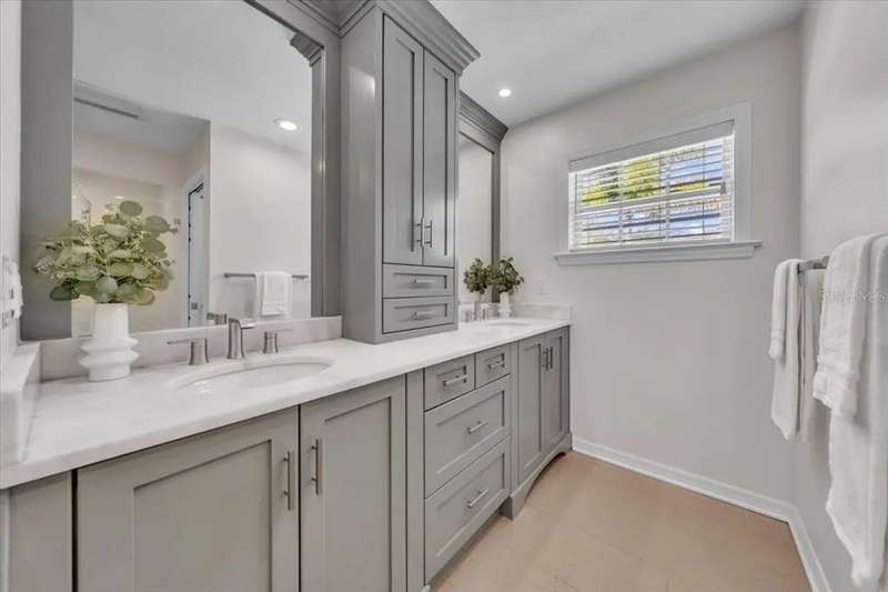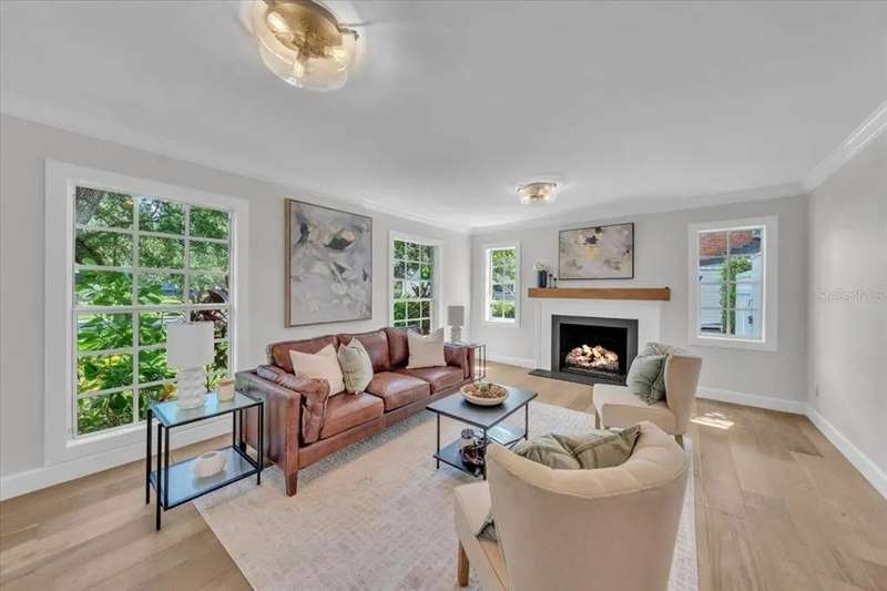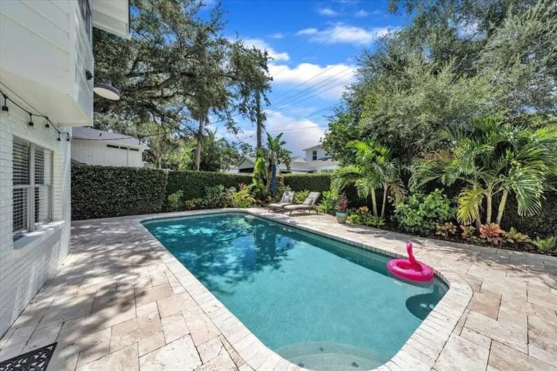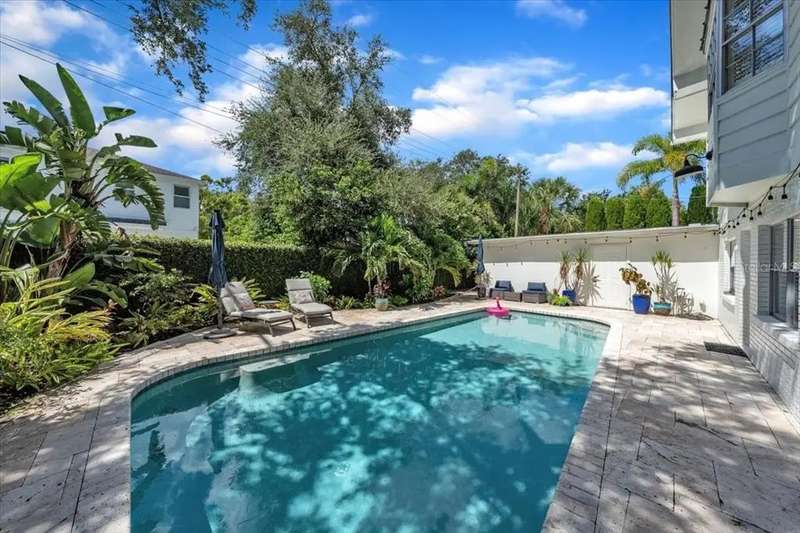 Welcome to "The Bayou," a charming and tranquil neighborhood nestled in the heart of South Tampa, recognized for its exceptional A-rated schools. This beautifully renovated Colonial-style two-story home is just a short stroll away from top-rated schools, including Mabry Elementary and Coleman Middle Schools, with St. Mary’s Day School and PLANT High School also conveniently nearby. Set on a peaceful, tree-lined circle street that feels like your own private enclave, this residence seamlessly combines classic charm with contemporary comforts. Enjoy two distinct living areas: a formal living room featuring a cozy gas fireplace and a versatile family room that opens to the backyard oasis, complete with a heated saltwater pool and ample side yard space. The chef’s kitchen is a dream, equipped with a gas stove and premium appliances. Venture upstairs to discover four inviting bedrooms, including a generous primary suite boasting walk-in closets and an attached bonus room—ideal for a home office, nursery, gym, or owners retreat. The walk-up attic offers even more storage solutions or the possibility for future expansion. The expansive 7,500+ square foot lot showcases a lush front yard and a serene backyard retreat with a side yard large enough for a playset, perfect for entertaining or relaxing by the heated saltwater pool. In the past year, the homeowners have transformed this residence with exceptional finishes and thoughtful upgrades. Notable improvements include a new standing seam metal roof (2023), two new AC units (2024), and updated electrical systems (2020). The kitchen has been fully renovated, and engineered hardwood flooring has been installed throughout the home, with the downstairs completed in 2025 and the upstairs and staircase finished in 2024. Additionally, a new downstairs bedroom and full bathroom have been added, providing a perfect place for family members or visiting guests. Further enhancements include a renovated laundry room (2025), fresh interior and exterior paint (2024 for the interior and 2023 for the exterior), and fully renovated powder and guest bathrooms. The irrigation system and landscaping have also been upgraded (2023), and there's a 50A hookup for RV/EV and a hot tub. With an ongoing termite treatment warranty in place (2021), you can move in with confidence and peace of mind. This home is not just a place to live; it's a sanctuary waiting for you to make it yours!