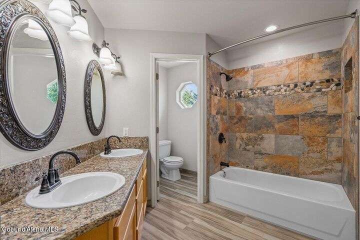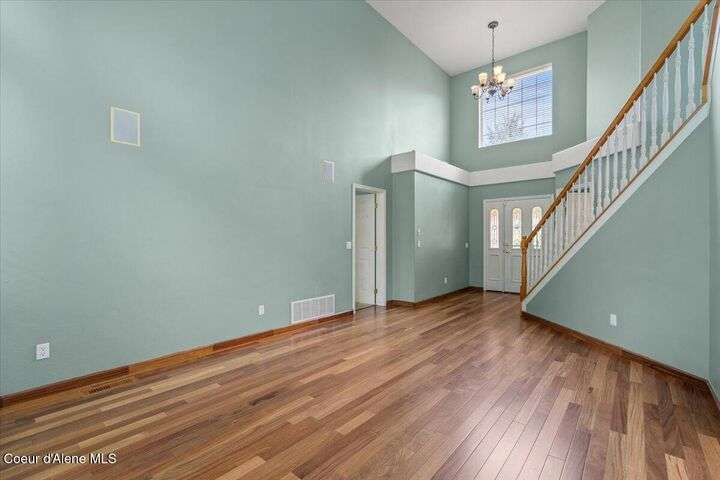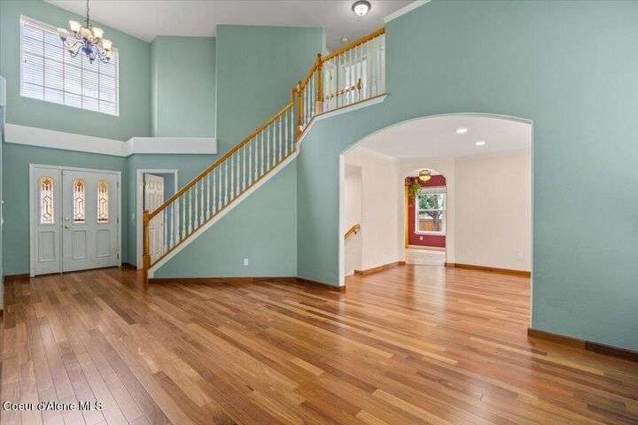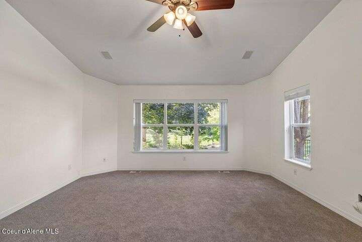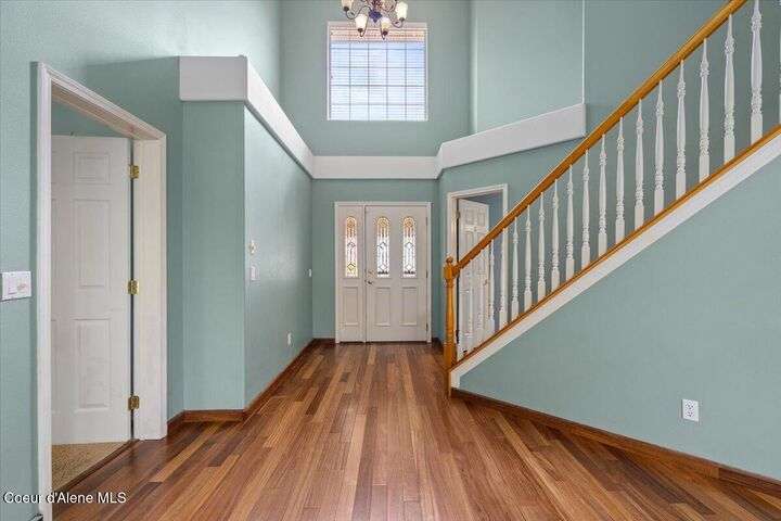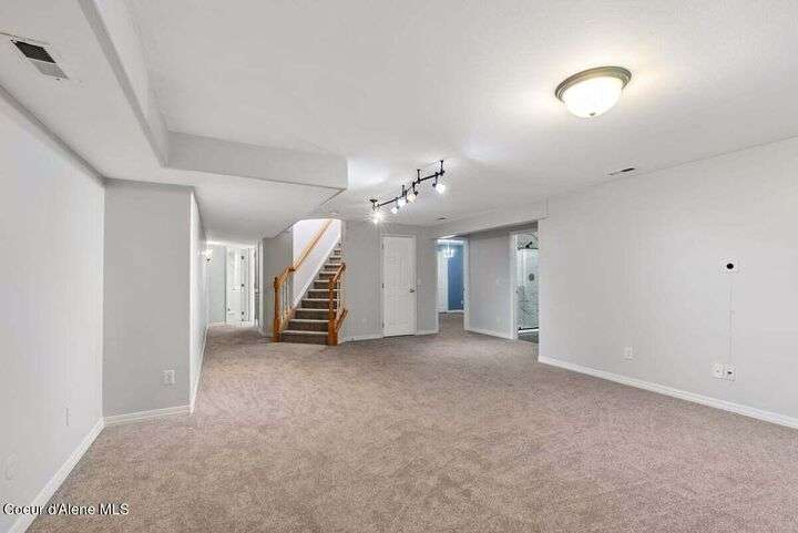 Welcome home! All new price, new updated paint, and all new carpeting throughout. Now this perfect centrally located Coeur d'Alene Place charmer is ready for its new owner. This beautifully updated home is a gardener's dream sits on a private corner lot with greenspace to both the rear and side yard of the home., large fruit trees and mature landscaping providing amazing privacy you will appreciate. Inside, you'll find Brazilian wood floors, granite countertops, new carpet, and a gourmet kitchen complete with double wall ovens. A main-floor master suite with cathedral ceilings provides a luxurious retreat. The lower level features a huge rec room, three bedrooms, and a designer bathroom. Enjoy outdoor living from the covered front porch your covered back patio with composite deck for additional relaxation. Located near schools, parks, shopping, medical, not two mention an abundance of lakes and winter ski resorts. This property offers a perfect blend of privacy and convenience