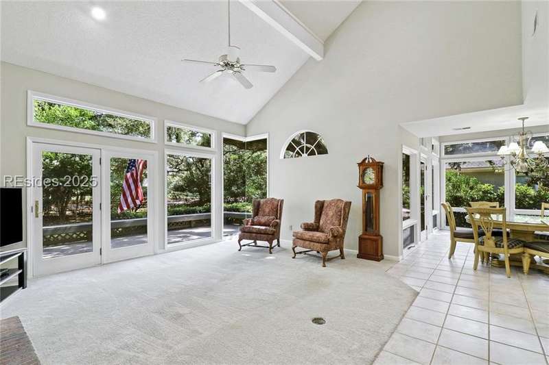 The Port Royal Private Oceanfront Community sets the stage for this coastal dream home at the end of a quiet cul-de-sac overlooking the Robbers Row Course 18th green. Light-filled layout offers soaring ceilings, multiple gathering areas & great space for entertaining, indoors & out. Formal LR/DR, Chef’s eat-kitchen w/ Viking range & Sub-Zero fridge. Great room w fireplace. 3BR/3BA + den/office. Upstairs includes cozy living area, BR & full BA—ideal for guests. NEW roof, NEW drive, 2-car garage. Enjoy beach access, oceanfront pool, tennis, garden, trails, no short-term rentals & easy access to the optional membership Port Royal Golf Club.