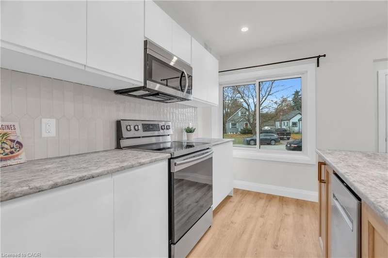 Welcome to this immaculately renovated 3 bedroom, 1 bath, 2 storey unit, thoughtfully designed with a functional layout and beautiful warm finishes. The bright kitchen features stainless steel appliances, sleek cabinetry, and a large window that fills the home with natural light. The upstairs living space gets great sunset lighting. Enjoy the convenience of an in-suite laundry room and the comfort of spacious bedrooms and one full bathroom with a double vanity and thoughtful updates. The shared backyard provides extra outdoor space to relax or unwind, and the unit includes one dedicated parking space for your convenience. Located minutes from Highway 8, a short walk to Ash Park, and close to downtown Kitchener, you have everything you need close by. Come see for yourself why this unit could be your new home!