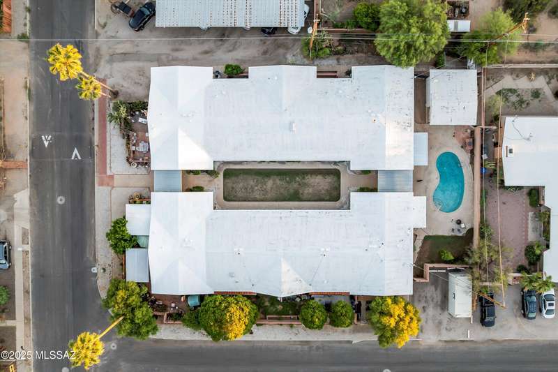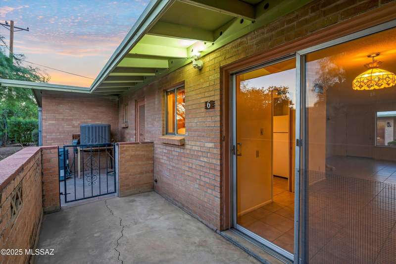 Nested in a boutique community of just nine units in the heart of Central Tucson and just 0.5miles from the iconic 3rd Street Bike Path, this immaculate 712sq ft 1Bed/1bath condo is a true gem. A quiet and quaint courtyard welcomes you. Your new home is bright and spacious, has an ample living/dining area and a well equipped kitchen full of retro vibes!! Original touches convey nostalgia. There is even a built-in hamper and linen closet in the hallway. Plenty of storage as well with an additional hallway closet . Primary bedroom has a vast walk-in closet and easily fits a king-sized bed. Enjoy relaxing times in your walled patio out back which has access to your assigned carport space for easily bringing in your groceries. Private community pool area provides a recess from hot summer