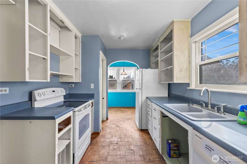 Great opportunity on a FIXER with tons of charm and potential! Look at the arched doorways, real wood floors, wood fireplace with traditional brick mantle and tile hearth. Coved ceilings with picture molding in living room and bedrooms, traditional millwork and trim, along with ceiling fans! All appliances stay, as-is, including front-loader laundry machines. Downstairs, the basement offers 3rd bedroom, lots of flex space, large laundry area, rec room that could be used as 4th bedroom (egress?) a 3/4 bath, ample storage, work shop area and access to 1 car garage. Priced well for the investor who's ready turn this into a charming home again.