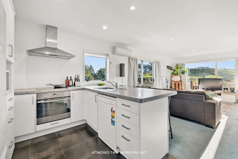 Discover your dream lifestyle with this expansive home, set on approximately 1 hectare of pristine grounds. This Platinum-built, brick and tile residence offers the perfect blend of space and flexibility, including a self-contained 2-bedroom unit ideal for extended family or guests. The main home features a spacious open-plan kitchen, dining and living area, complete with a walkthrough butler's pantry. A second large living area and an office nook provide additional space. With four double bedrooms, including a master suite with an ensuite and walk-in wardrobe and a large rumpus room (or potential fifth bedroom), there is plenty of room for everyone. The attached unit has its own open-plan kitchen, living and dining area, ensuring privacy and comfort. Additional features include: • Double Internal access garage • Detached 3-car garage/workshop • Extra-large carport for a boat or camper van (Local boat ramp a short drive away) • Elevated position with lovely rural views • Lots of off-street parking • Indoor/Outdoor flow onto a Northwest-facing large deck This property offers a true lifestyle opportunity, providing a rural setting while being just a short drive to the Northern Motorway, Silverdale and Orewa's beaches, amenities and schools.