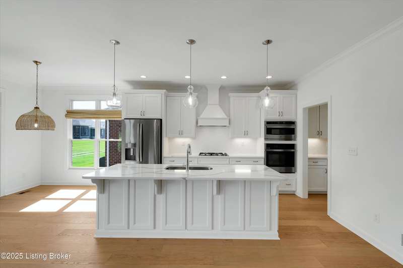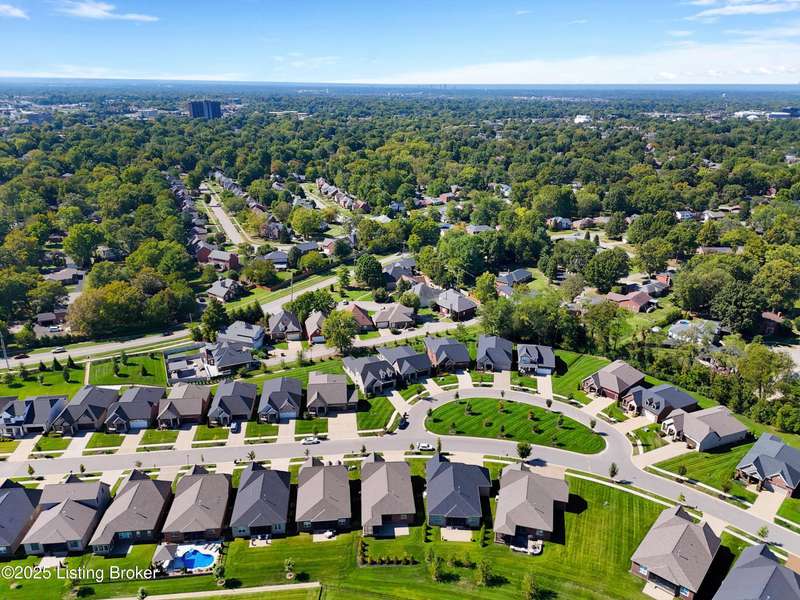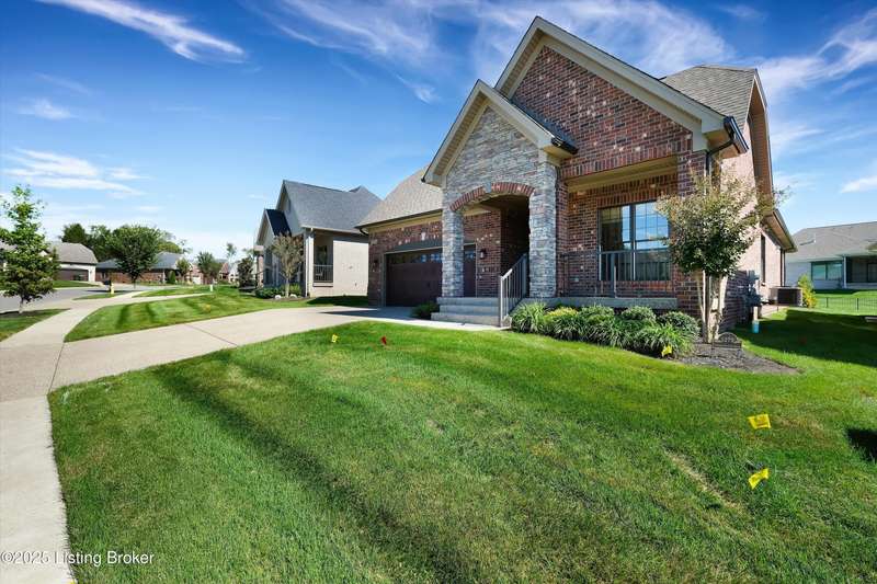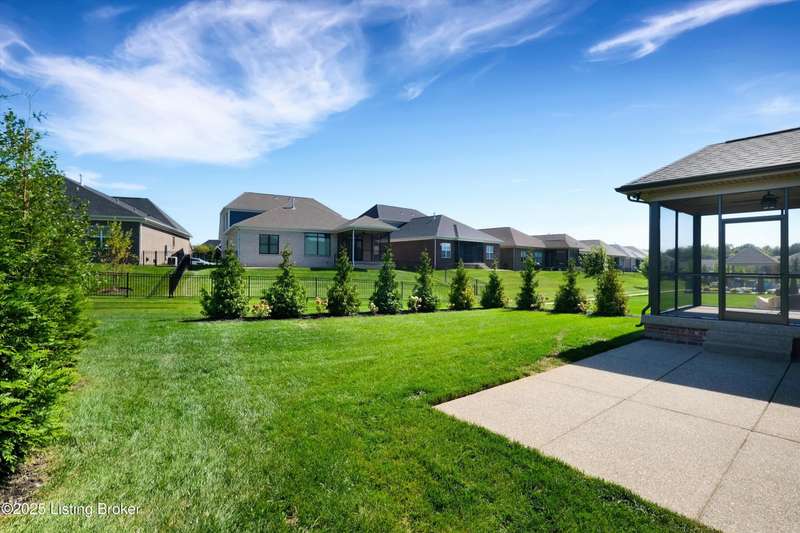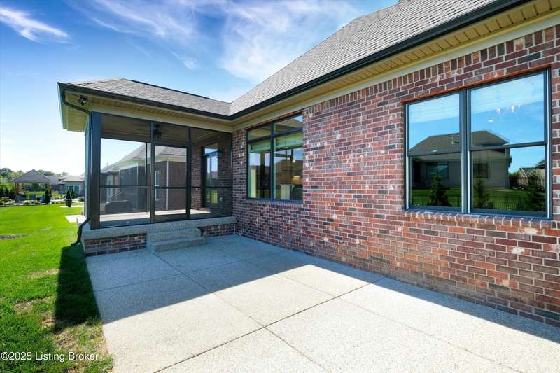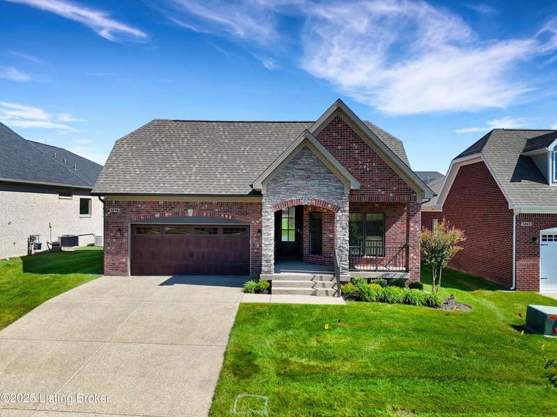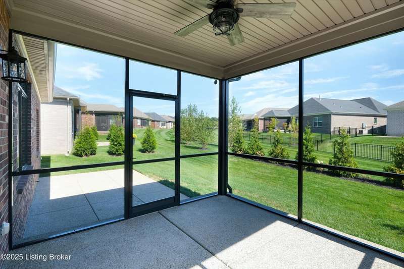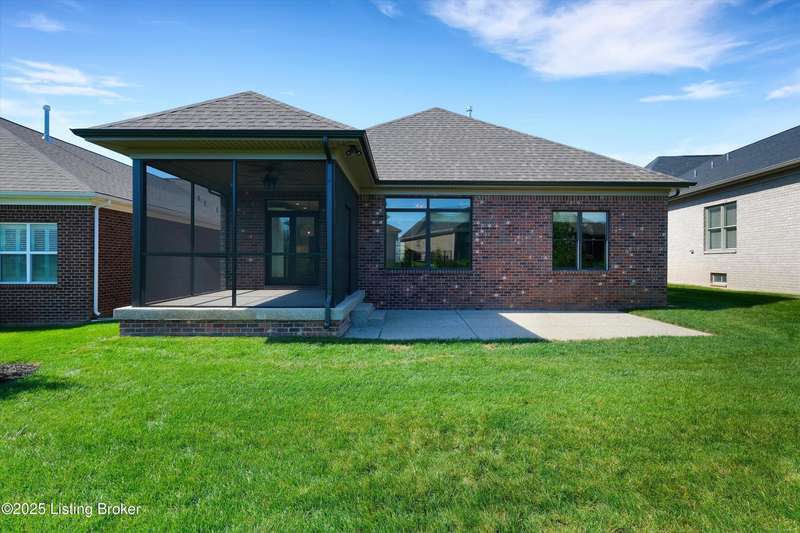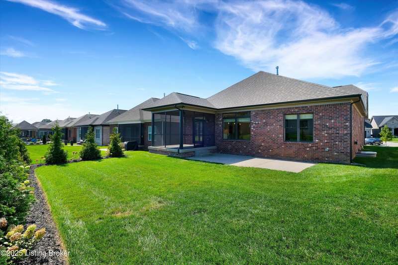 Welcome to this stunning,1-story home located in the coveted Enclave at Douglas Hills. This beautifully designed three-bedroom, three full bathroom home offers modern elegance and easy living with an open-concept layout, high-end finishes, and thoughtful details throughout.The heart of the home is the gourmet kitchen, featuring custom wood cabinetry, stainless steel appliances, a gas cooktop with quartz countertops, and a convenient butler's pantry. Entering the front of the home, you'll notice the front bedroom—perfect for an office—alongside a beautiful full bathroom which offers a stylish tiled tub surround and a large vanity, perfect for guests or family. The foyer flows into the luxurious, open family room and kitchen, ideal for family living and entertainment. Enjoy year-round outdoor living with a fully enclosed and screened-in back porch, complete with a door that leads to an oversized patio. The spacious primary suite is a true retreat, showcasing a tray ceiling, spacious his and hers closets, and a luxurious en-suite bath with tile floors, a large walk-in shower with bench seating, double vanities, a generous linen closet, and direct access to the laundry room, which also opens to the main living space for added convenience. This home also includes an upgraded lighting package, tall ceilings throughout, and maintenance-free lawn and landscape care, making it a perfect blend of elegance and comfort. Located just minutes from Middletown, St. Matthews, Plainview, Blankenbaker Parkway, and Hurstbourne Lane, this beauty is convenient to churches, shopping, dining, parks, and countless family activities. This home is perfect for you!