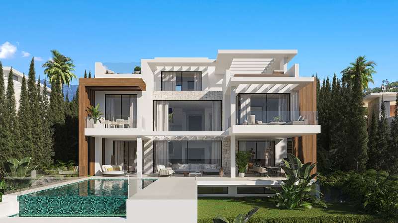 The villas for sale in Estepona Malaga are situated in a privileged residential area of Estepona, just above the so-called “New Golden Mile”, next to Golf& Country Club, international school, and an array of local daily amenities and services. The project is 2,5 km from the sandy beaches and 2 km from the main motorway exit making any travel easy and convenient. Estepona center is 12km from the complex, Puerto Banus and Marbella – 14km. It takes around an hour to reach Malaga’s international airport.