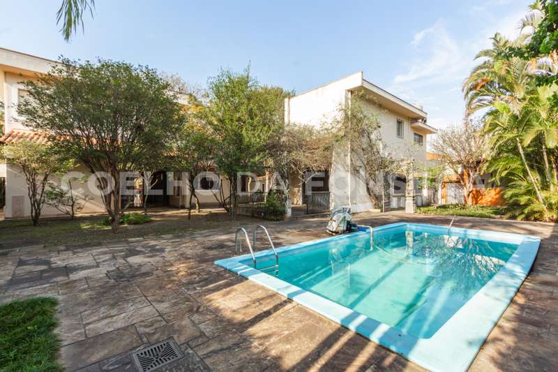 Com 5 suítes, sala de TV, lavabo, sala de jantar, sala de almoço, cozinha, vitrais em várias partes da casa, arquitetura dos anos 60, piscina e jardim com churrasqueira. Linda vista do imóvel.