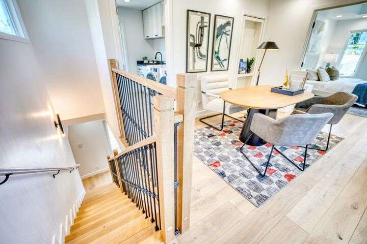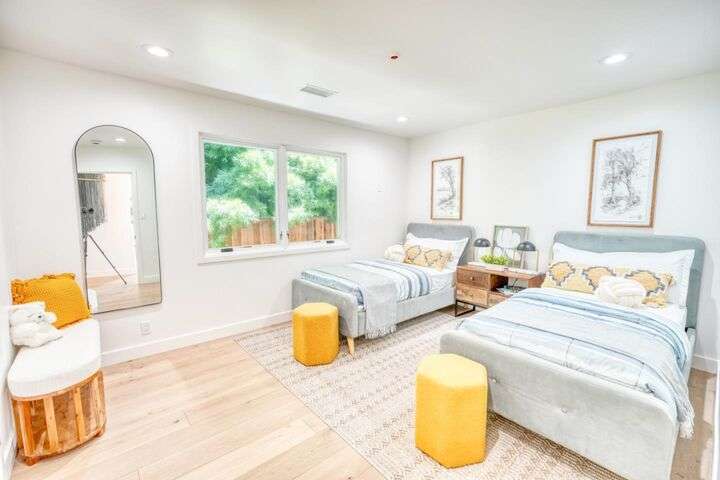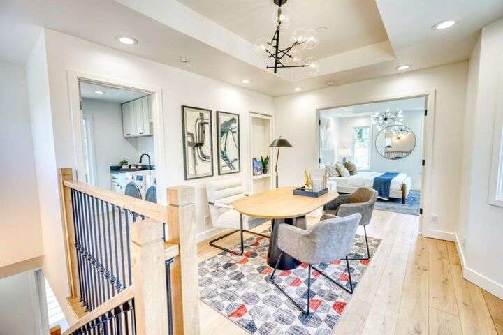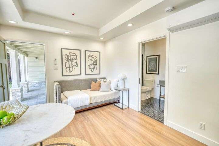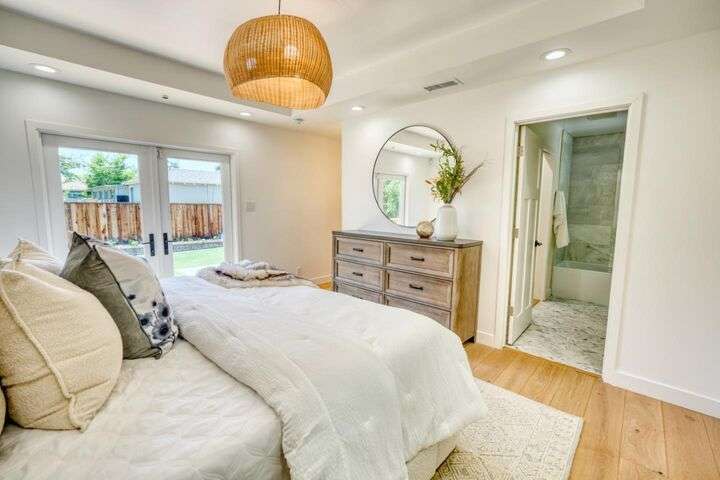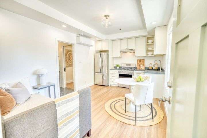 Home was completely taken to the studs, rebuilt and expanded. Located on a tree-lined street in the coveted Avenues, this two-story home blends modern comfort & designer finishes. A spacious living area & chefs kitchen with center island, quartz counters, high-end appliances, a full-size restaurant-style fridge & freezer. The main floor includes three bedrooms--two with en suite bathsgenerous closet space. Upstairs offers a vaulted lounge or office, laundry room, a luxurious primary suite with walk-in closet, double vanity, soaking tub, & stall shower. Indoor-outdoor living shines with a fully designed system: expansive wood deck, gas fire pit, BBQ stand, TV hook-up, lighting, & drought-tolerant landscaping. The home is pre-wired for built-in speakers, allowing sound to flow seamlessly inside & outperfect for entertaining. Designed ADU has separate entry, full kitchen, full bath & utilityideal for guests, in-laws, or rental income. HVAC, solar, new plumbing, elec, & roof. Expanded driveway w/ample parking. Walk to parks, shops & transit. Turnkey living in the heart of the city.