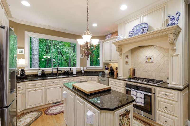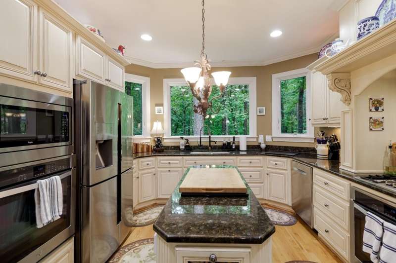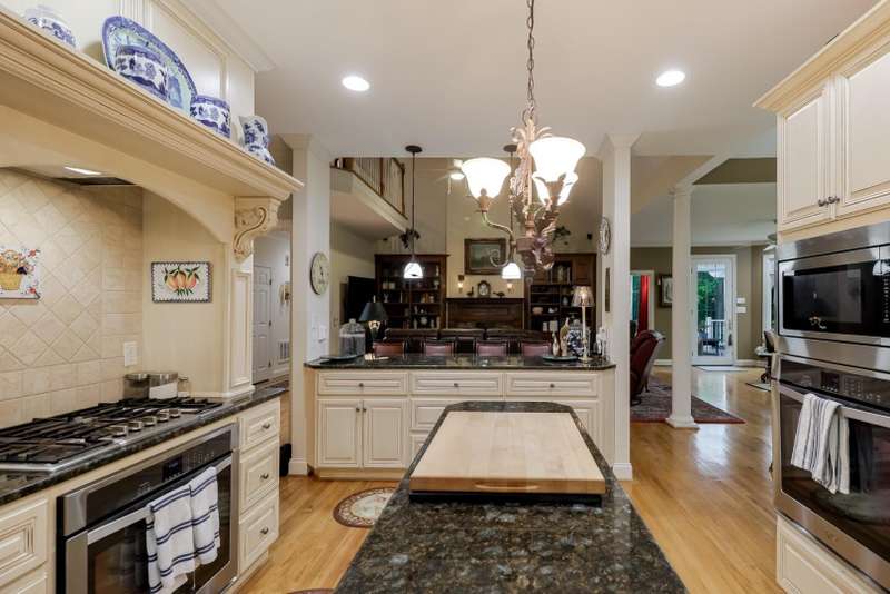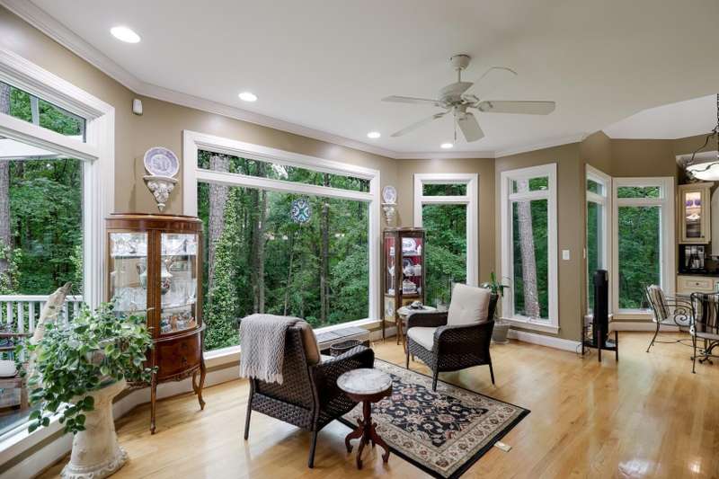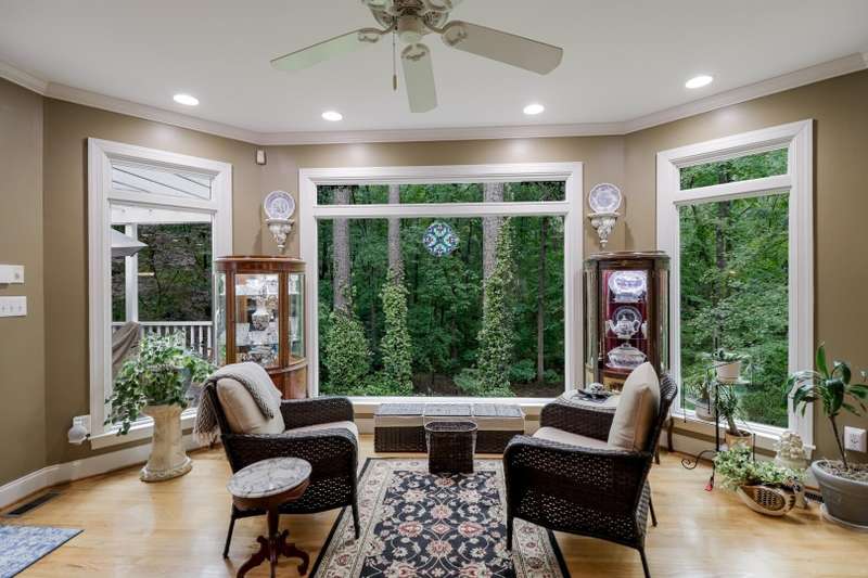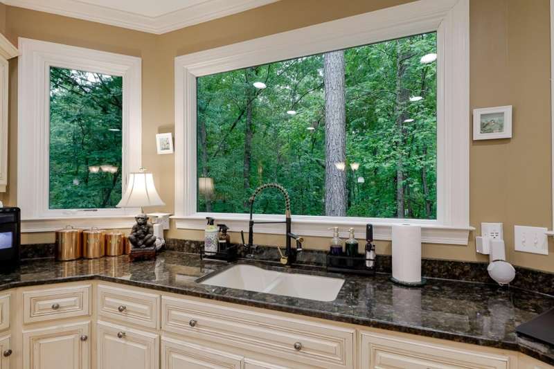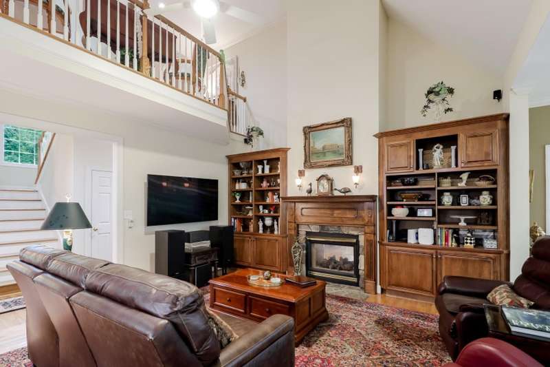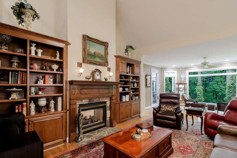 Welcome to this beautifully customized home, blending luxury, comfort. Extra green buffer and protected natural area, this property offers peace, privacy, and stunning views. Step inside to find hardwood floors and porcelain tile throughout the first floor, 2 story high greatroom, with unmatchable view of the wood and green with clear Anderson panoramic windows. The great room with gas fireplace and build in shelves. The gourmet eat kitchen with all granite tops has island, bar top, and coffee station, stainless steel Bosch and Whirlpool appliances, Bosch five-burner gas cooktop, built-in microwave, double ovens, and a spacious pantry with custom storage. The master suite is a true retreat with quartz countertops in the bathroom, leaded glass accents, and an antique crystal chandelier, tray ceilings and sitting area and fireplace. Upstairs includes 2 bedrooms with jack and jill bath with dual sinks, built-in bench and pocket office. a 4th bedroom also with private bath, storage a galore and large closets tankless water heater, water softener and filtration system, and a full-house Generac generator with a 5-year warranty. concrete storage area in the basement. Enjoy the outdoors with a Brazilian hardwood deck under awnings, a sunroom, patio, poured concrete sidewalks with step-downs, and gravel walkways. Extensive landscaping and a low-maintenance yard are supported by a well-fed irrigation system. Accent lighting with timer, a full alarm system, electric dog fence (collars included), and epoxy-coated garage floors. Other highlights include pocket doors including French glass pocket doors for the study/parlor, stone wall in the den, Anderson doors for durability and style. This is a rare opportunity to own a thoughtfully upgraded, energy-efficient home with timeless design and unmatched functionality. Schedule your private showing today!